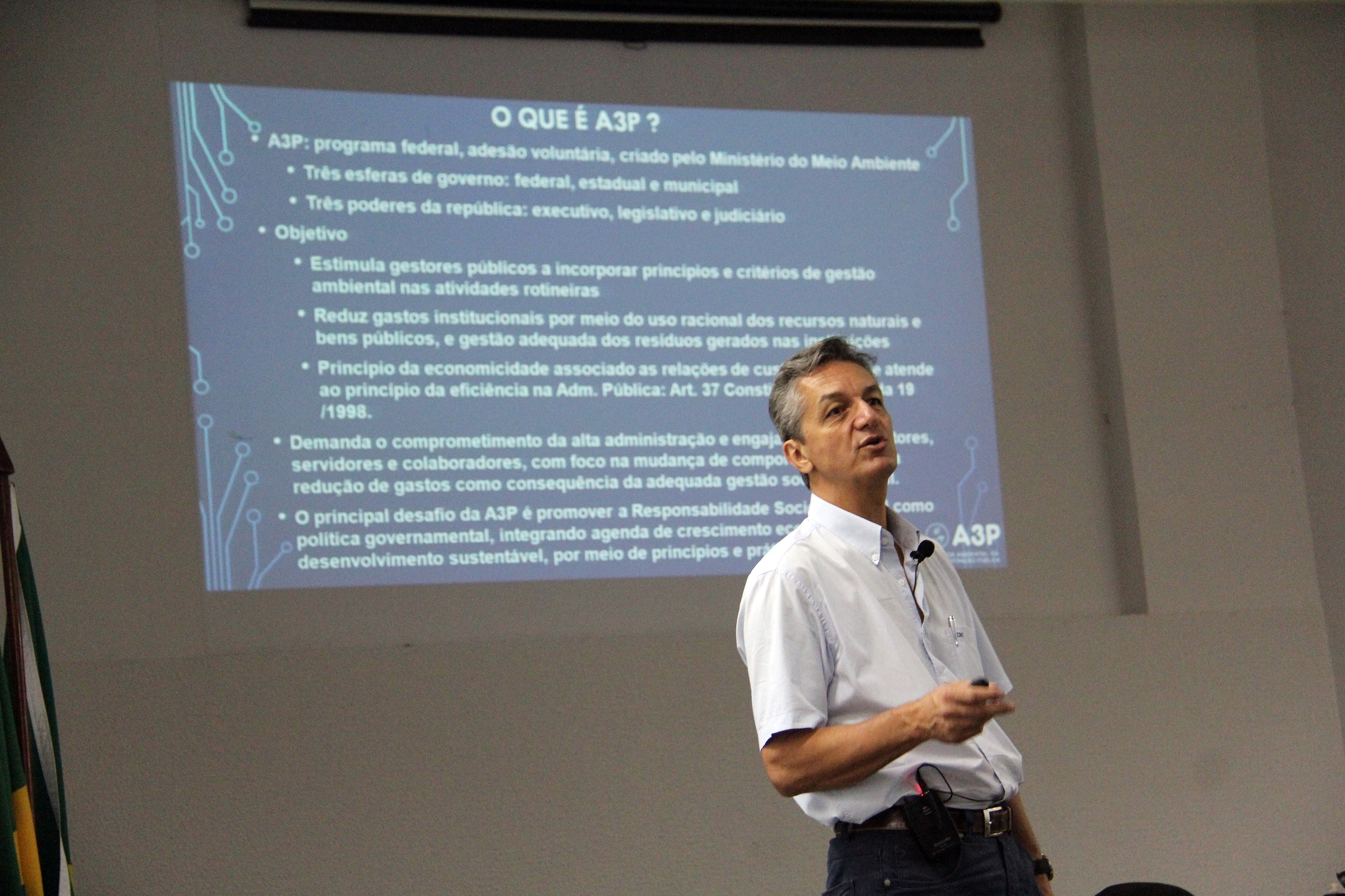 O curso é ministrado pelo consultor do MMA, Luiz Fernando Ferreira, que apresenta aos representantes do Executivo municipal, estadual e federal, além do Legislativo e Judiciário, os pontos relacionados à adesão do programa federal Agenda Ambiental na Administração Pública (A3P). Durante os dias, estão sendo debatidos todos os eixos da A3P, sendo eles: uso racional dos recursos naturais e bens públicos; gerenciamento de resíduos sólidos; qualidade de vida no ambiente de trabalho; sensibilização e capacitação dos servidores; contratações públicas sustentáveis e construções sustentáveis.