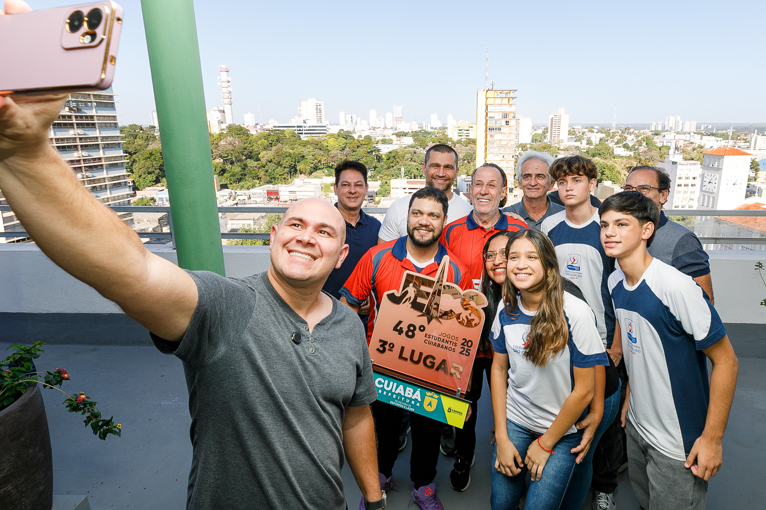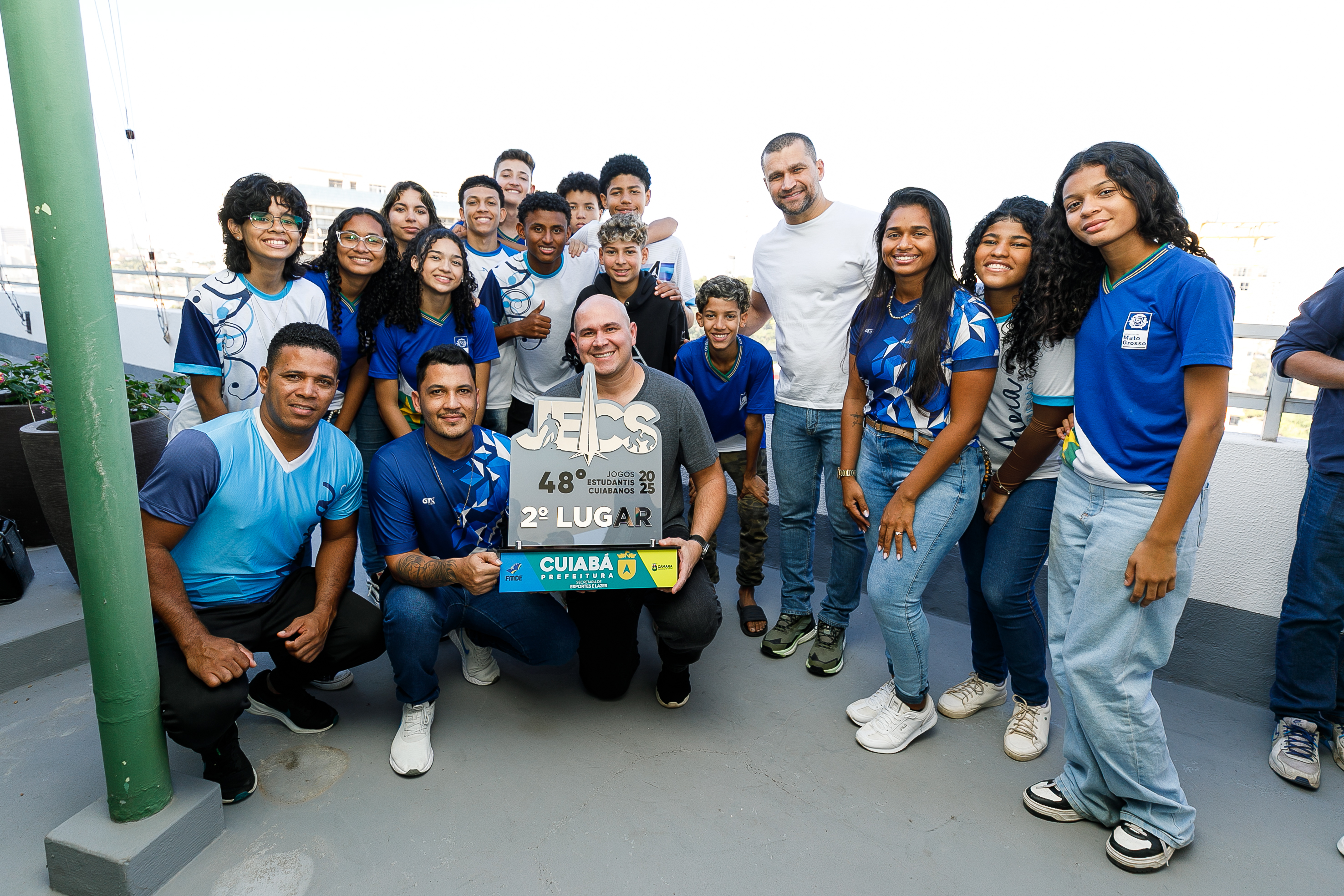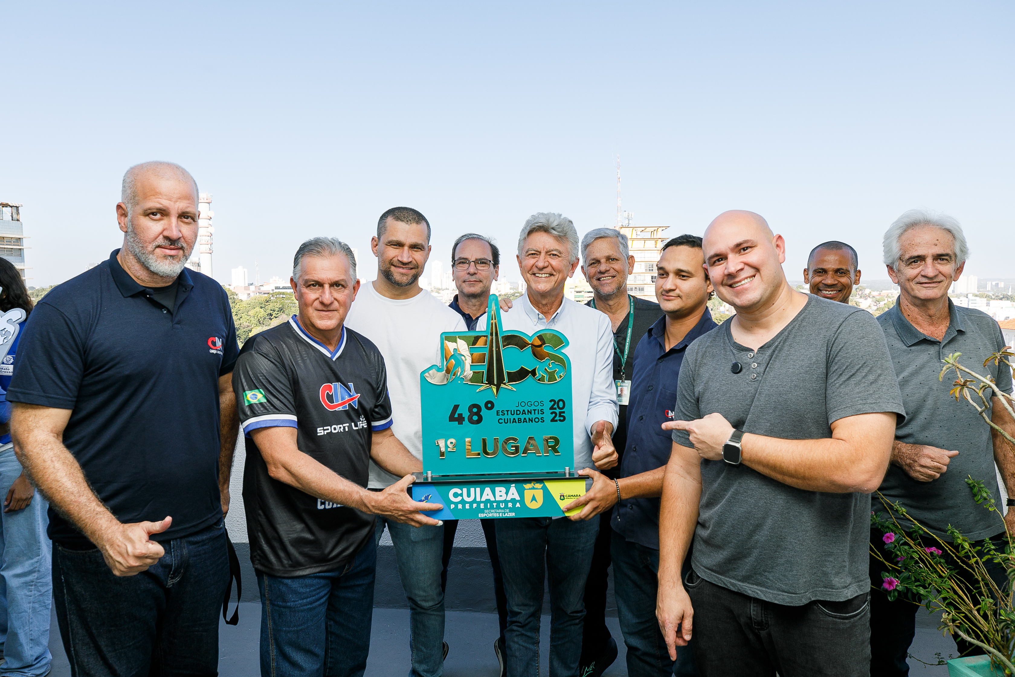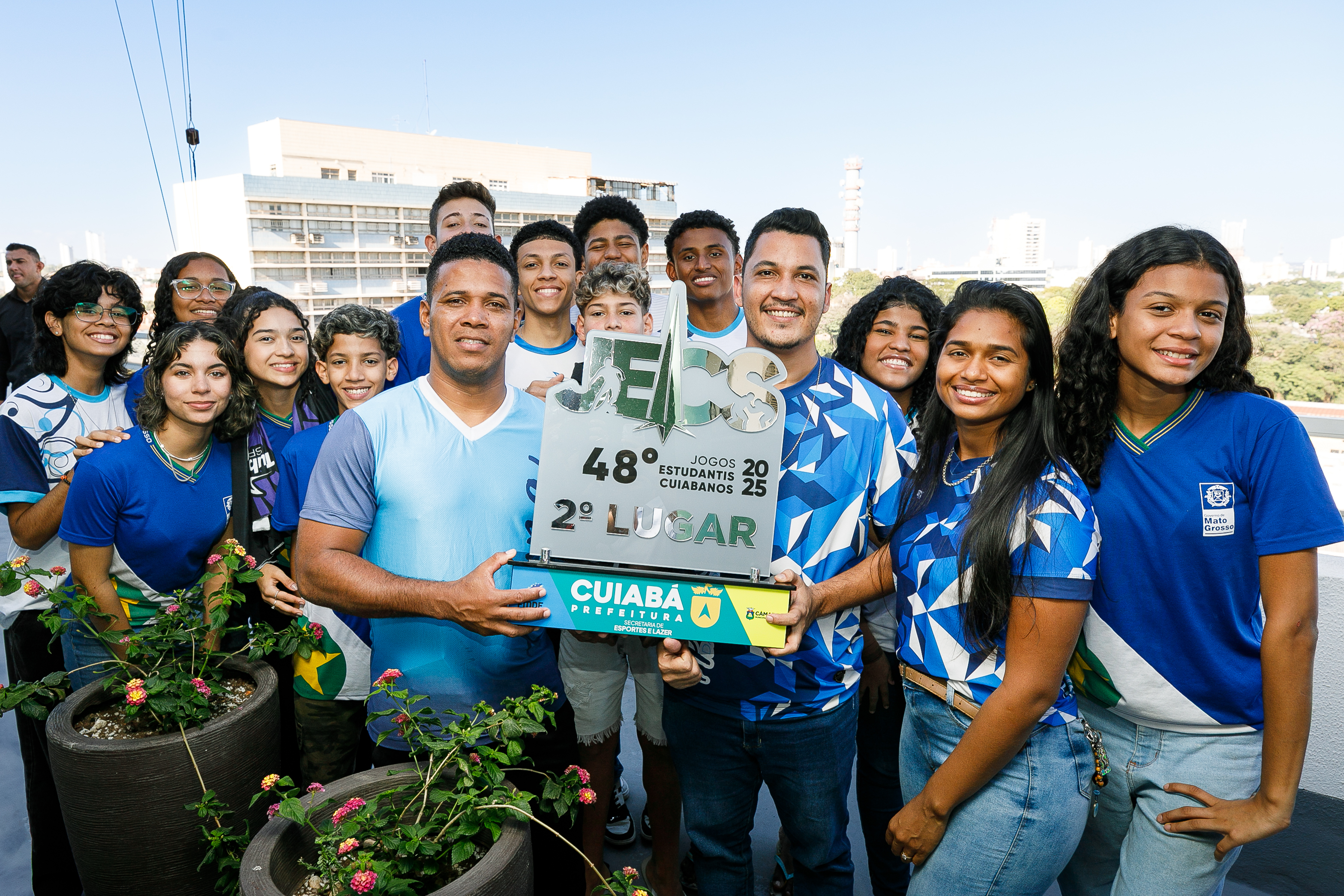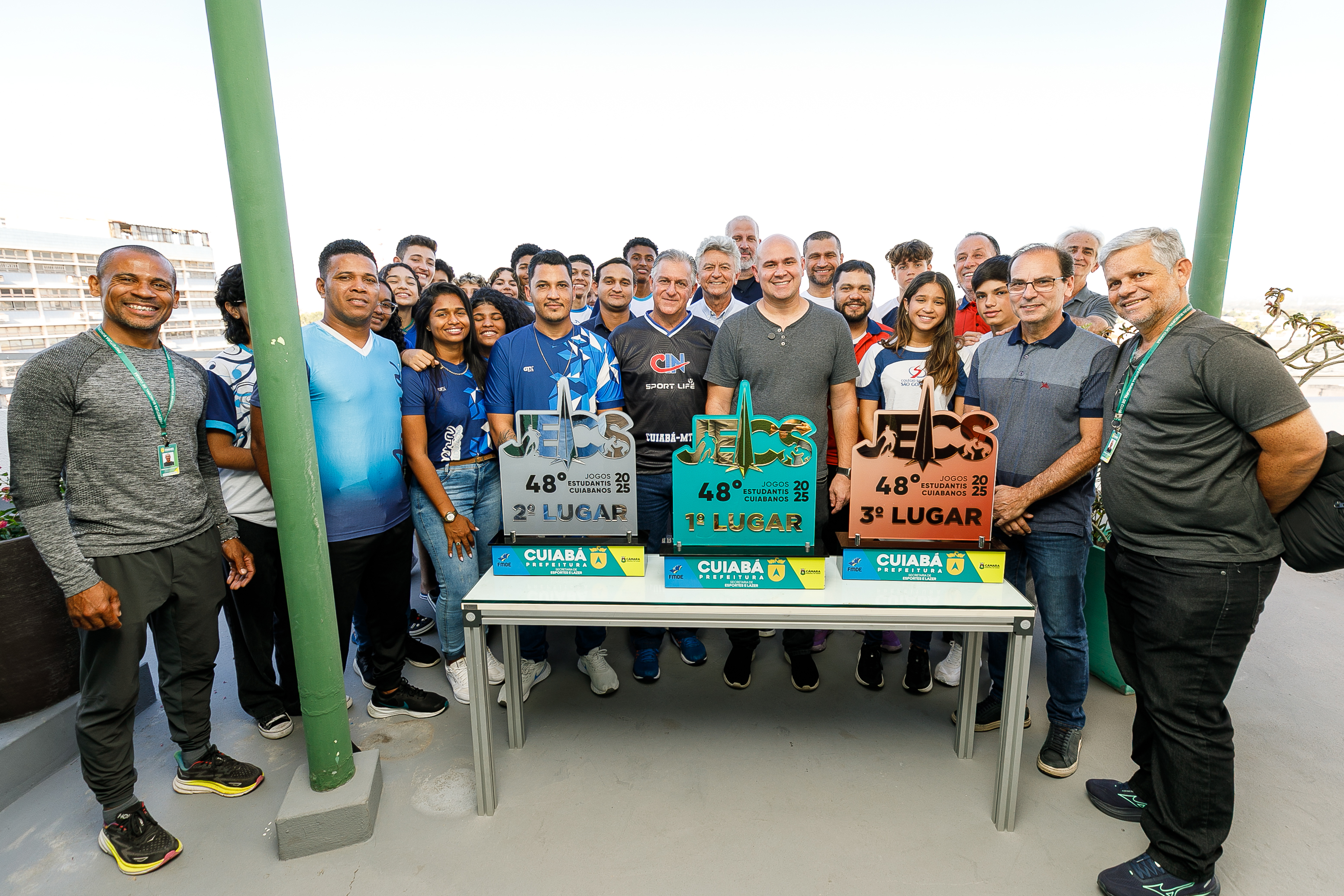 O prefeito de Cuiabá, Abilio Brunini, e o secretário municipal de Esportes, Jefferson Neves, recepcionaram, na tarde desta sexta-feira (4), no terraço da Prefeitura, as equipes escolares que mais conquistaram medalhas na 48ª edição dos Jogos Estudantis Cuiabanos (JECs). O evento premiou as três instituições que lideraram o quadro geral de medalhas, consolidando o encerramento da maior competição escolar da capital.