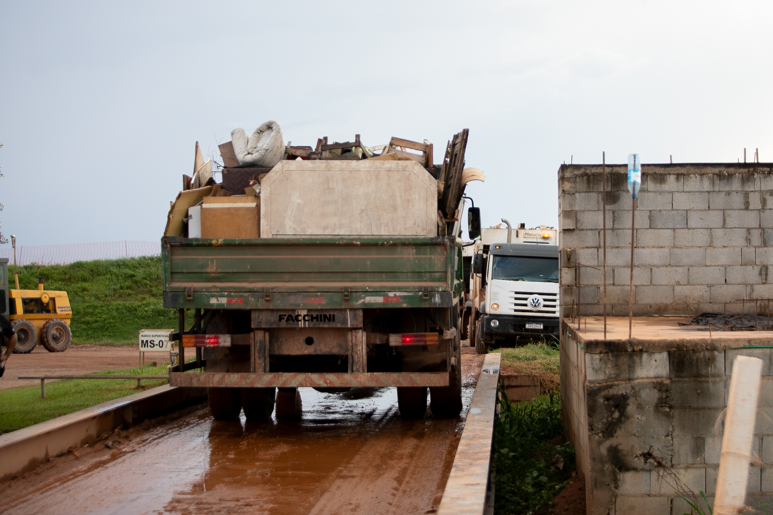 O Ecoparque Pantanal recebe mensalmente entre 16 e 17 mil toneladas de resíduos, transportadas por aproximadamente 120 caminhões coletores por dia. O processo de descarte começa com a pesagem dos veículos em uma balança automatizada e certificada pelo Inmetro, garantindo controle rigoroso e rastreabilidade do material descartado.