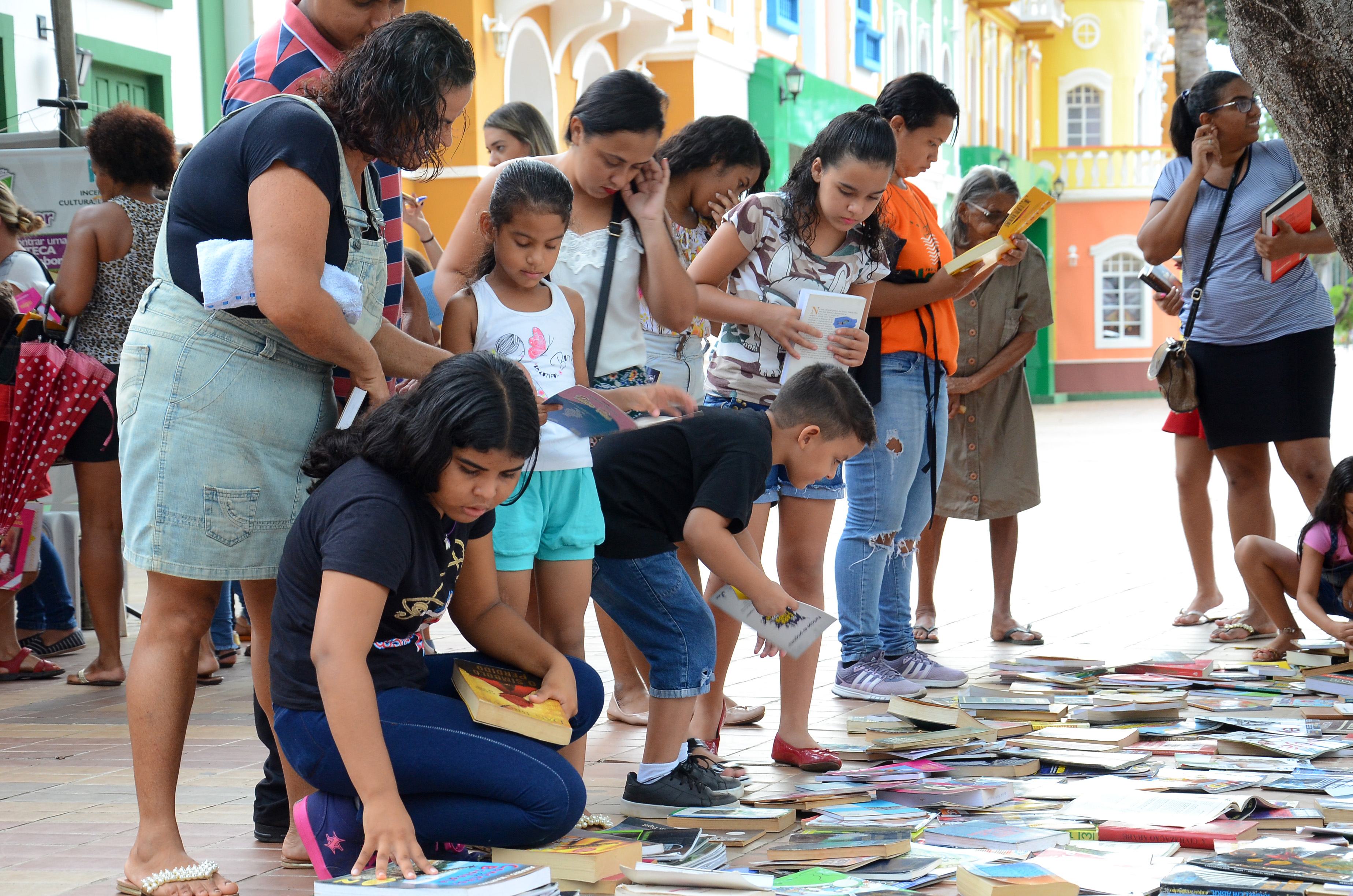 Cerca de mil pessoas passaram pela ação cultural em comemoração ao dia do leitor, nesta quinta-feira (11), na Orla do Porto. Crianças, jovens e adultos se empenharam na escolha de dois exemplares, em um montante de 3 mil livros expostos na mostra e disponibilizados por meio da parceria entre a Secretaria Municipal de Educação e as Bibliotecas Saber com Sabor.
