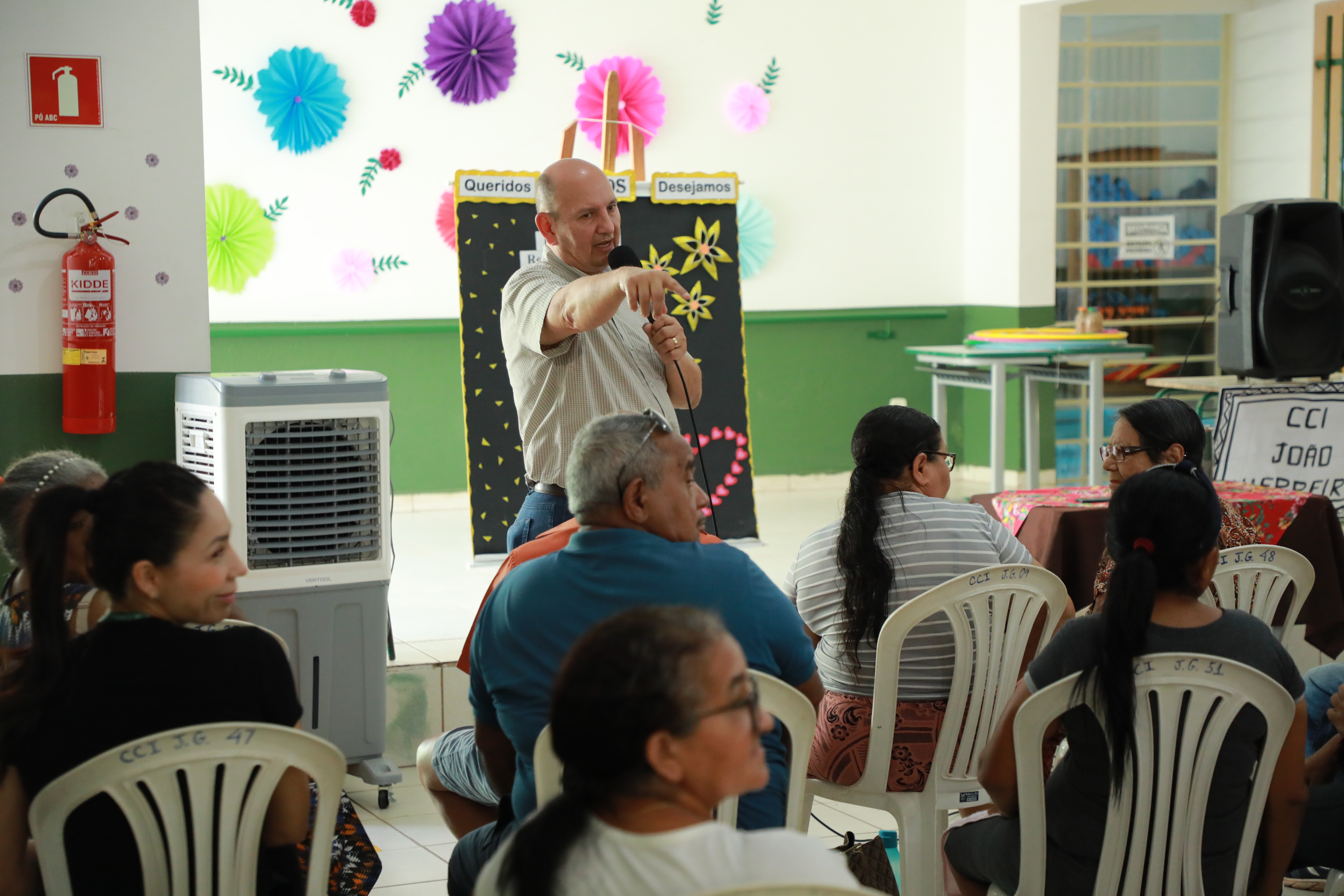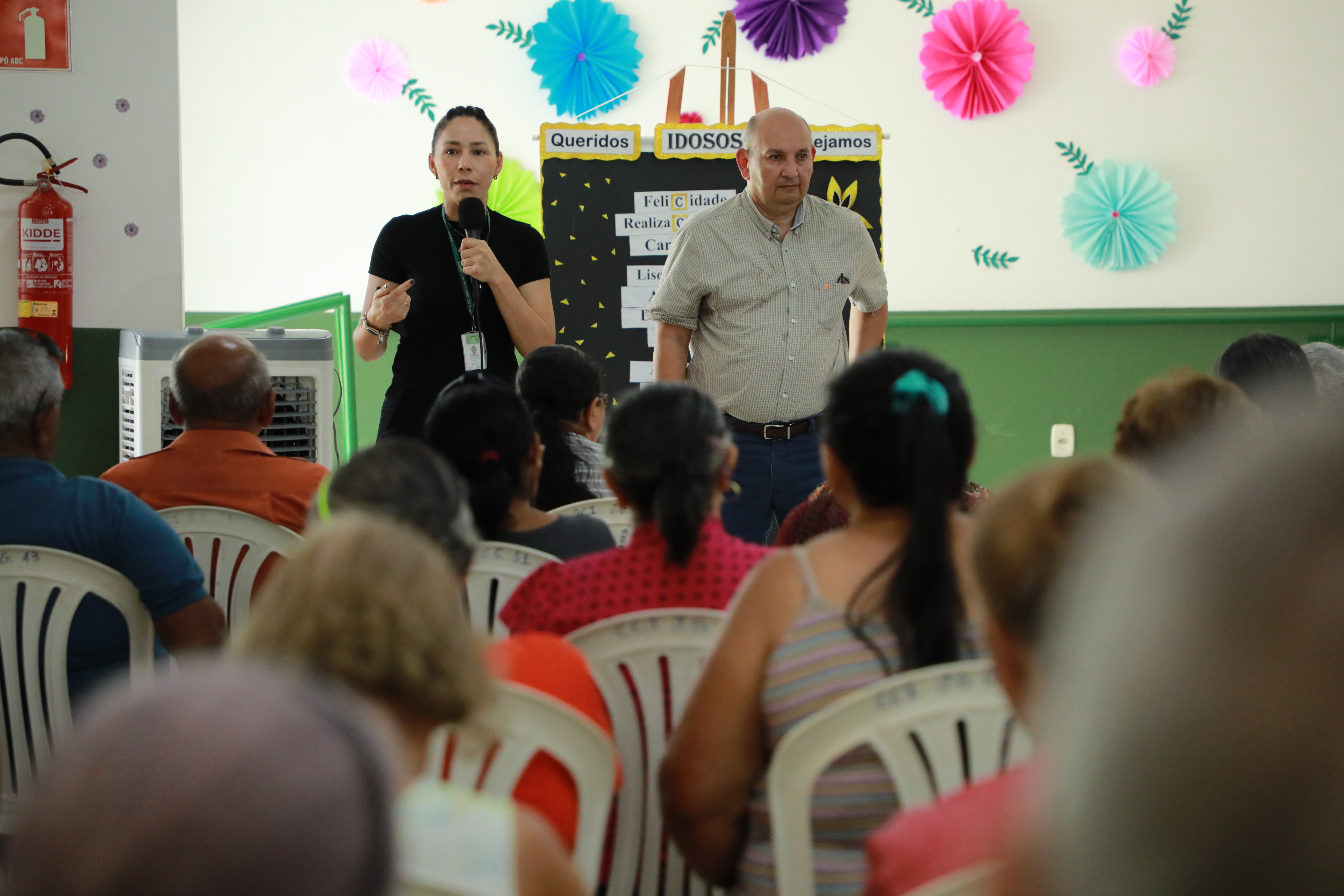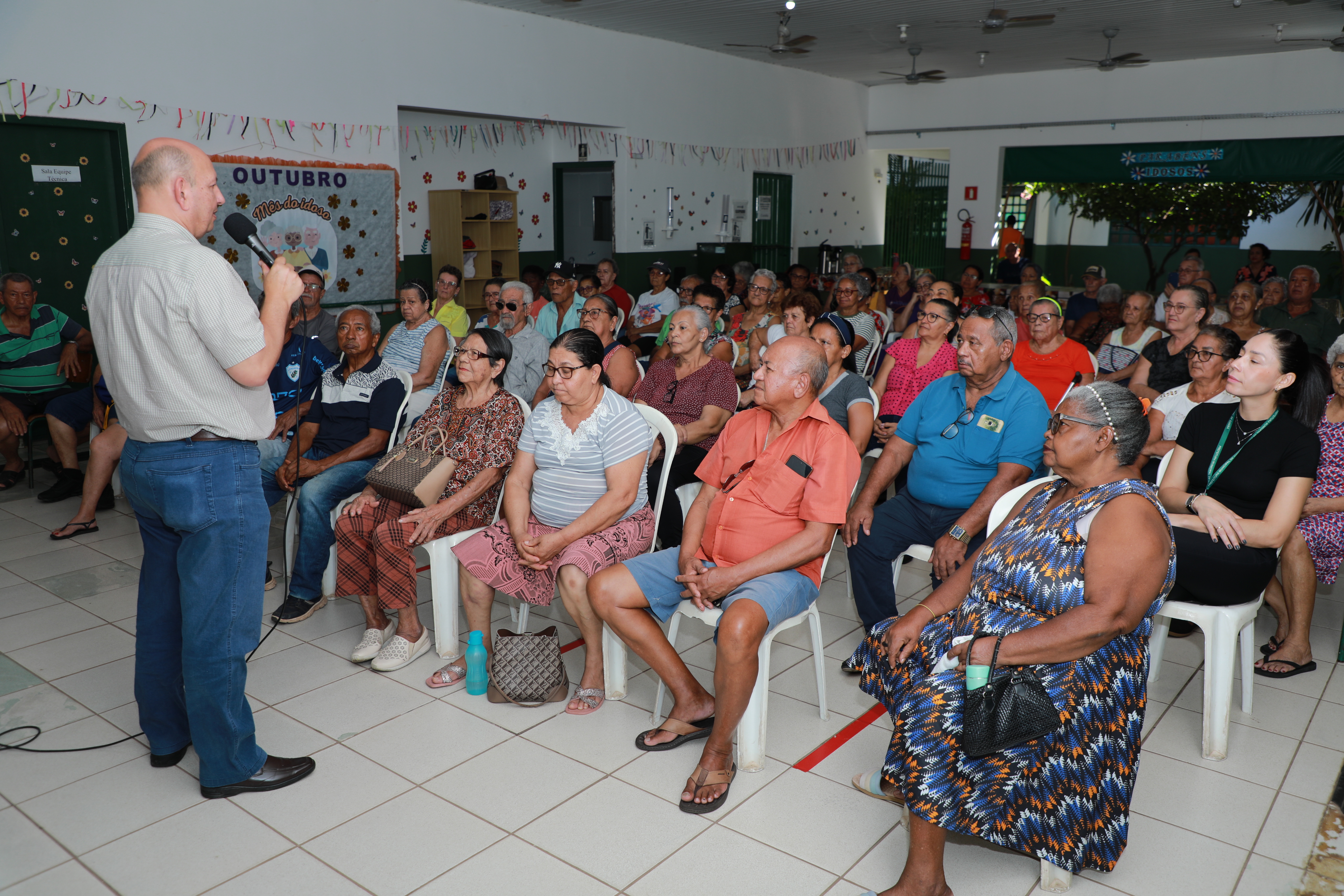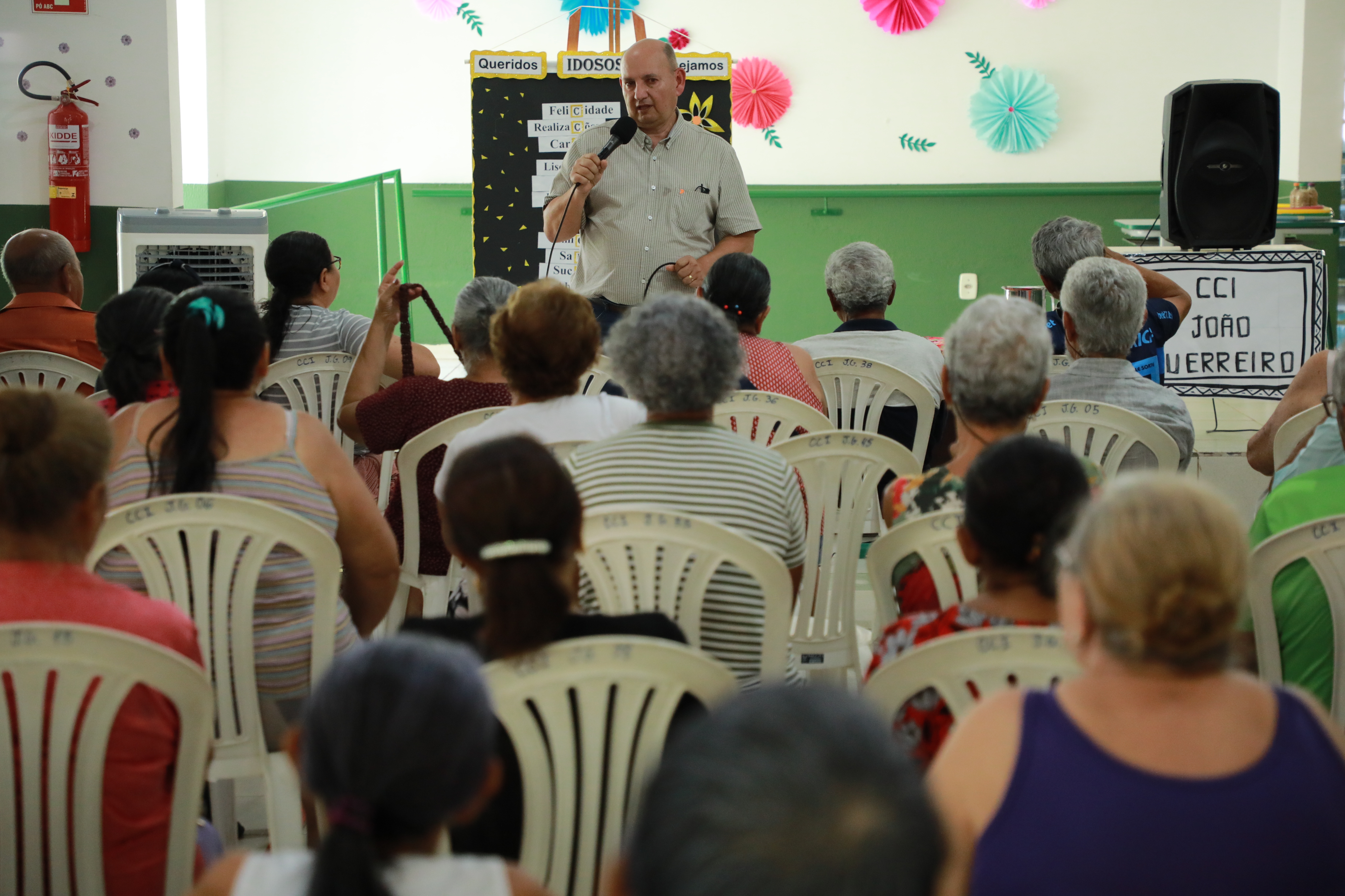 O delegado Marcos Veloso, da Delegacia Especializada da Pessoa Idosa, conduziu uma roda de conversa interativa no CCI João Guerreiro. No salão principal do Centro de Convivência, localizado na região do Coxipó, ele orientou os idosos sobre como prevenir golpes e reconhecer propostas abusivas, além de ressaltar a importância de denunciar qualquer forma de violência, que pode ser feita de forma anônima pelos números 100 ou 197.