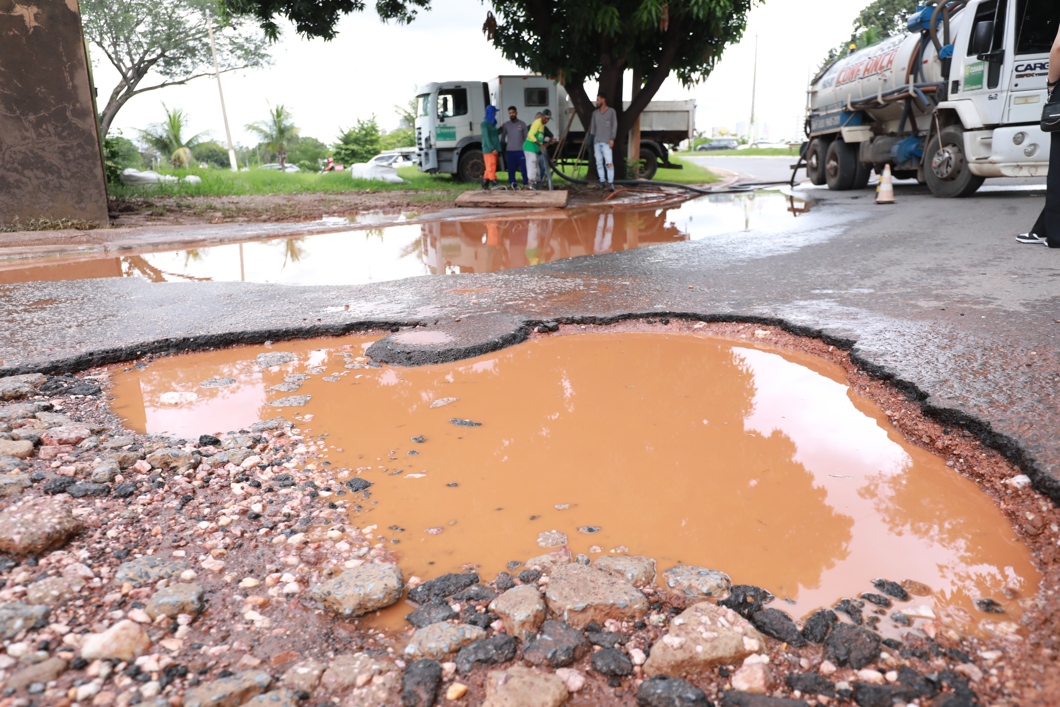 Para a segurança dos trabalhadores e a fluidez no trânsito, a Semob está coordenando o bloqueio total da via e orientando os desvios. O bloqueio foi necessário devido à imprudência de alguns motoristas, que inicialmente desrespeitaram a área de obras, passando pelo local e molhando os trabalhadores, o que dificultou o andamento do serviço.