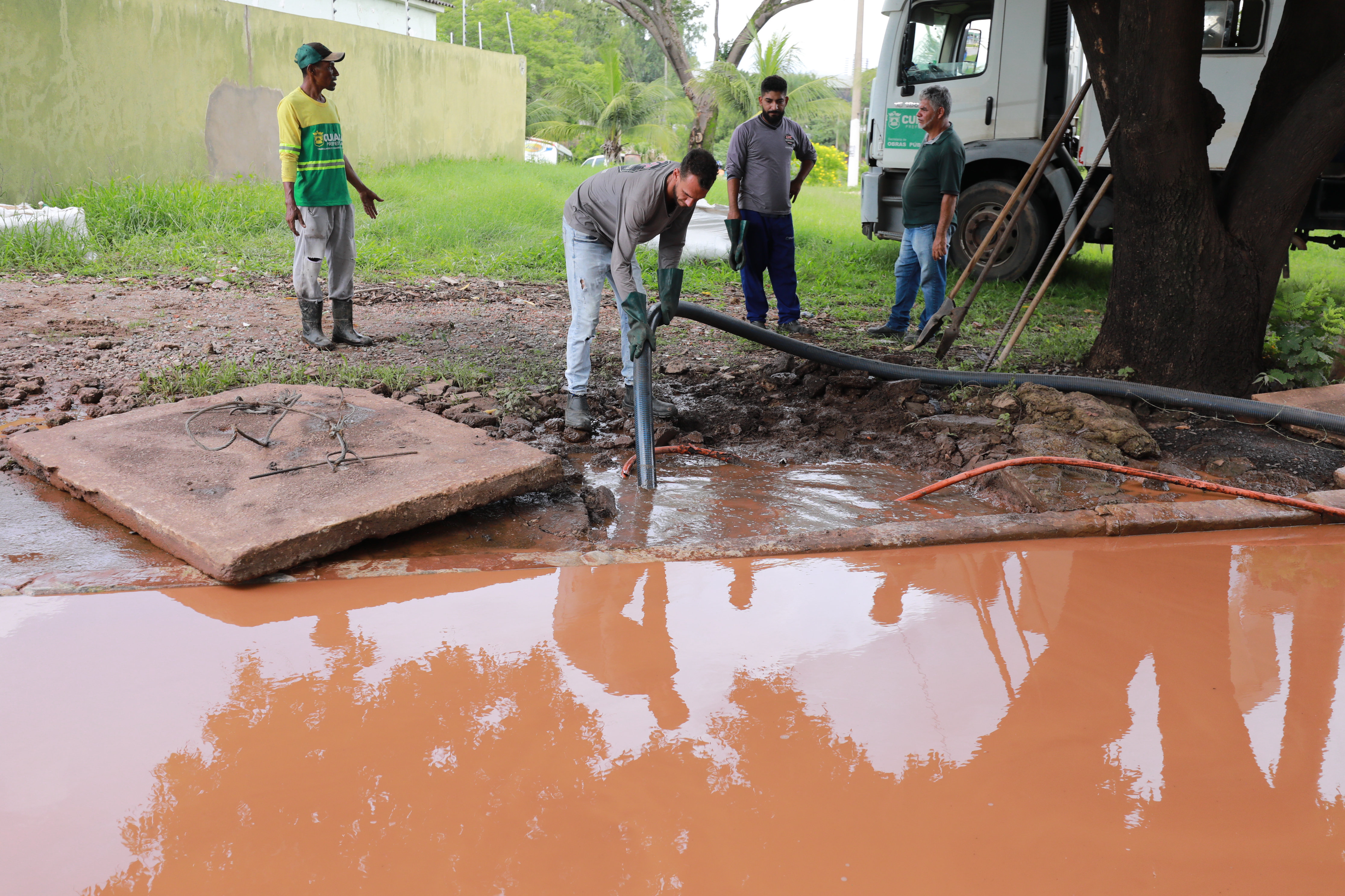 Durante a desobstrução, foi utilizado um caminhão hidrojato para remover a sujeira acumulada e restabelecer o fluxo adequado da água. Entre os materiais retirados estavam sedimentos trazidos pela chuva, como areia, brita e aterro, além de resíduos descartados irregularmente pela própria população, que ao longo do tempo contribuíram para o entupimento do sistema. Após a limpeza, a equipe fará a recomposição da base da via e aplicará uma nova camada de asfalto.