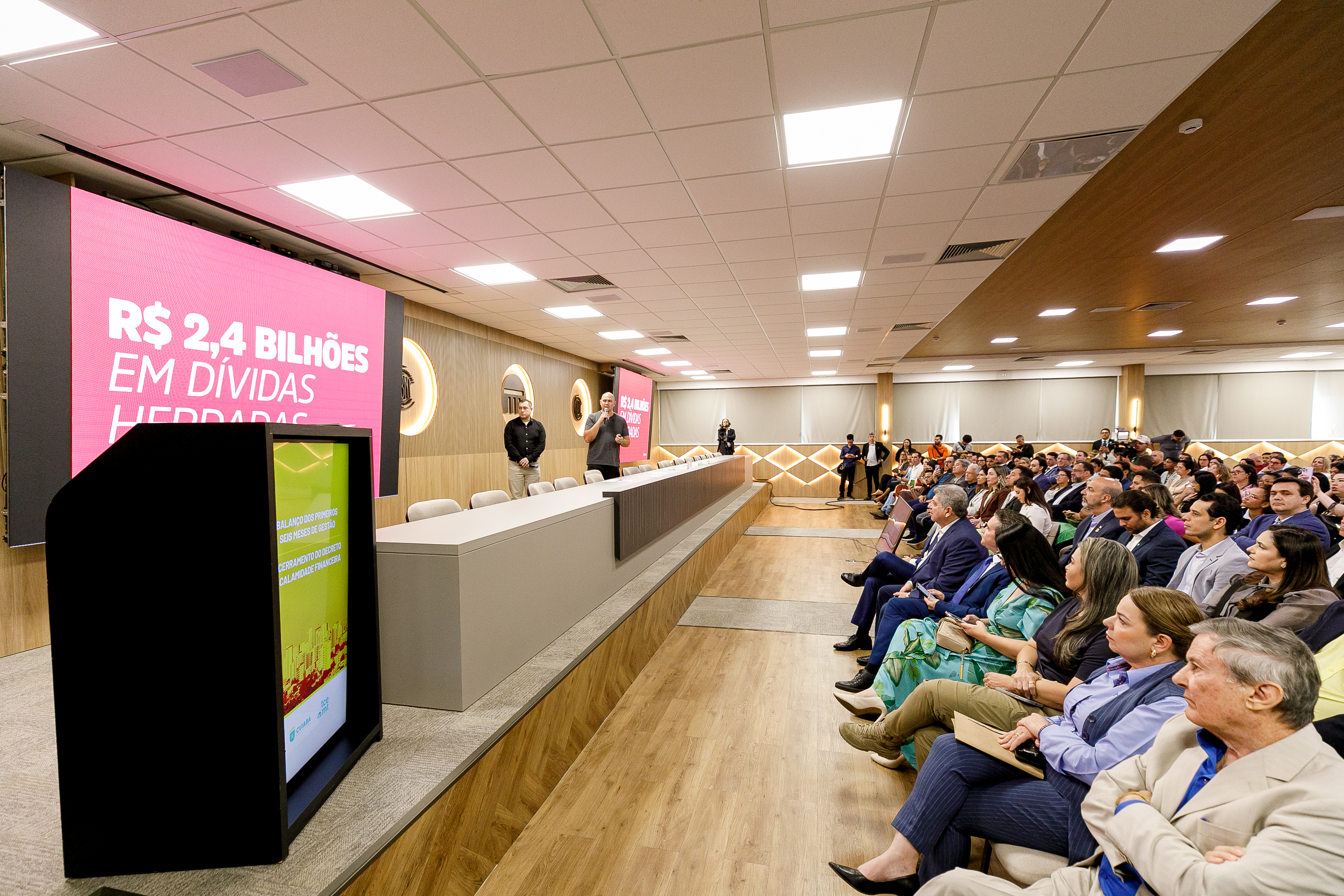 Abilio destacou o desafio herdado da gestão anterior, classificando como “catastrófica” a situação financeira recebida. Segundo o prefeito, o passivo acumulado chega a R$ 2,4 bilhões, incluindo restos a pagar, dívidas com INSS, FGTS, empréstimos consignados e precatórios. “Encerramos o decreto de calamidade, mas os ajustes seguem”, disse.