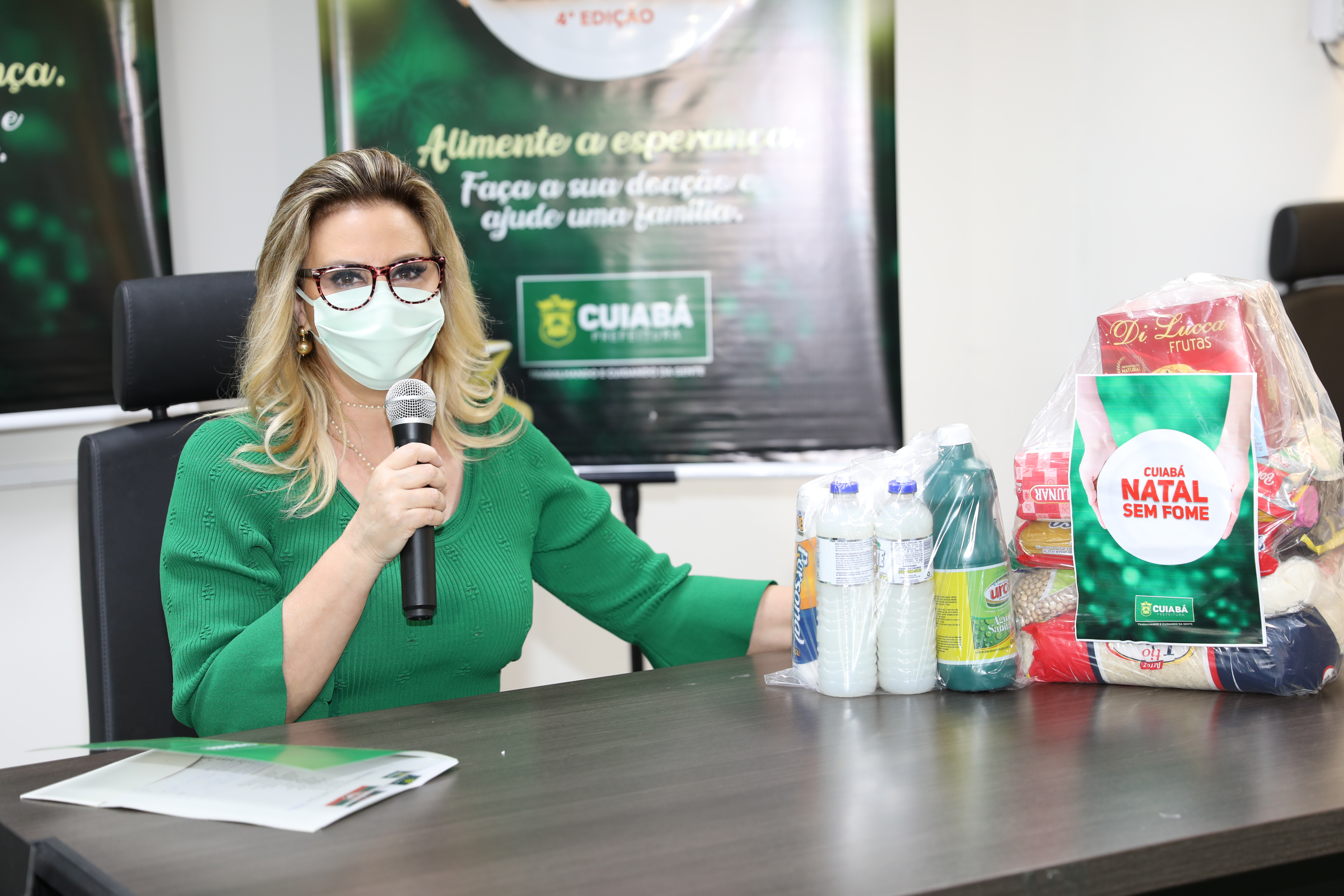 A primeira-dama Márcia Pinheiro deu início, nesta quinta-feira (03), no auditório da Prefeitura de Cuiabá, às doações da campanha de fim de ano “Natal Sem Fome”, destinada a arrecadar alimentos para famílias em vulnerabilidade social. O 4º ano da ação social acontece durante a pandemia de COVID-19, que tem impactado na economia gerando desemprego e aumentando à necessidade de milhares pessoas.