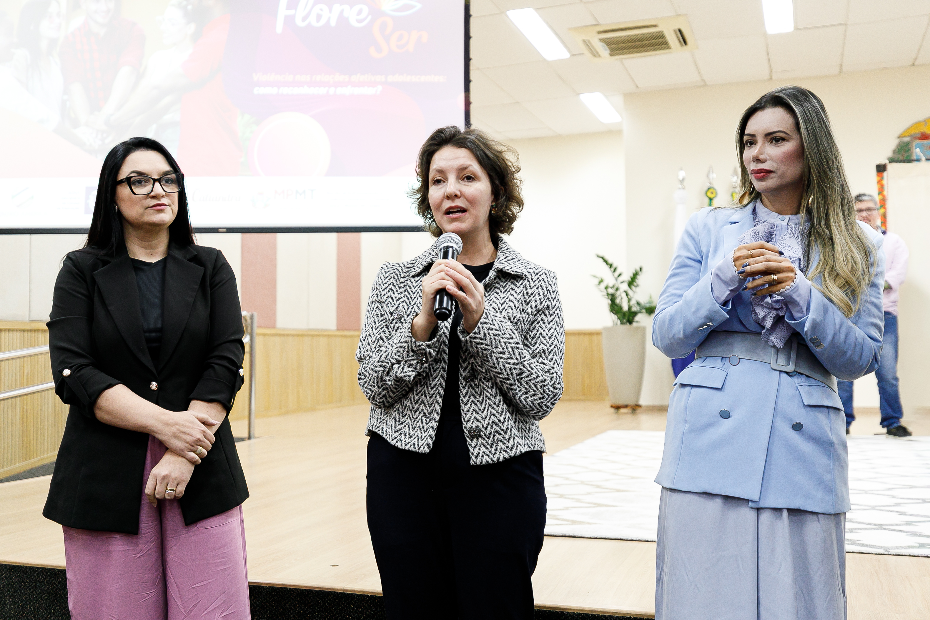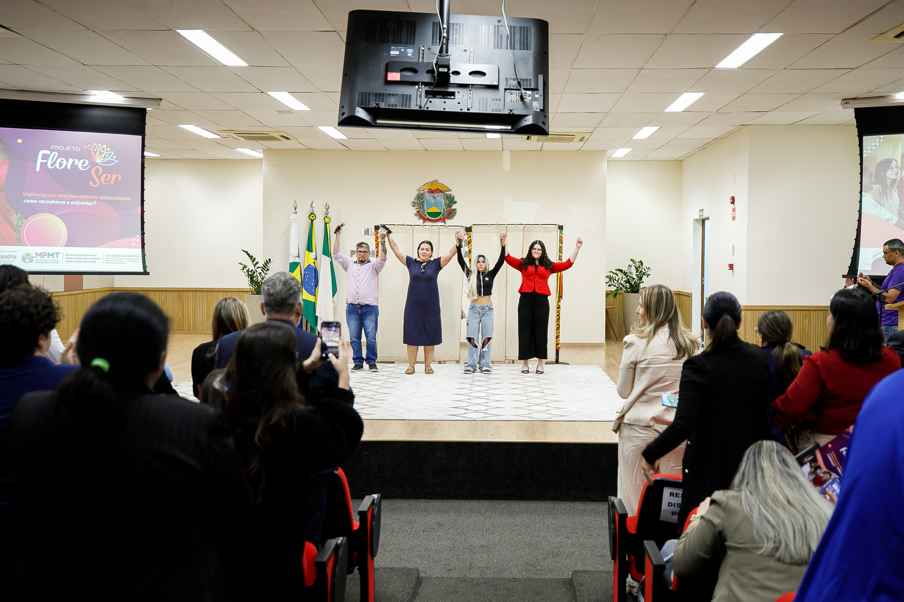 Promovido pelo Ministério Público de Mato Grosso (MPMT), por meio do Núcleo das Promotorias de Enfrentamento à Violência Doméstica e Familiar – Espaço Caliandra, o evento reuniu autoridades, educadores, estudantes e representantes da rede de proteção às mulheres.