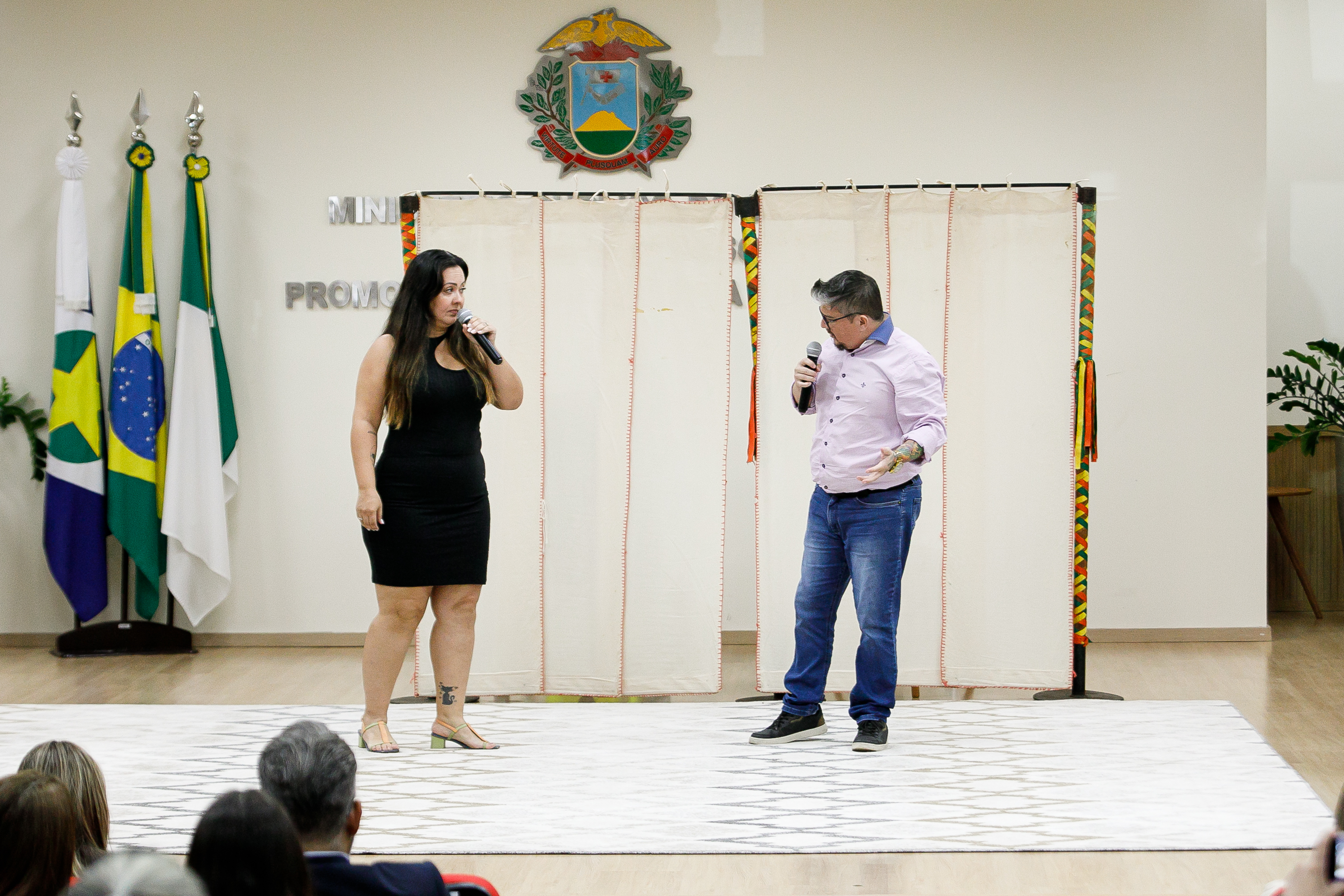 A solenidade de lançamento também contou com a participação da Companhia de Teatro VozTraz, que encenou a história real vivida por uma vítima de violência doméstica e patrimonial, sensibilizando o público. Durante a apresentação, Fernanda Costa compartilhou sua trajetória de superação. “O que eu digo é: sejam a rede de apoio das mulheres. Observem os sinais, escutem sem julgar. Chamem a polícia, não deixem que o feminicídio aumente”, externou Fernanda.