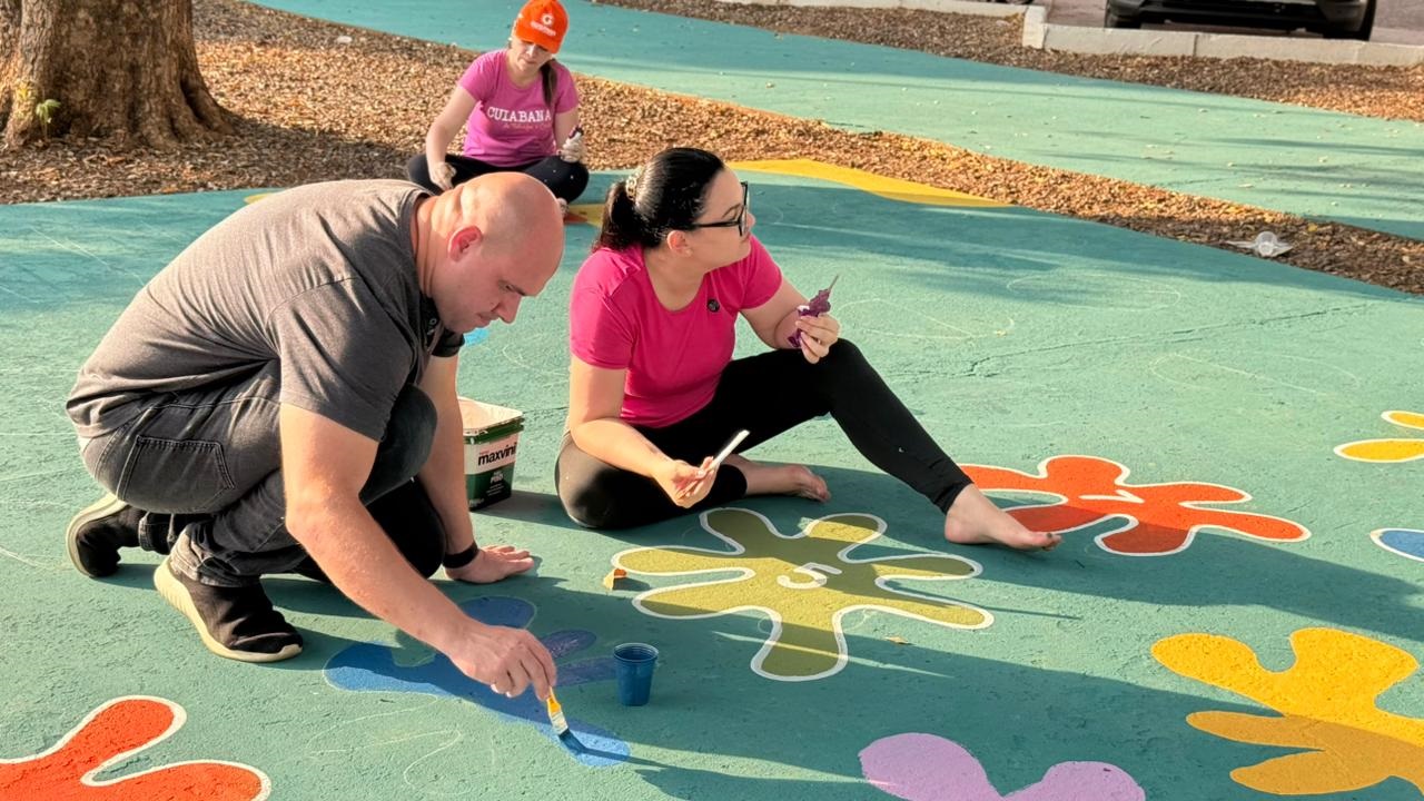 A primeira-dama e vereadora de Cuiabá, Samantha Iris, neste final de semana o segundo mutirão de pintura e melhorias em quadras poliesportivas da capital. A ação contou com o apoio de voluntários e da comunidade, promovendo o envolvimento coletivo e fazendo com que todos se sentissem parte da transformação do espaço público.