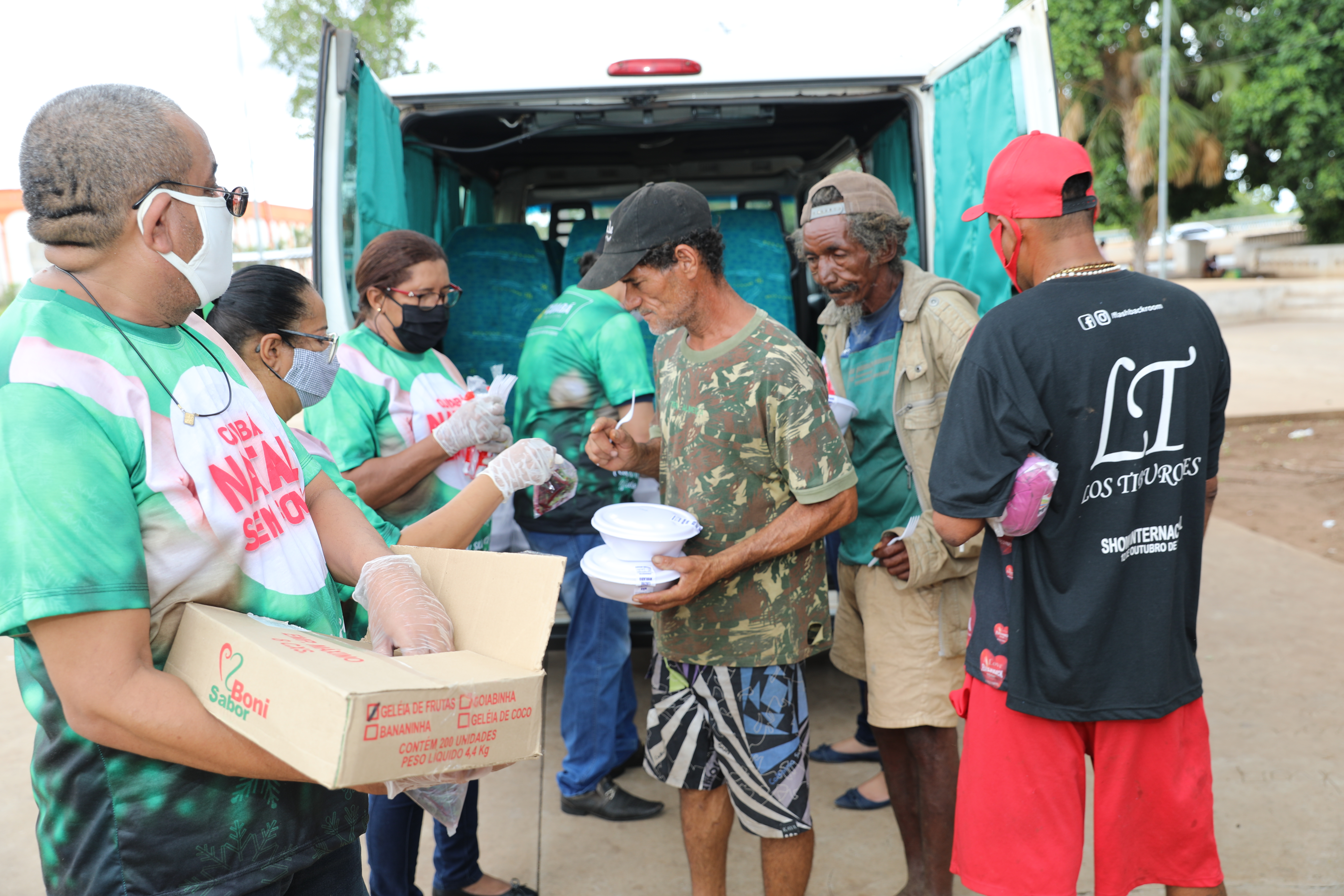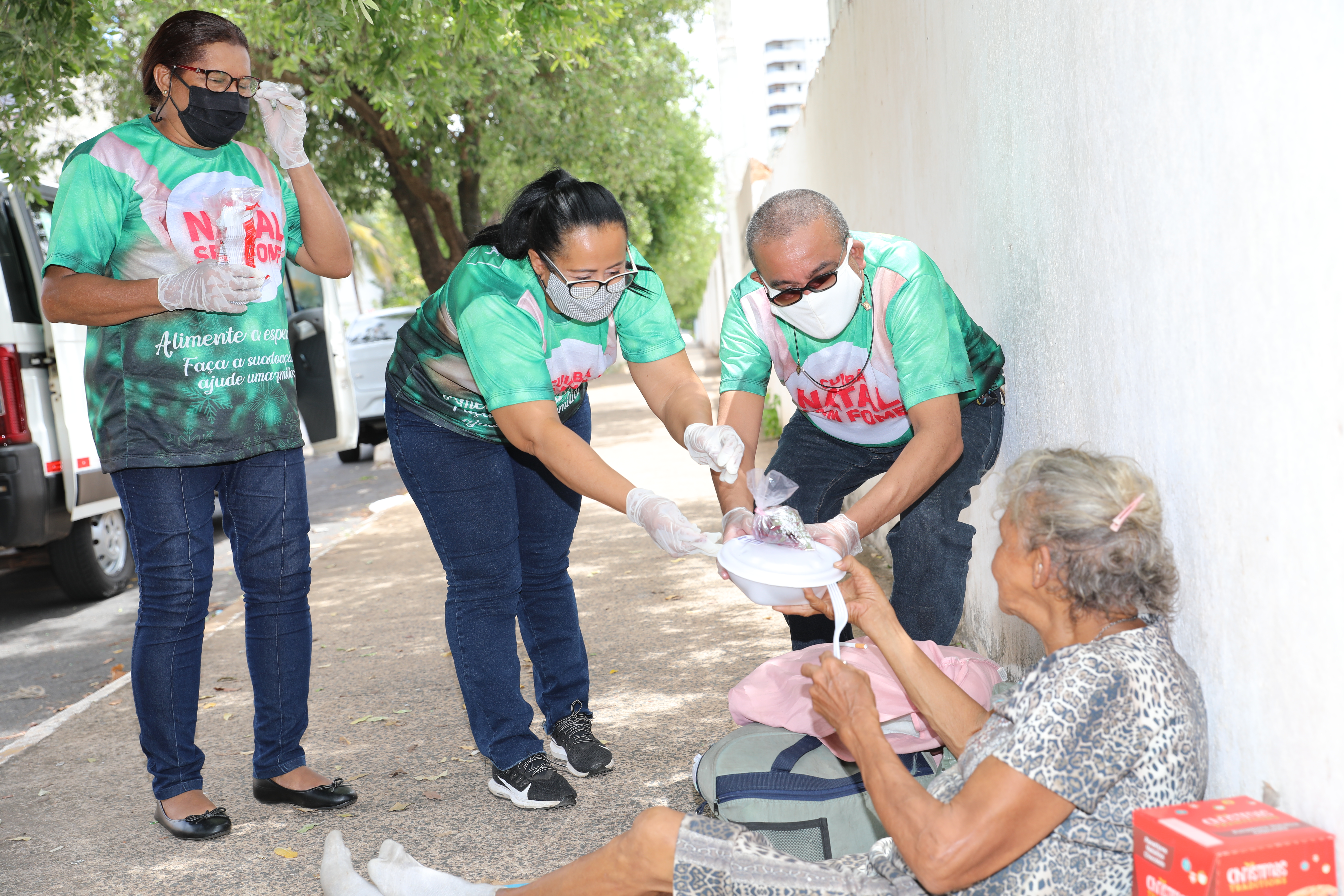 A campanha de final de ano Natal Sem Fome, coordenada pela primeira-dama Márcia Pinheiro, em conjunto com Prefeitura de Cuiabá, distribuiu na manhã desta quinta-feira (24), véspera de Natal, em torno de 250 marmitas (ceias) para os moradores em situação de rua. A ação especial faz parte do conjunto de entregas programadas pela Secretaria Municipal de Assistência Social e da Pessoa com Deficiência para esta reta final do ano.