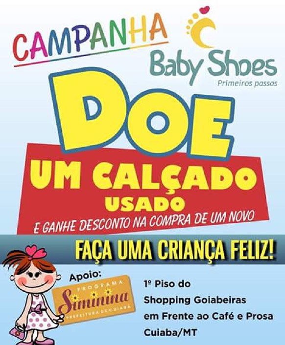 "Os calçados infantis da primeira infância deixam de ser usados pelas crianças com alguns meses de uso, pois elas crescem muito rápido. Logo, aquele calçado em bom estado passa a ficar guardado, sem finalidade. E é esse calçado que queremos receber, para assim fazermos a doação de bons produtos àquelas que precisam”, afirma a proprietária da empresa Baby Shoes, Laura Kamila Mattos.