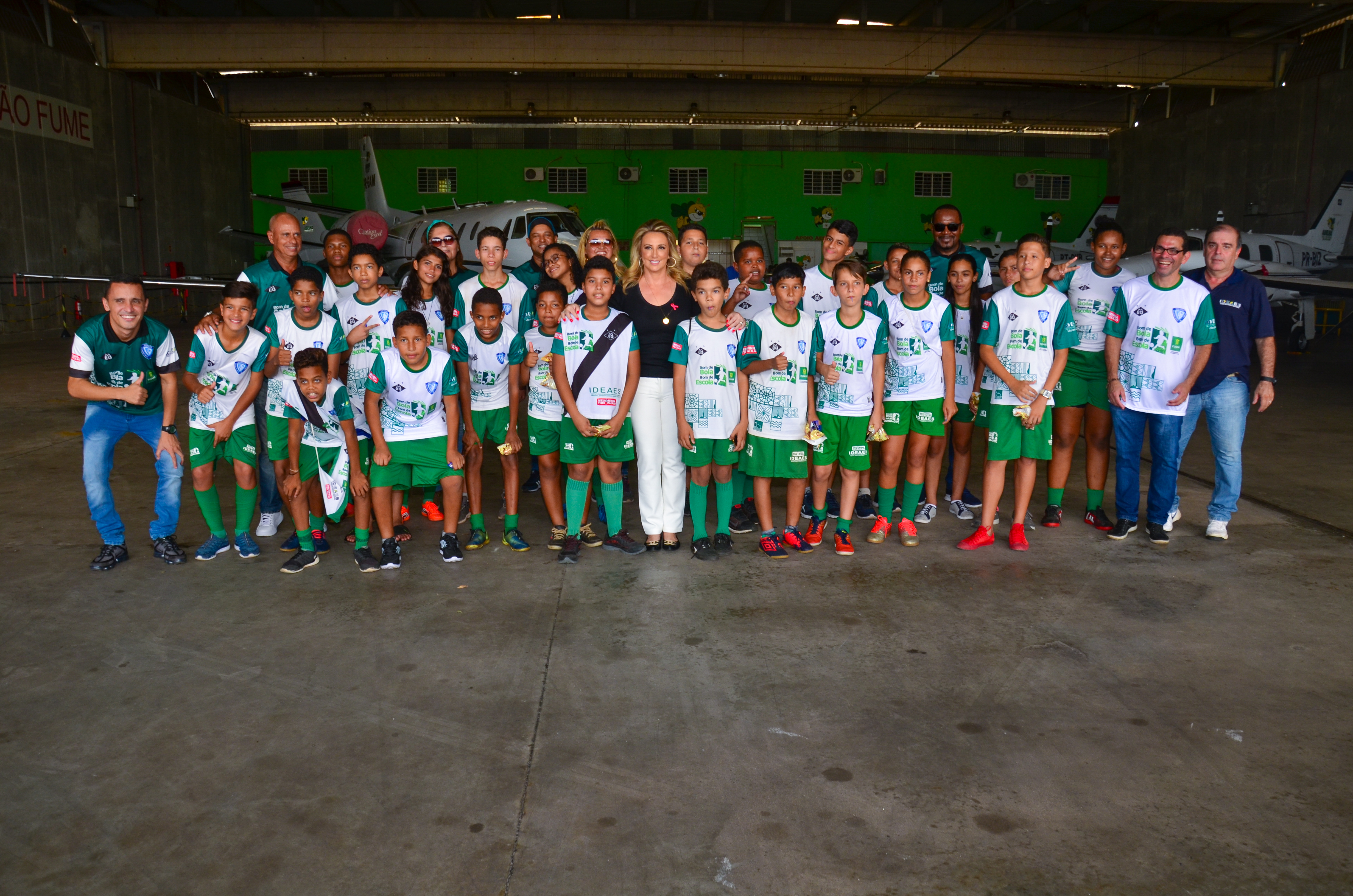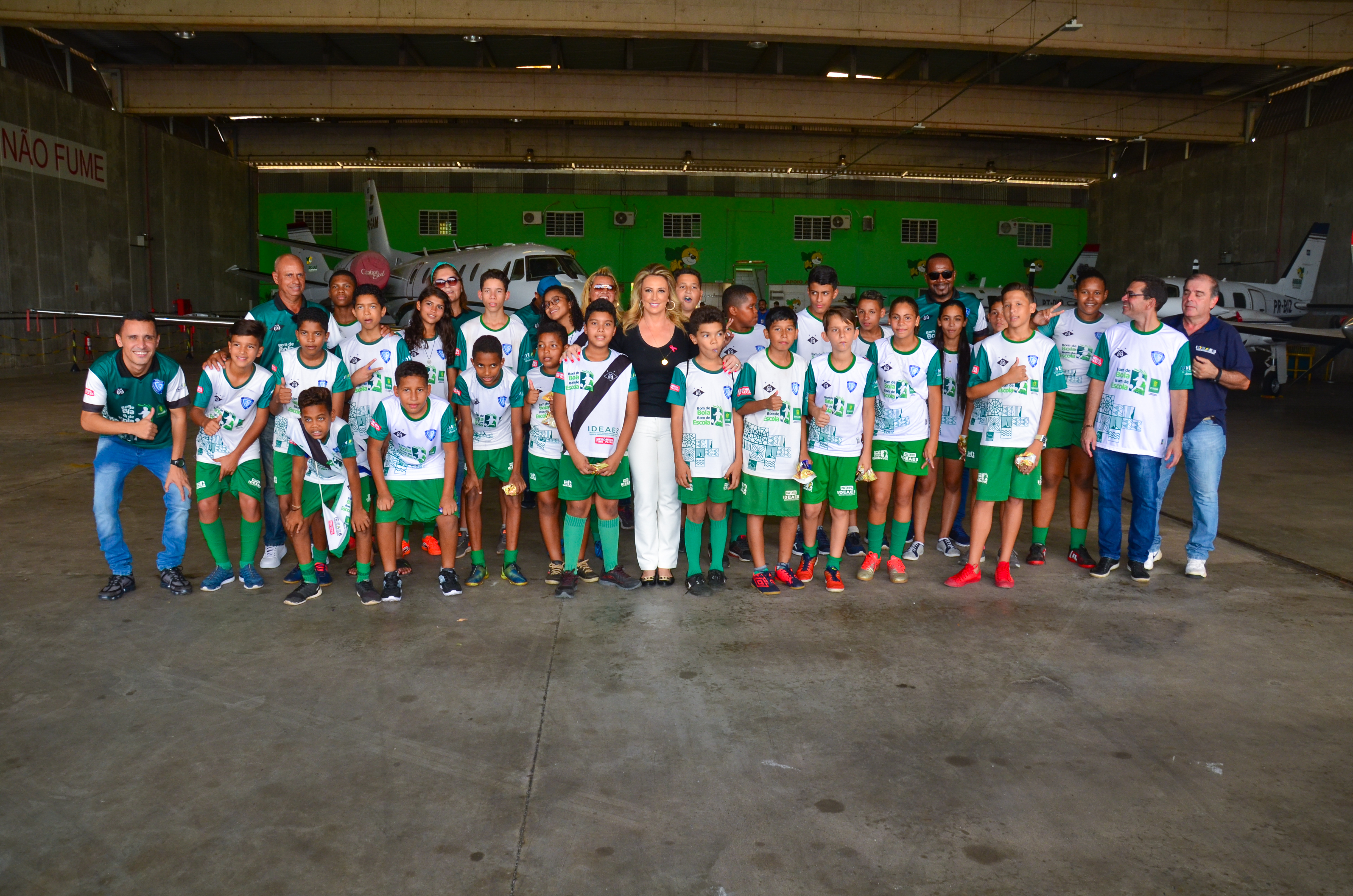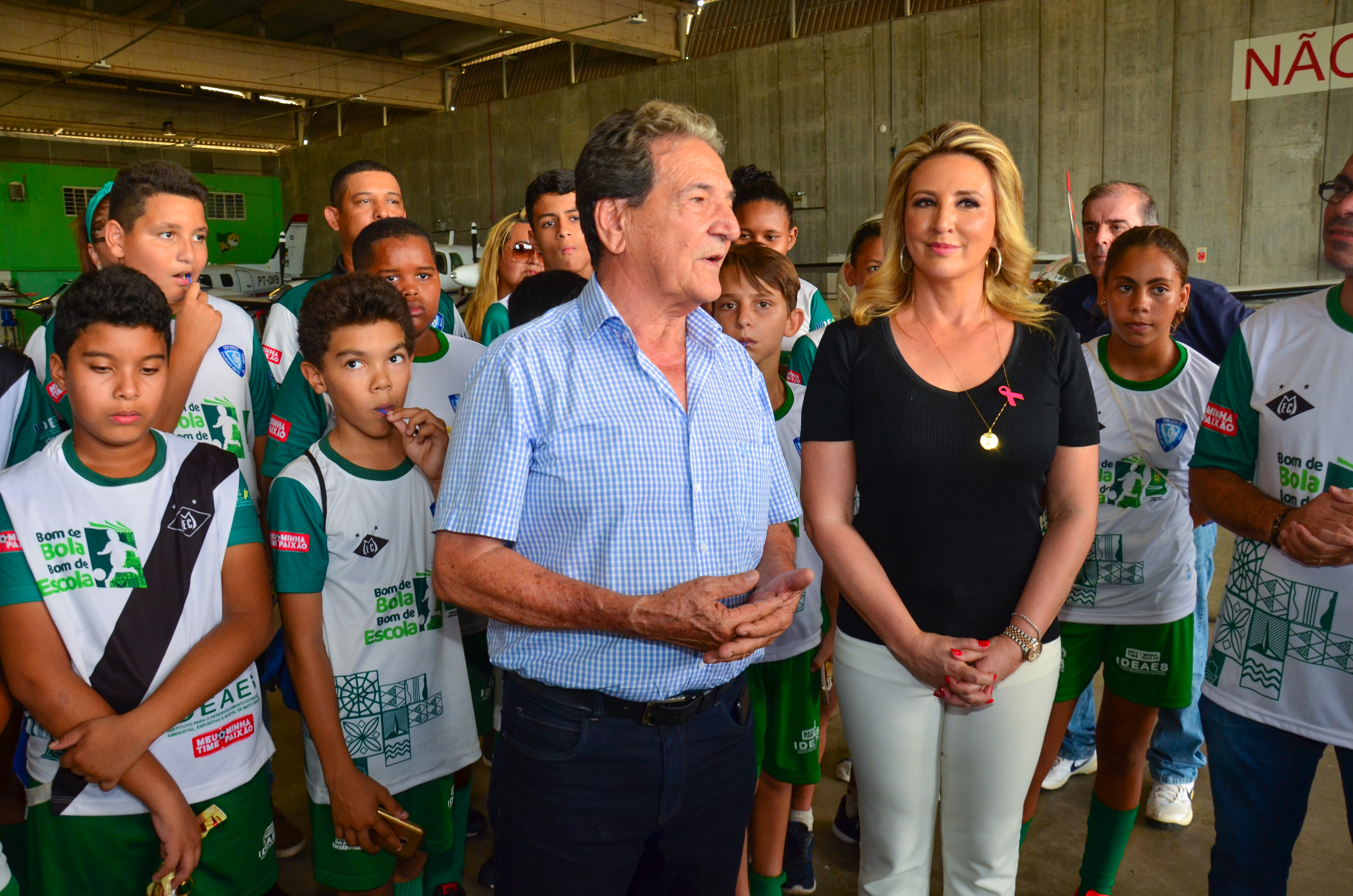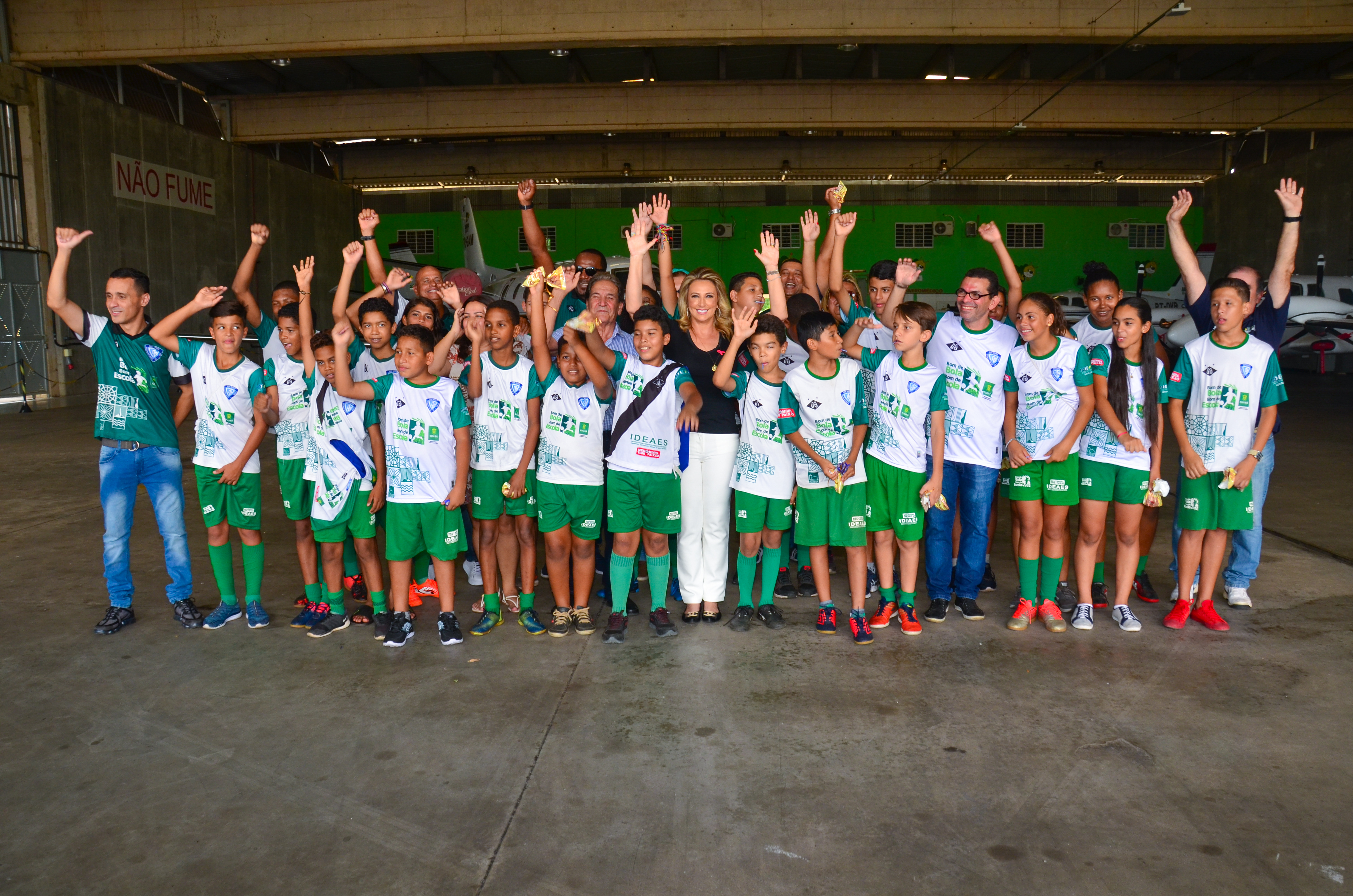 Primeira-dama leva alunos do Bom de Bola Bom de Escola para voo panorâmico