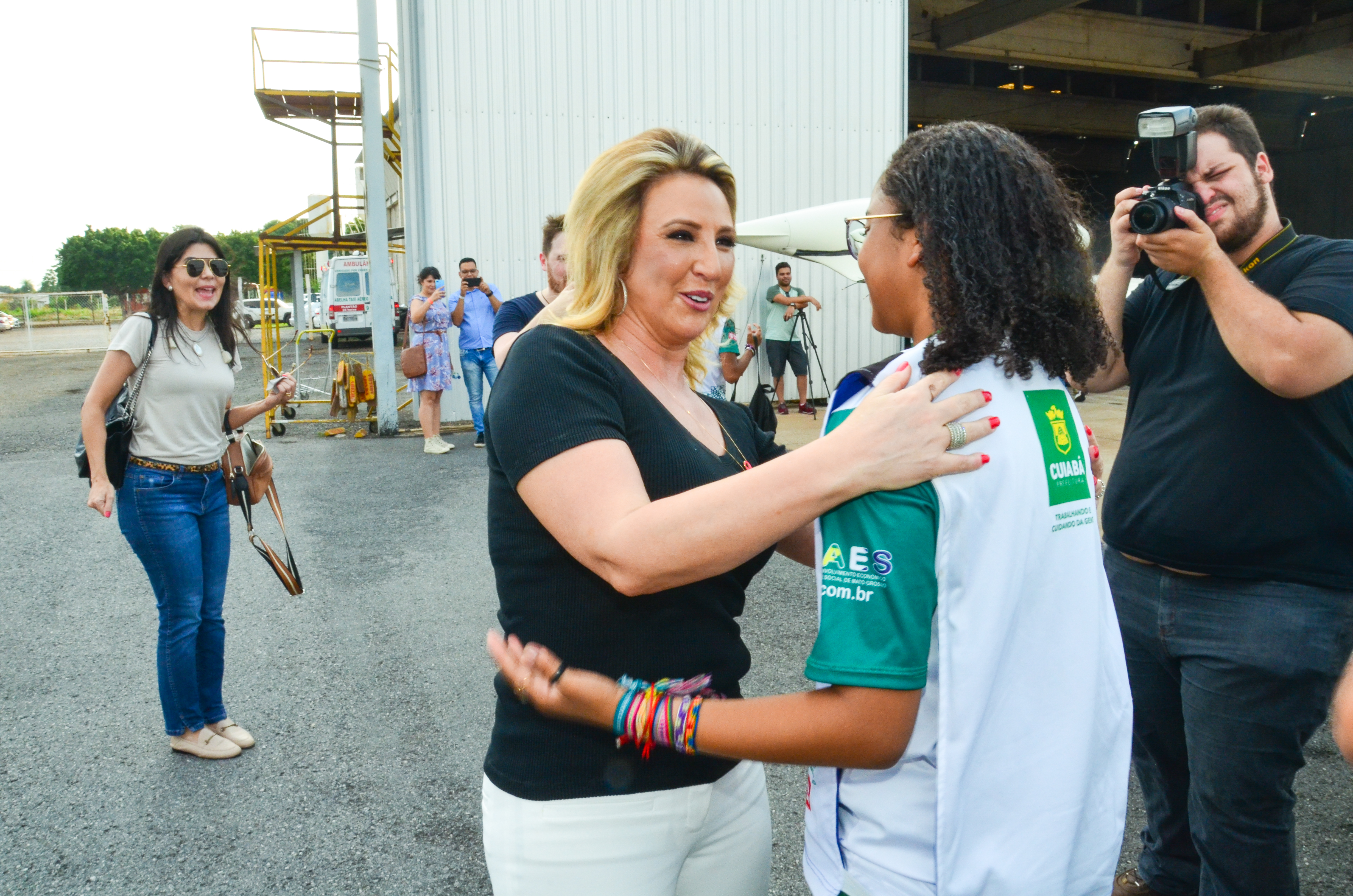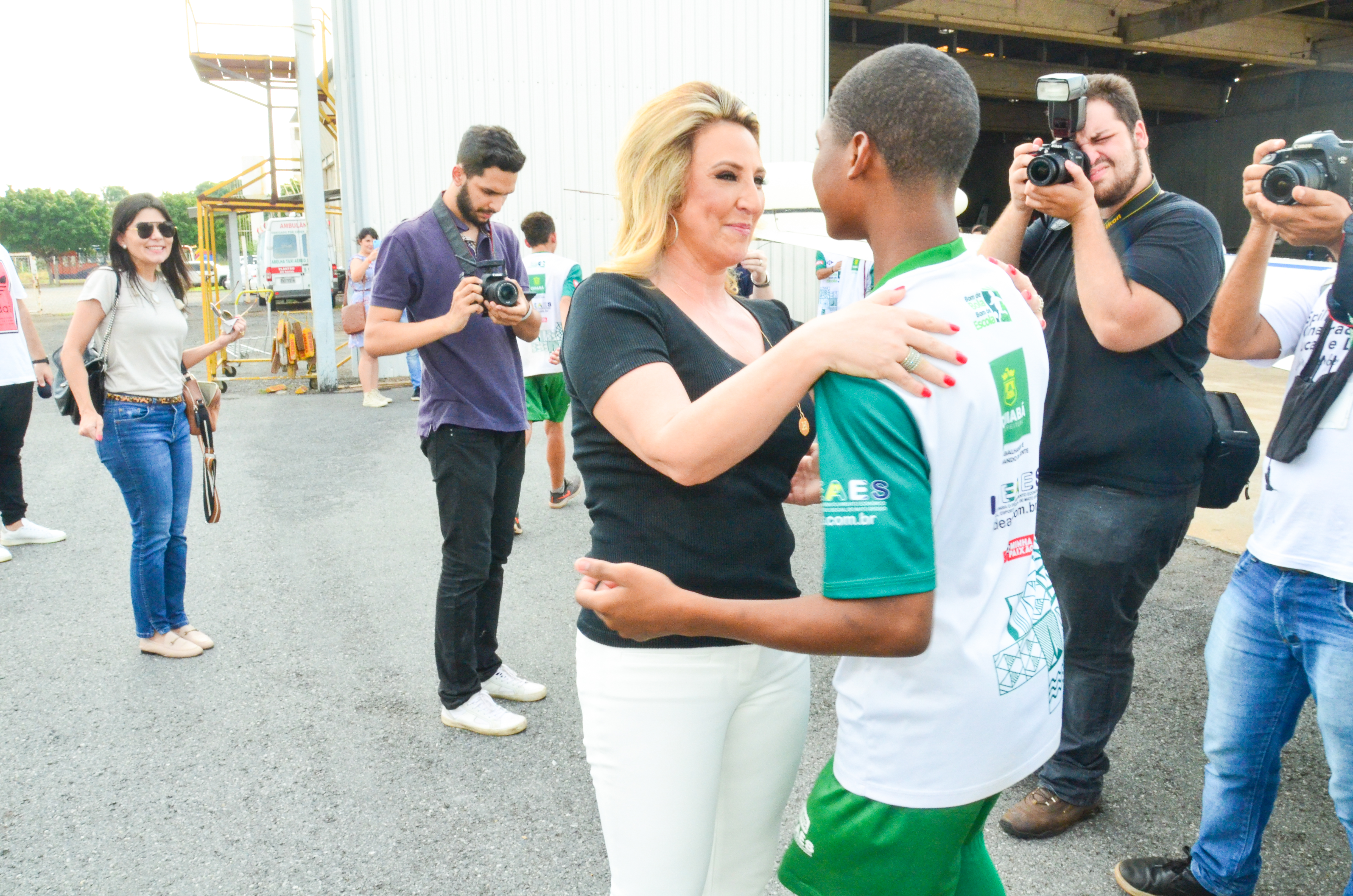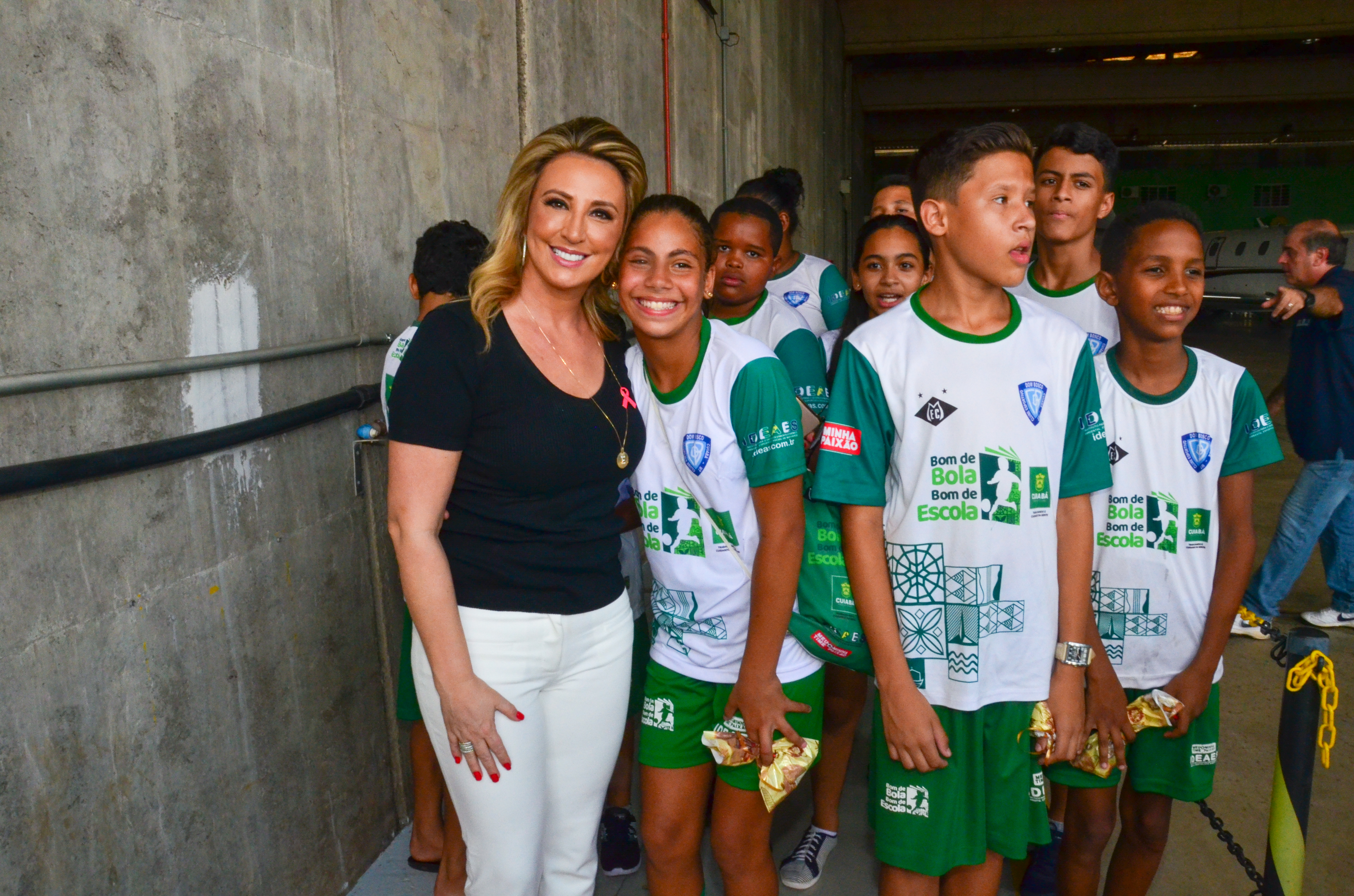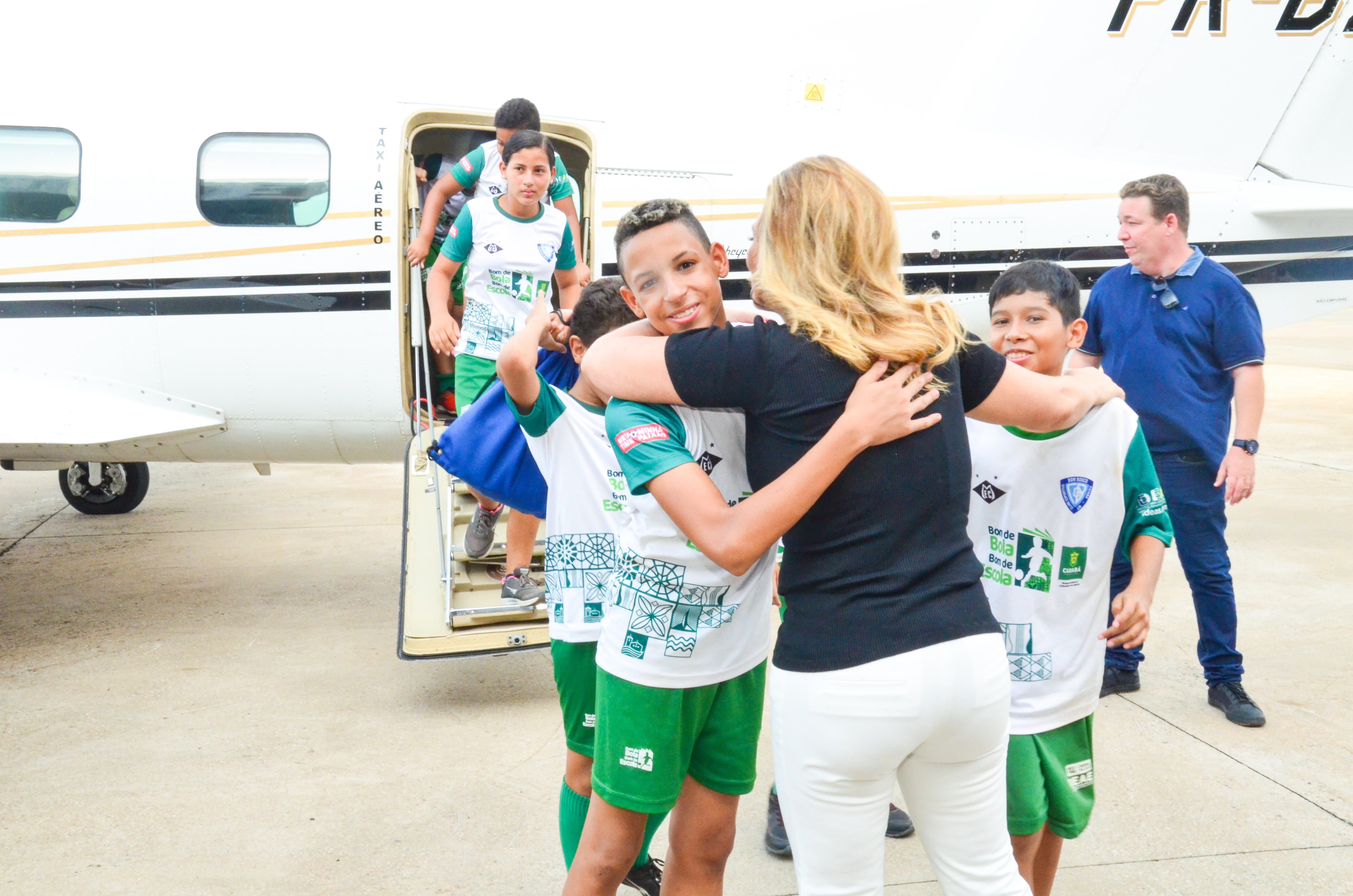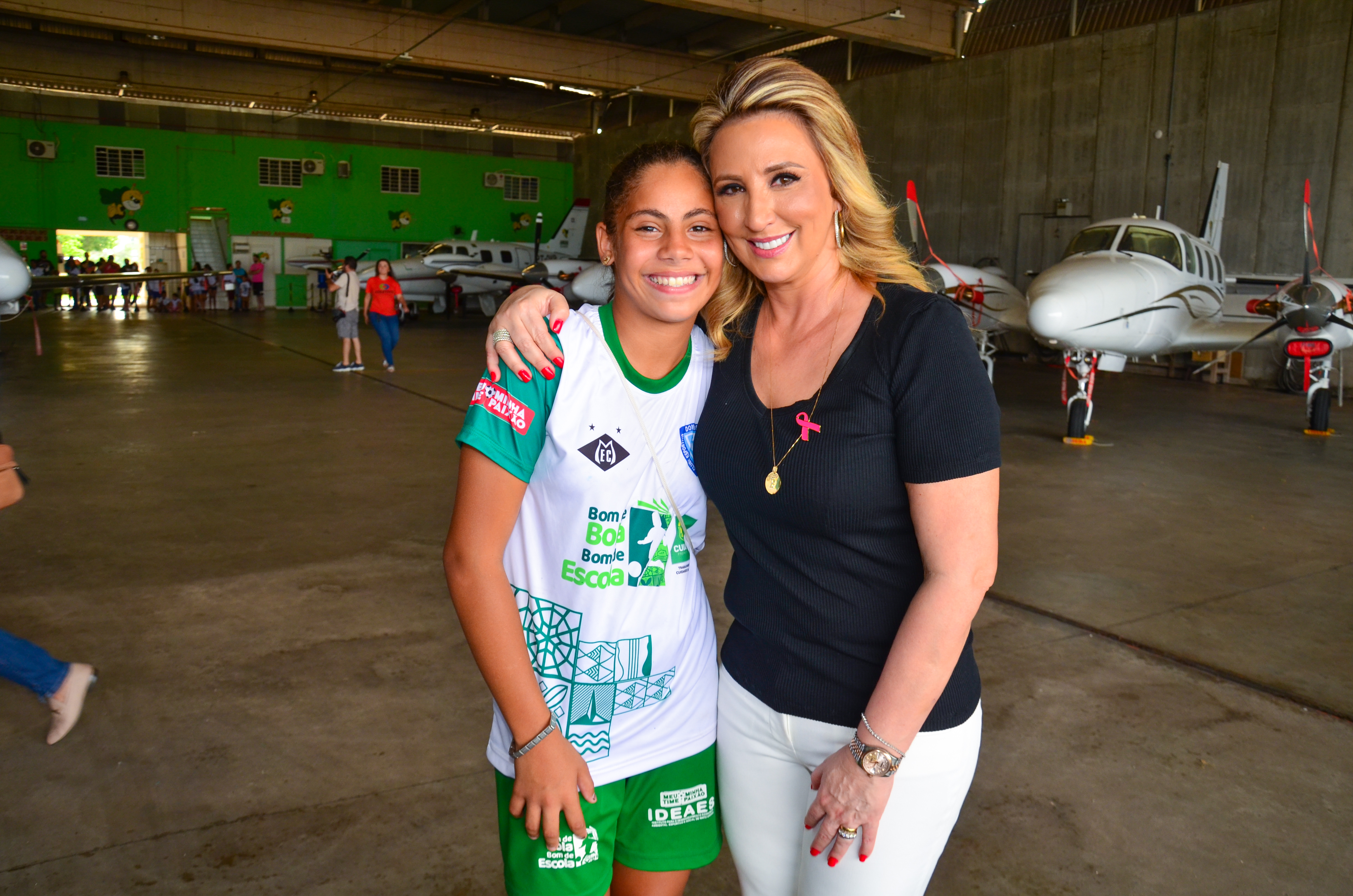 Primeira-dama leva alunos do Bom de Bola Bom de Escola para voo panorâmico