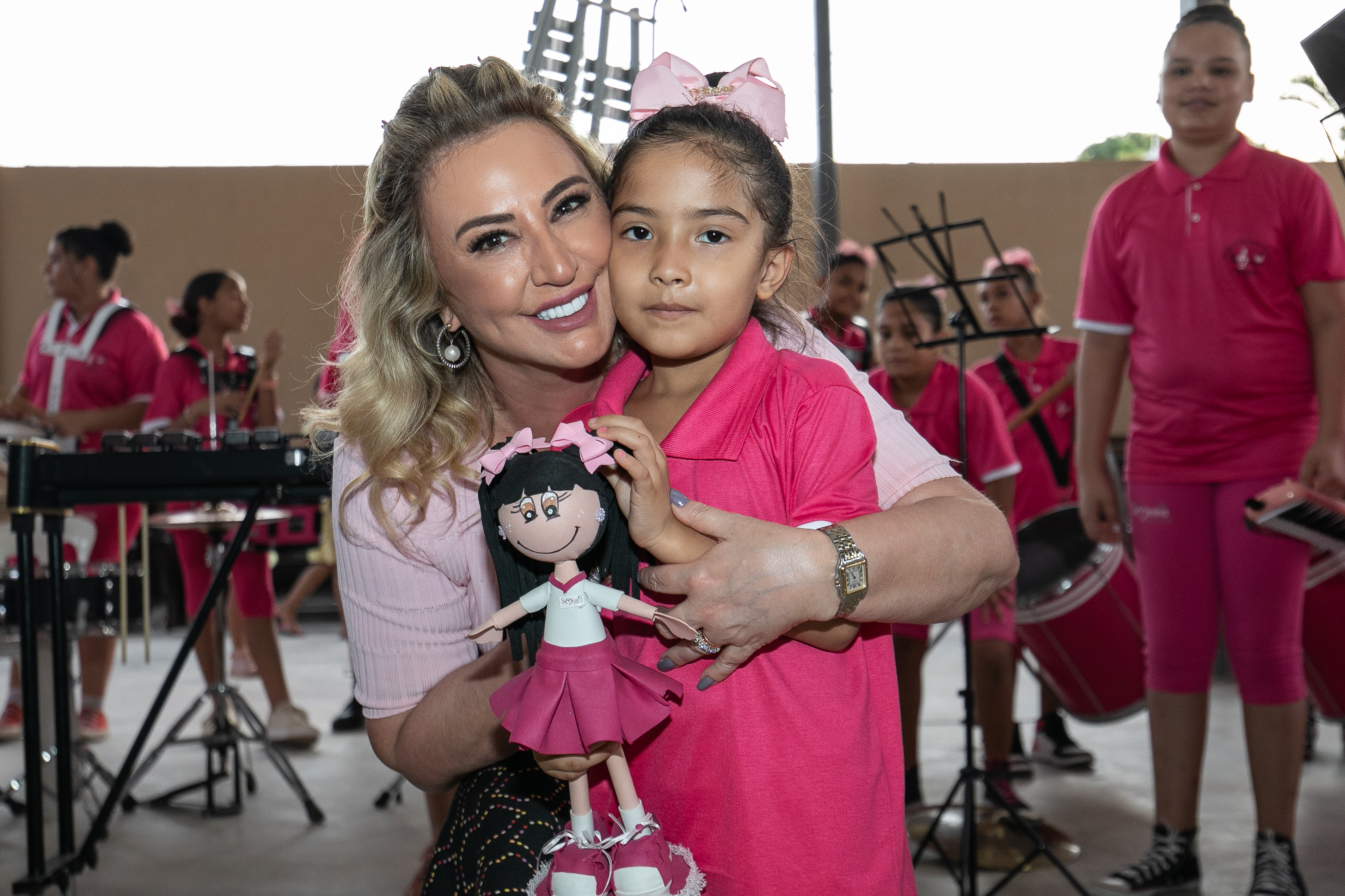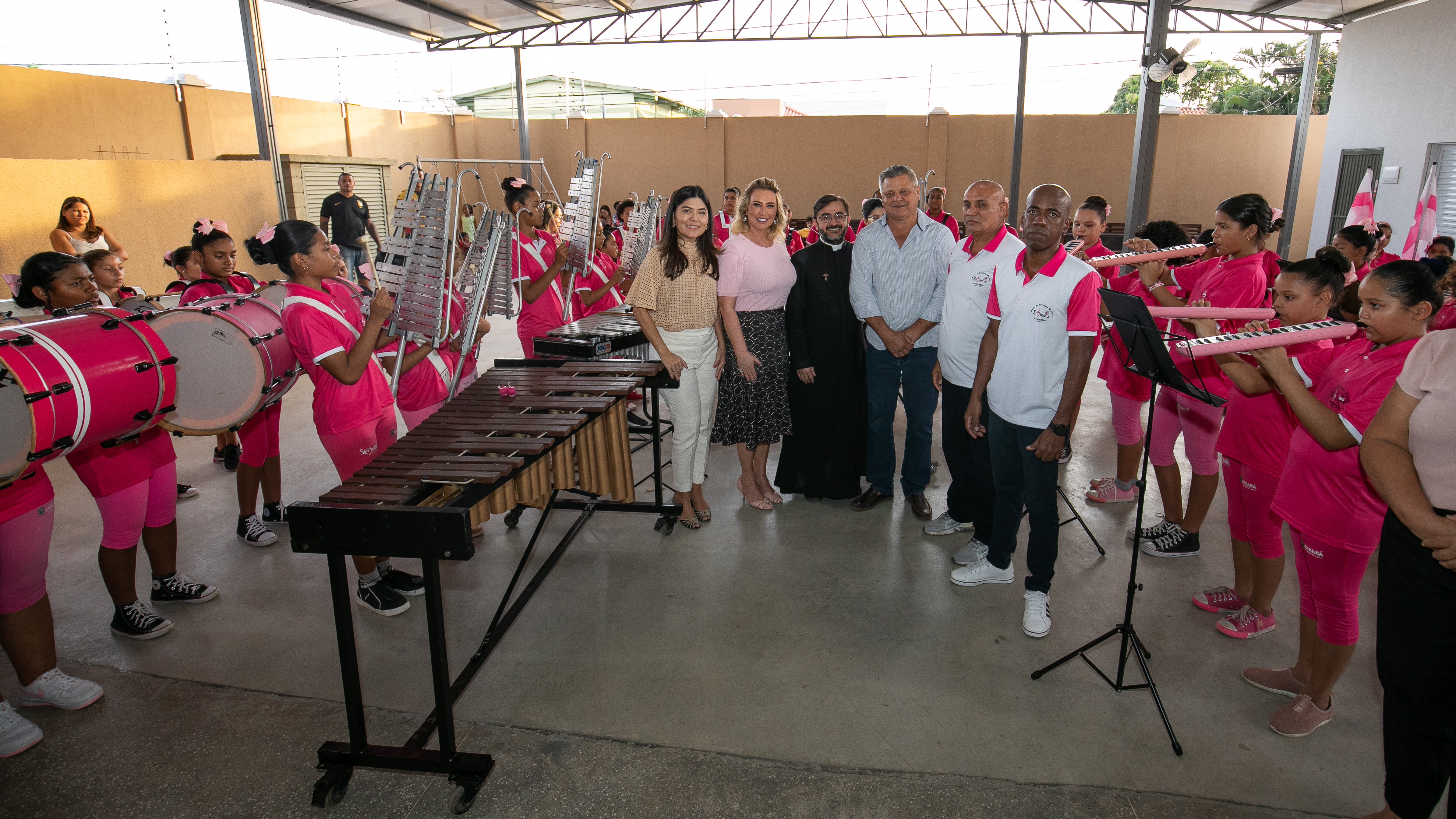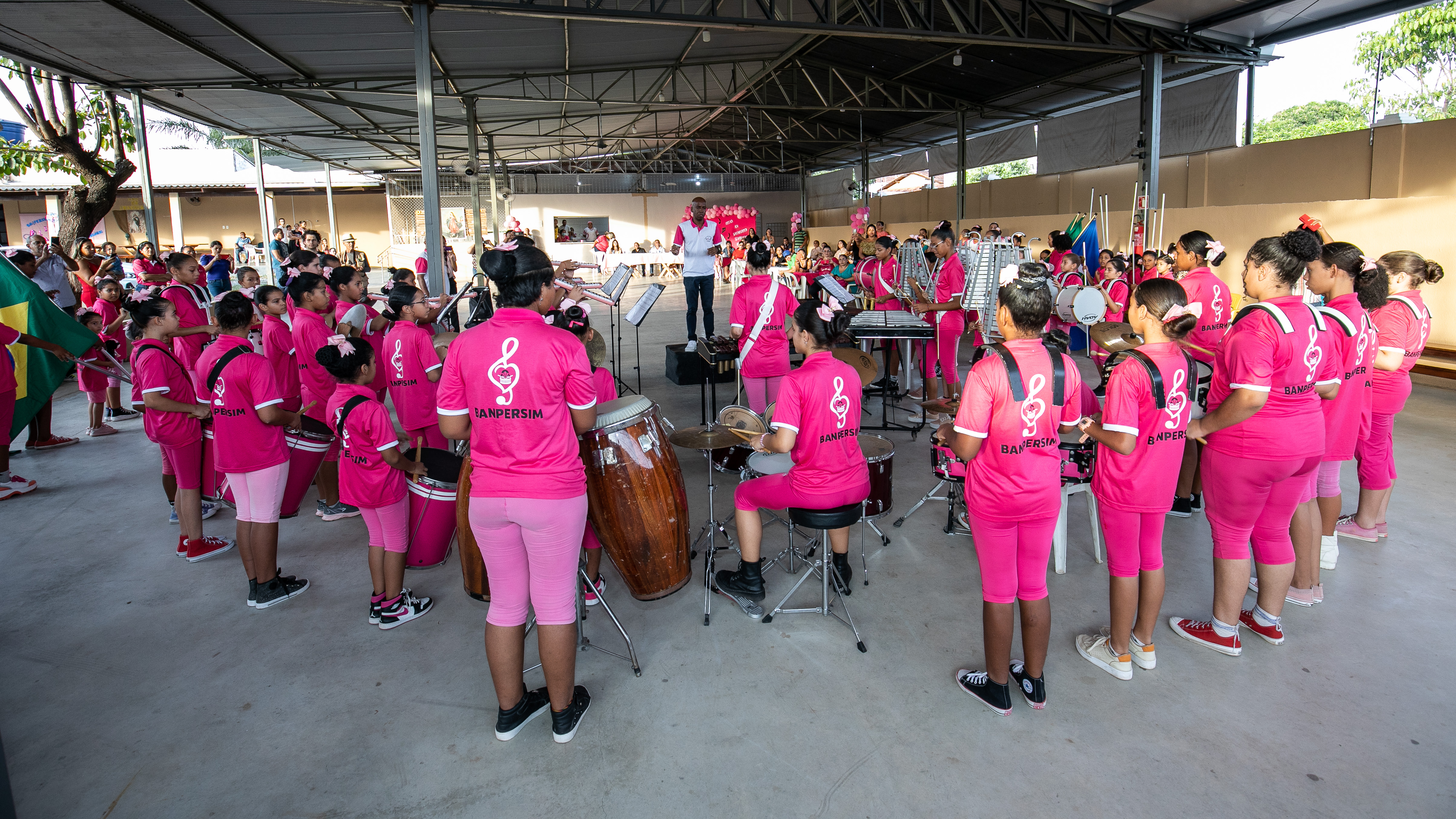 “Graças a Deus a madrinha do programa Siminina, Marcia Pinheiro, que tem um olhar e um carinho por todas as atividades desenvolvidas pela nossa equipe, hoje temos uma fanfarra completa, com instrumentos novos e uniformes, tudo cuidadosamente preparados na cor rosa que tem a cara da nossa primeira-dama”, explica.