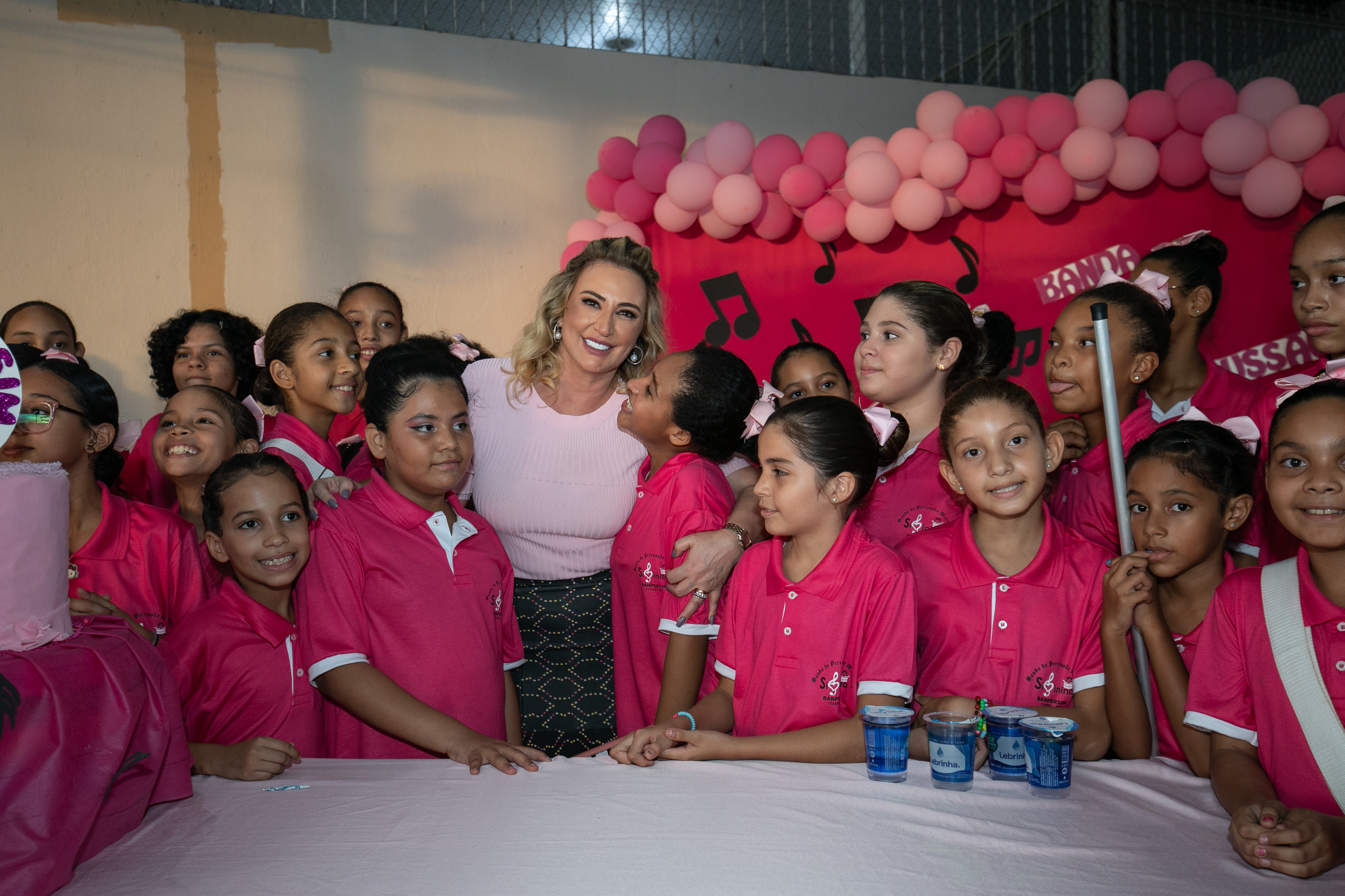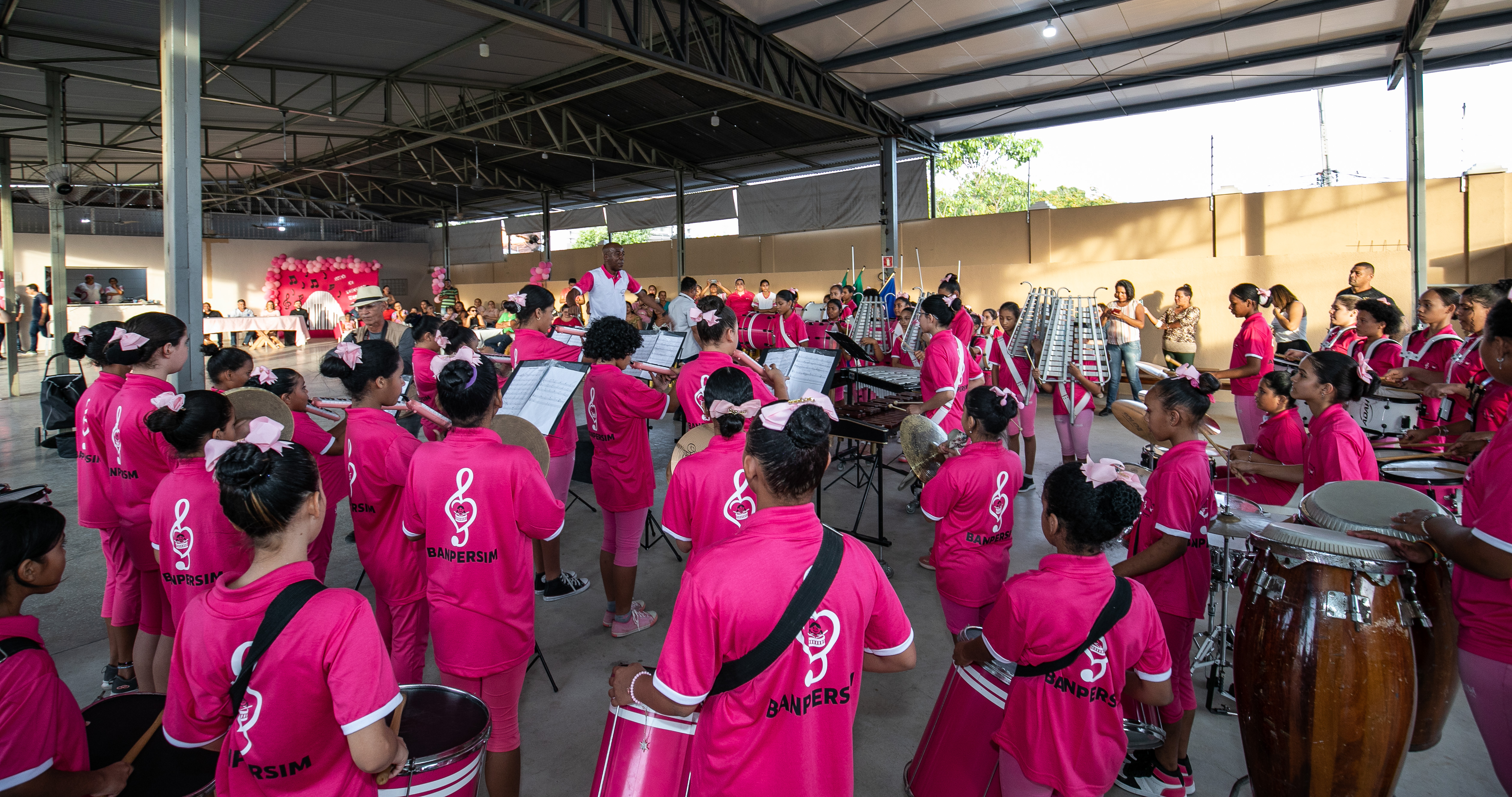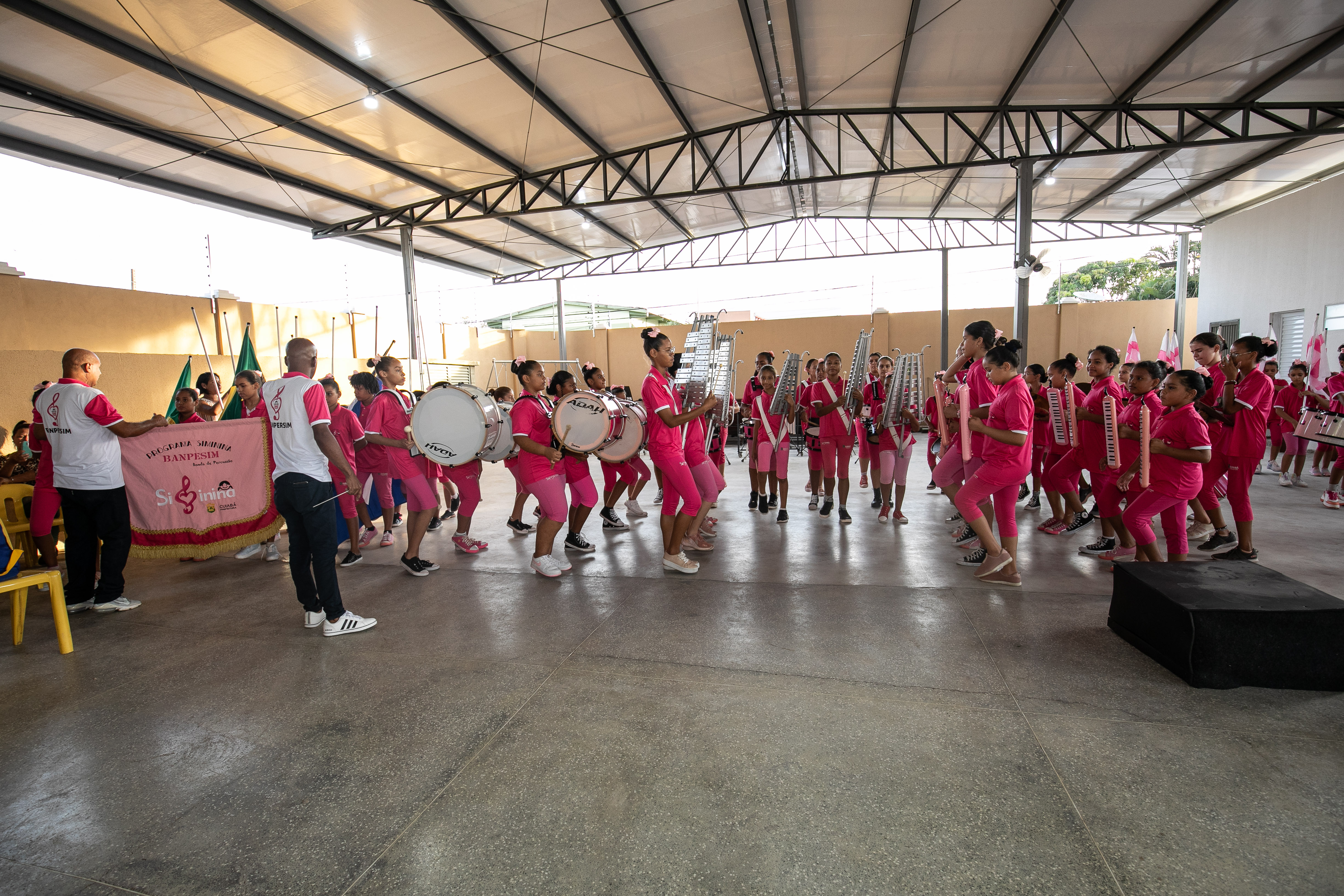 “Graças a Deus a madrinha do programa Siminina, Marcia Pinheiro, que tem um olhar e um carinho por todas as atividades desenvolvidas pela nossa equipe, hoje temos uma fanfarra completa, com instrumentos novos e uniformes, tudo cuidadosamente preparados na cor rosa que tem a cara da nossa primeira-dama”, explica.