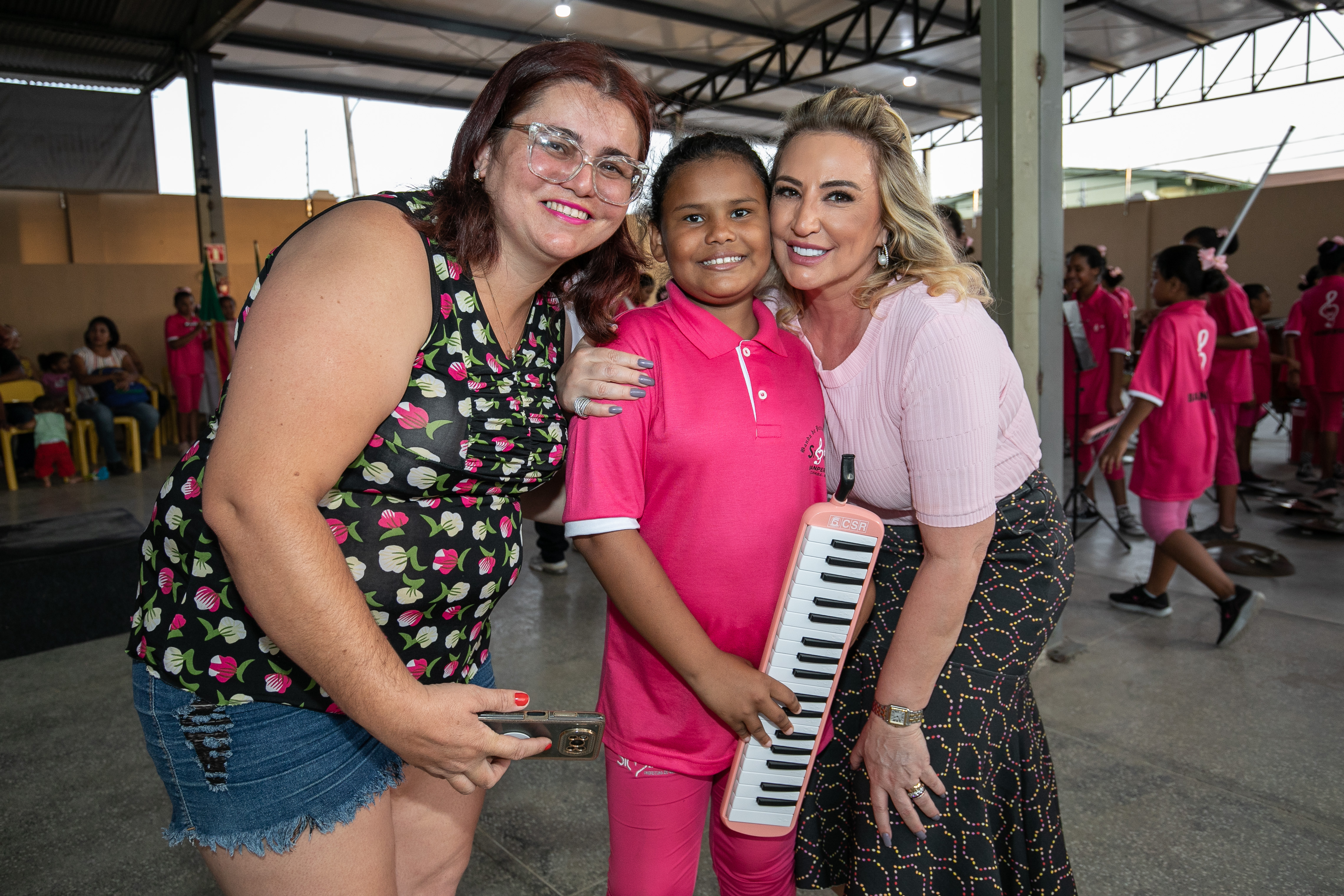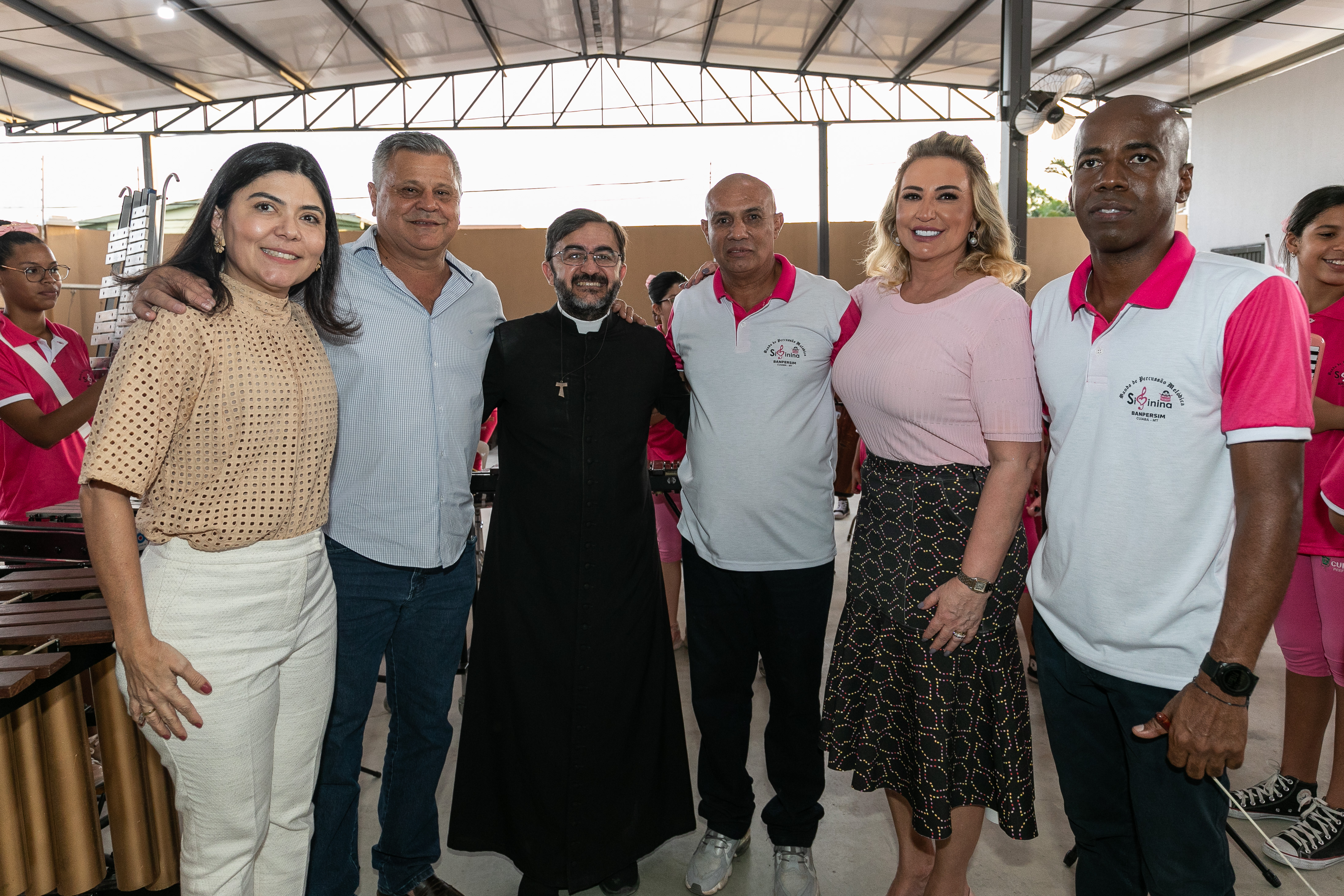 Primeira-dama Marcia Pinheiro e vice-prefeito participam de comemoração aos 5 anos de formação da fanfarra do Programa Siminina