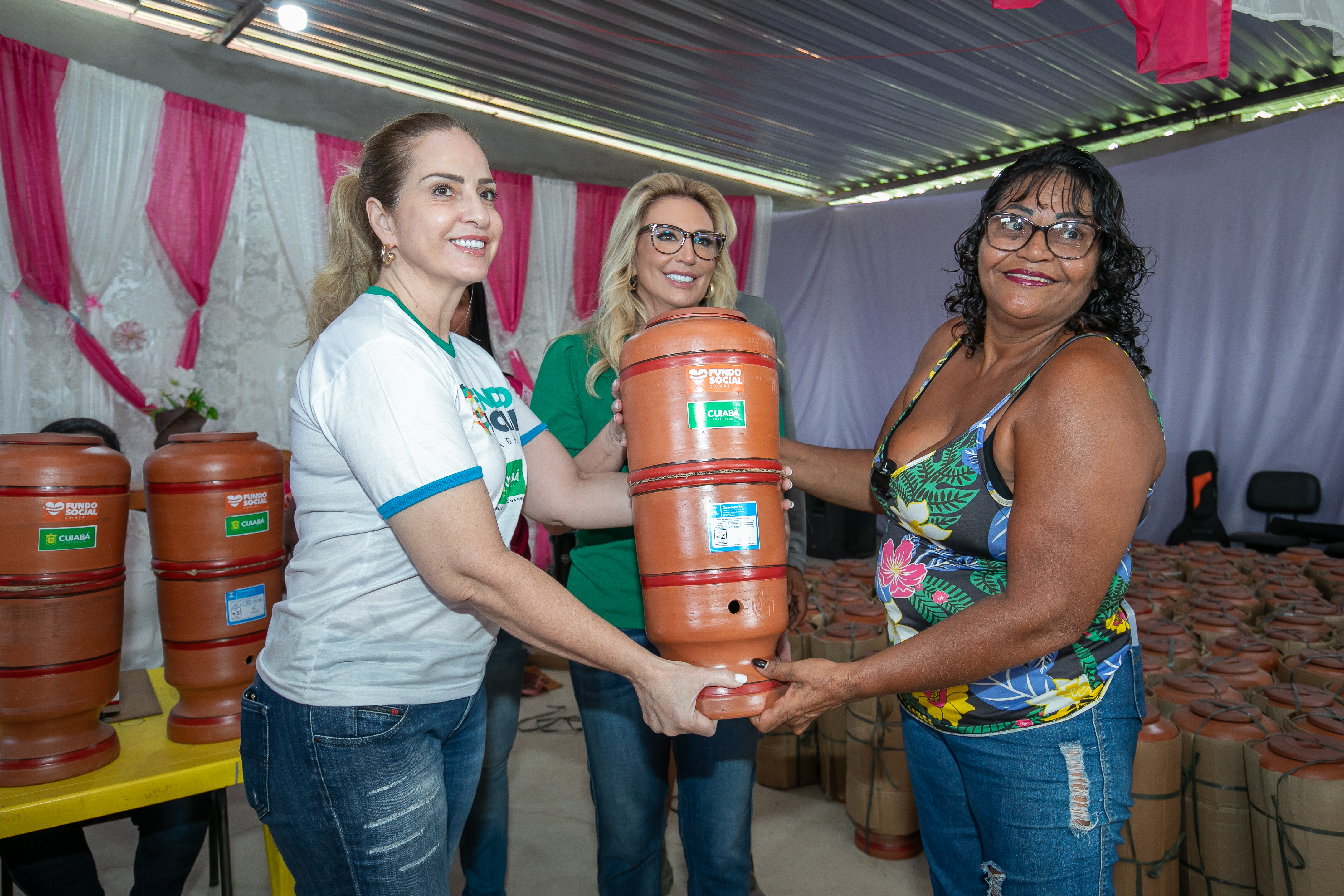 Na tarde desta quinta-feira (28), a primeira-dama de Cuiabá, Márcia Pinheiro, acompanhada da secretária adjunta de Assistência Social, Clausi Barbosa, realizou a entrega de 150 filtros de barro para famílias em situação de vulnerabilidade social, na Comunidade Reserva do Coxipó. A iniciativa faz parte do Programa de Políticas de Assistência Social às Famílias em Situação de Pobreza e Extrema Pobreza, promovido pelo Fundo Social Solidário do Município, criado pela Lei Municipal nº 6.416/2019.