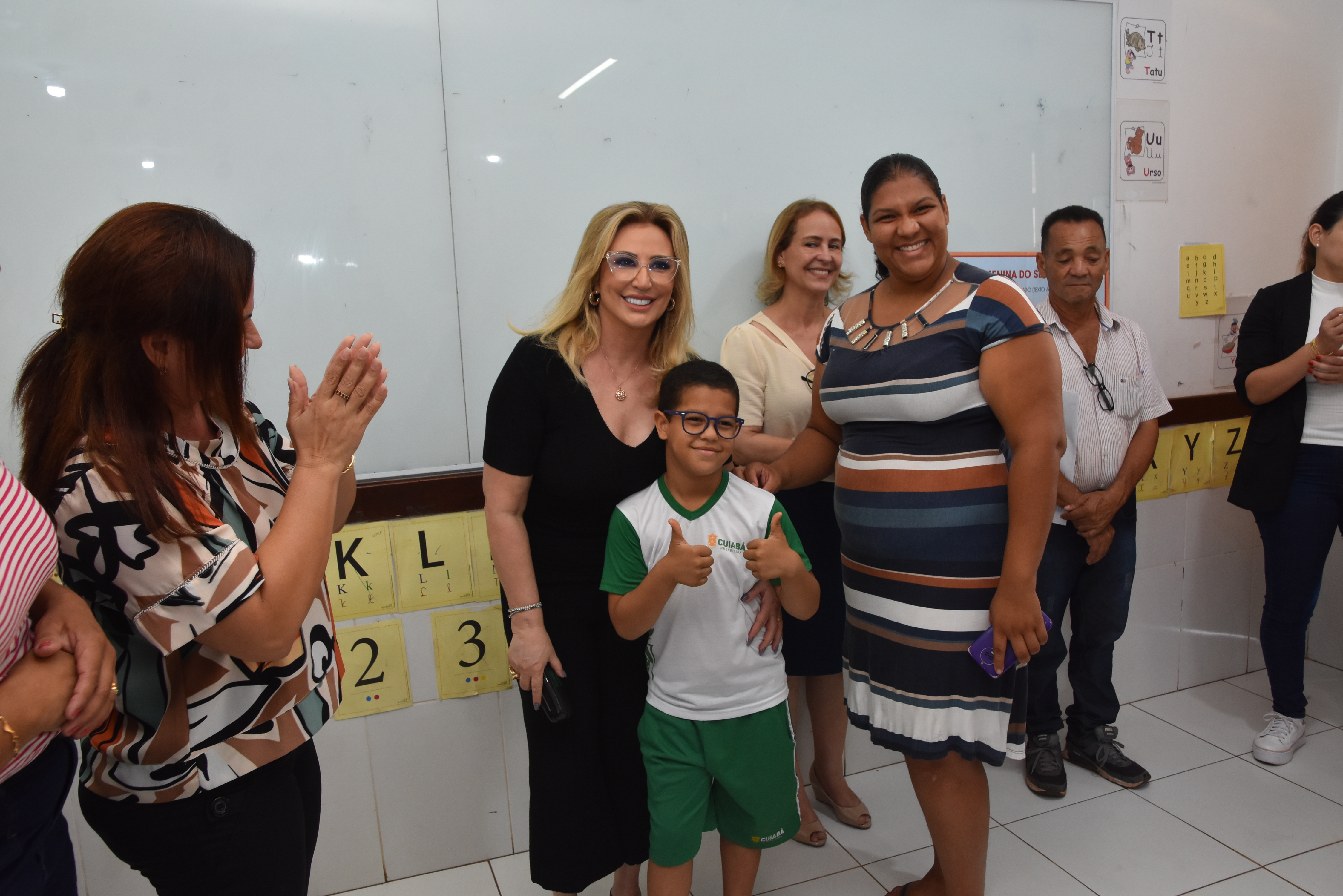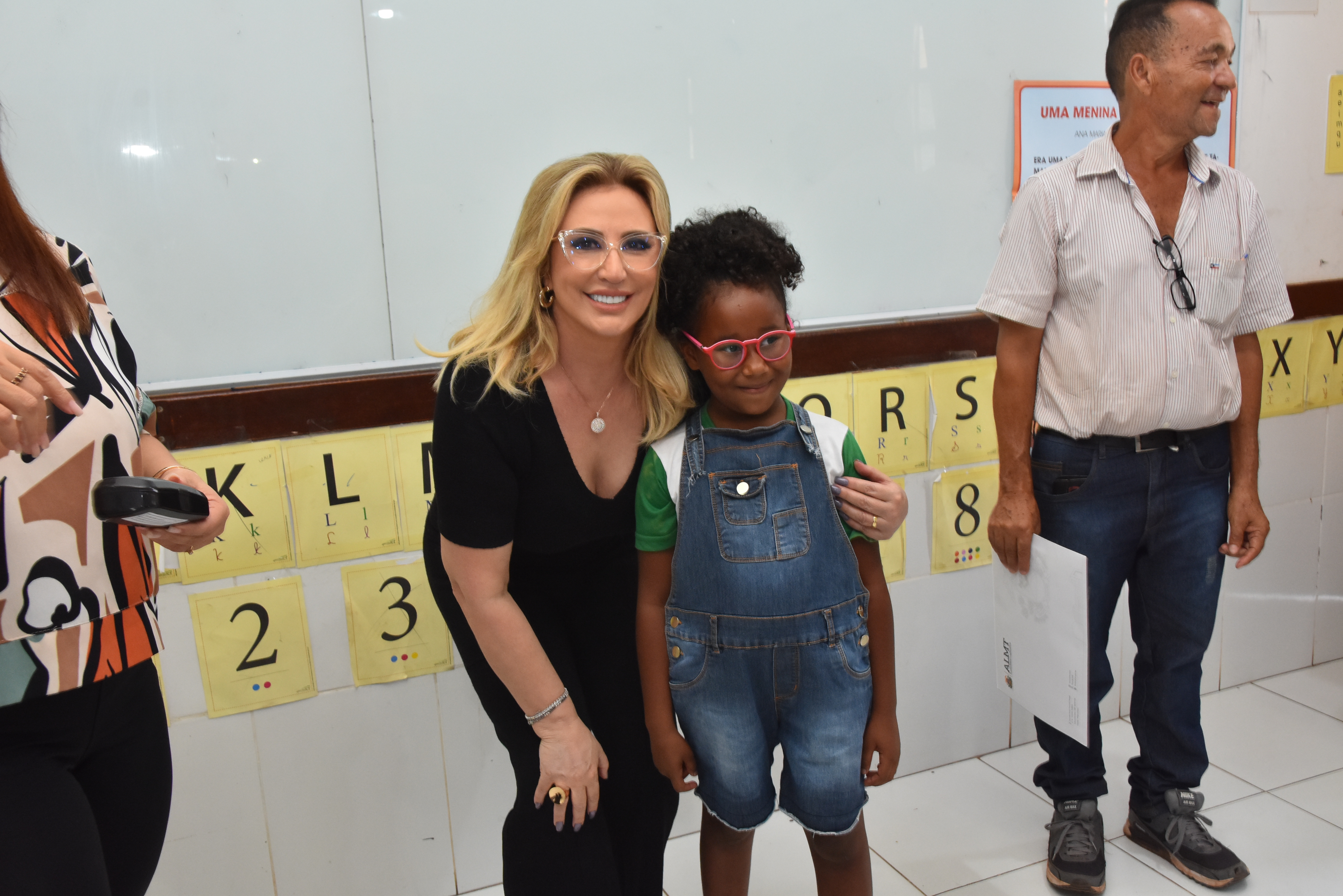 A primeira-dama Márcia Pinheiro entrego, na tarde de quinta-feira (5), 17 óculos do Projeto Enxergar é Humanizar, para estudantes da Escola Municipal de Educação Infantil do Campo (EMEBC) Profª Hilda Caetano de Oliveira Leite, localizada no Distrito do Sucuri. Criado em 2018 o Projeto tornou-se uma ação permanente da Secretaria Municipal de Educação, com impacto positivo no desenvolvimento, na qualidade de vida e no bem-estar social dos estudantes atendidos na rede pública municipal de educação.
