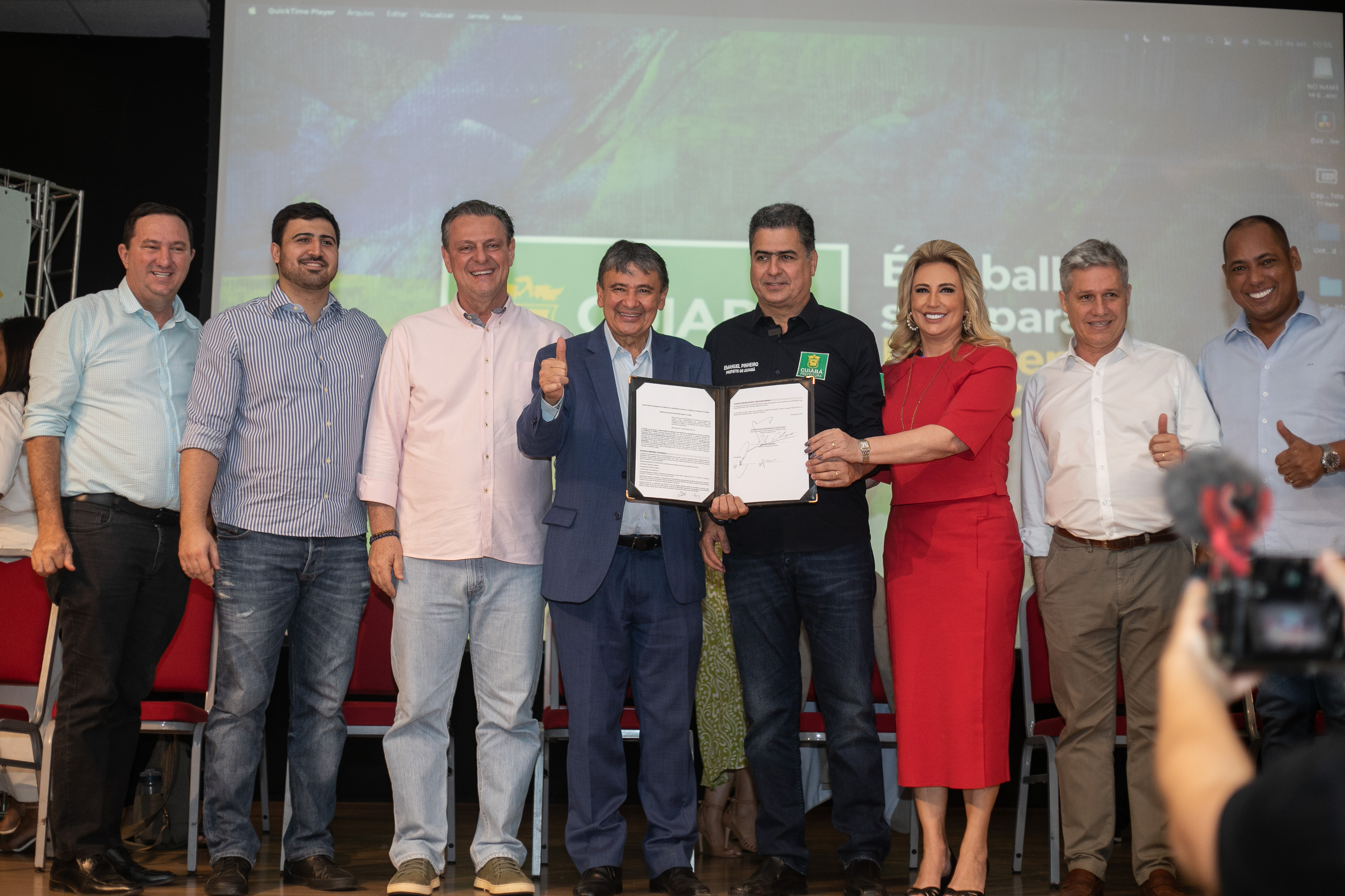 A primeira-dama Márcia Pinheiro, acompanhada pelo prefeito Emanuel Pinheiro e o ministro Wellington Dias, assinou os primeiros convênios, nesta sexta-feira (22), no auditório da Câmara de Dirigente Lojista (CDL), do Programa Prato Cheio.