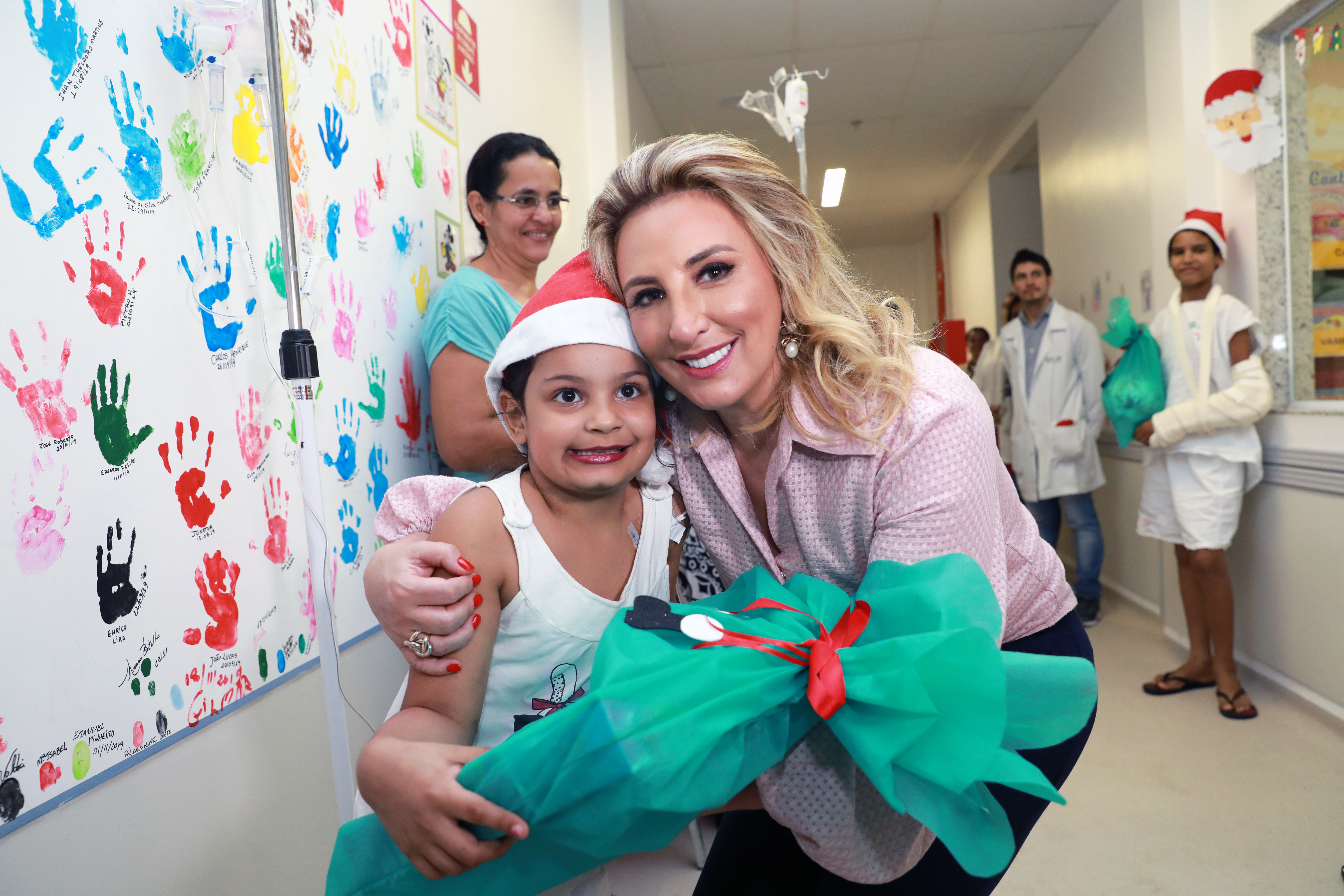 A primeira-dama Márcia Pinheiro realizou, juntamente com os voluntários do Núcleo de Apoio à Primeira-dama e o apoio institucional de profissionais da Secretaria Municipal de Saúde, a entrega de brinquedos de Natal para crianças internadas na ala pediátrica do Hospital Municipal de Cuiabá (HMC).