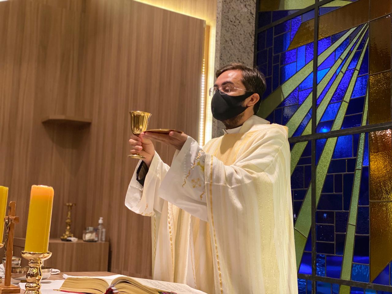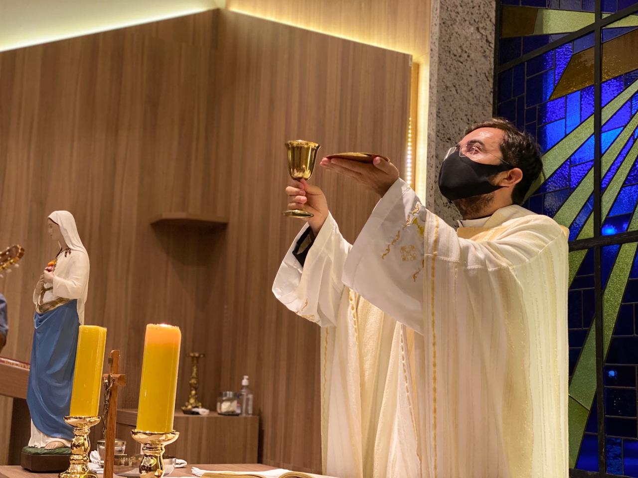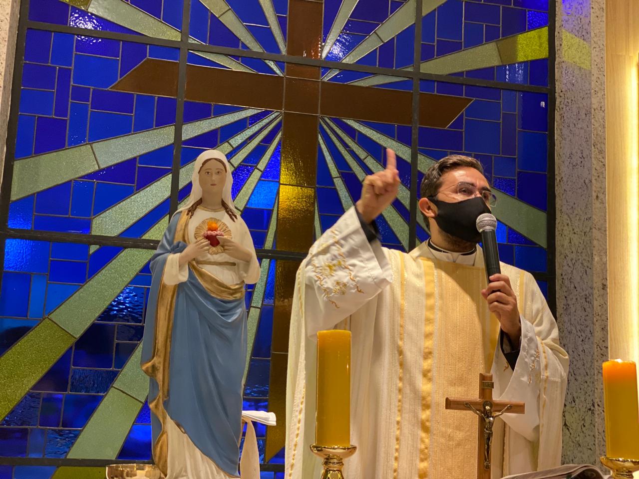 "Jesus quer tocar no coração dos feridos, mas também o de vocês heróis da linha de frente para que possam ter forças para tocar as feridas e sobretudo o coração dos que estão sob grande enfermo”, diz trecho da palavra proferida pelo padre.
