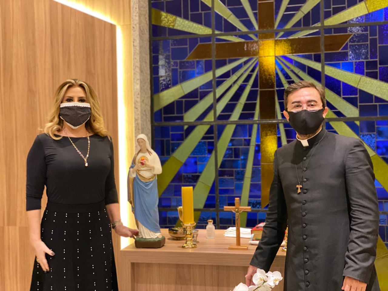 A primeira-dama Márcia Pinheiro promoveu uma missa, nesta sexta-feira (26), na Capela Misericórdia, do Hospital Municipal de Cuiaba (HMC), em prol das 145 vítimas do novo coronavírus (COVID-19) registradas em
