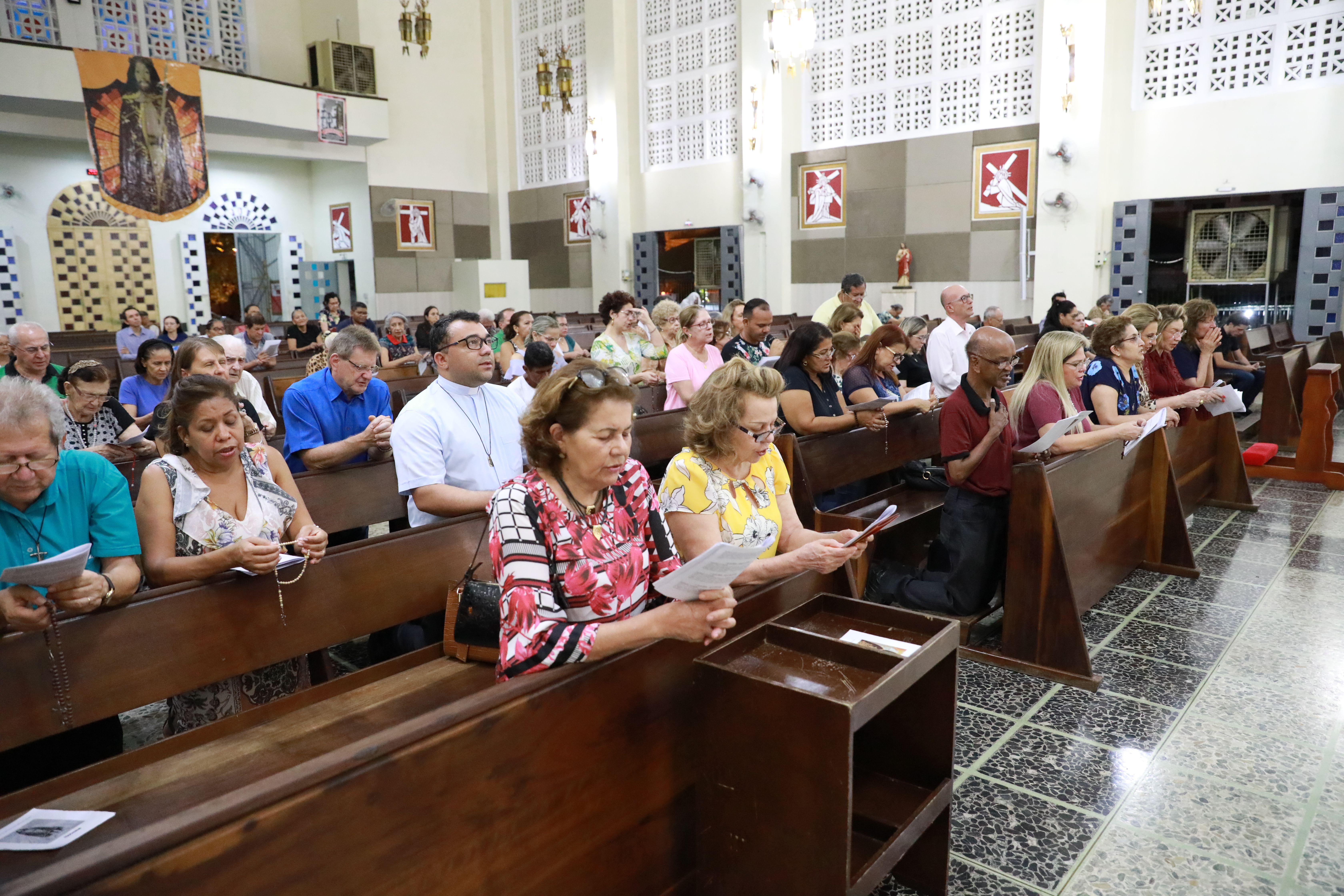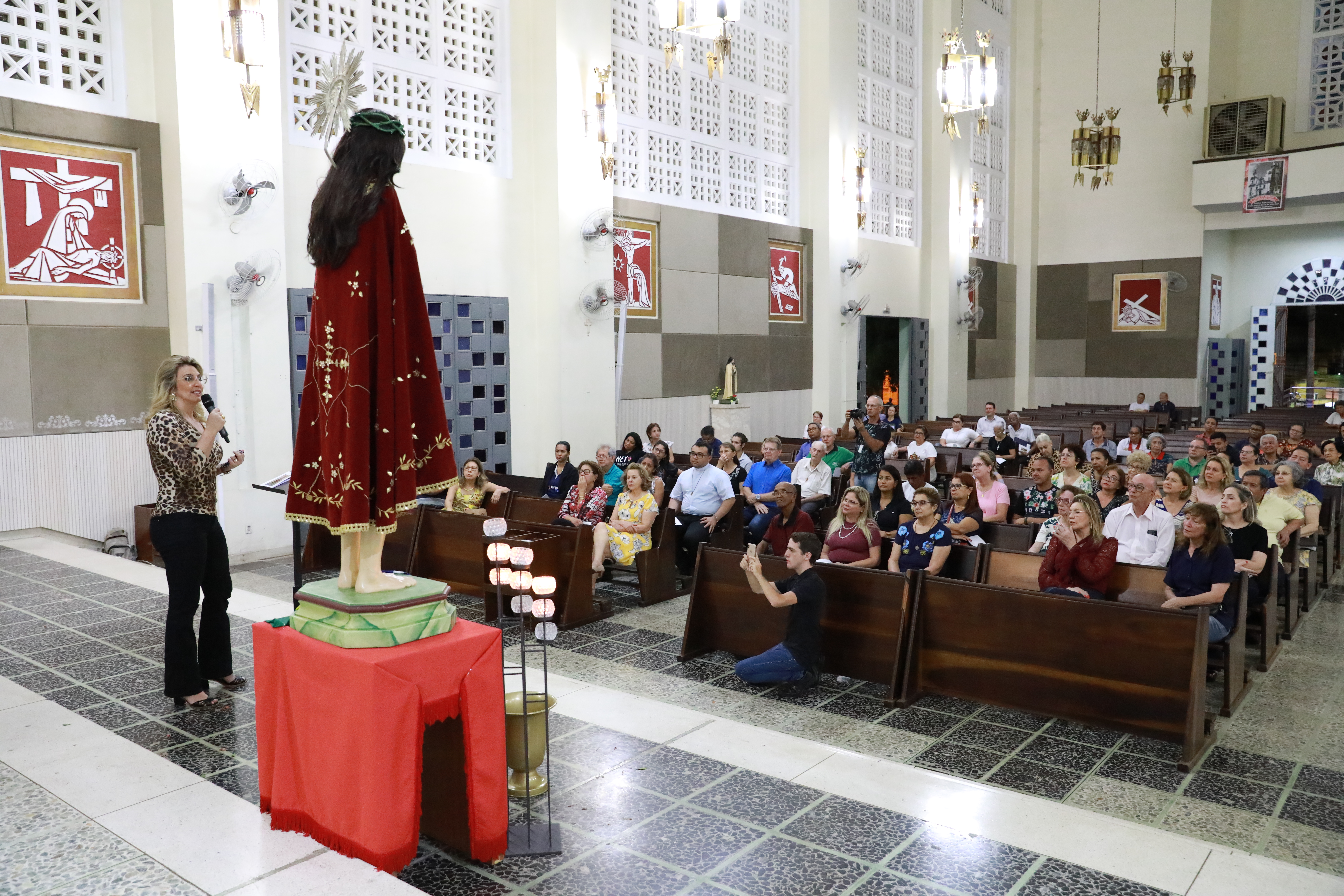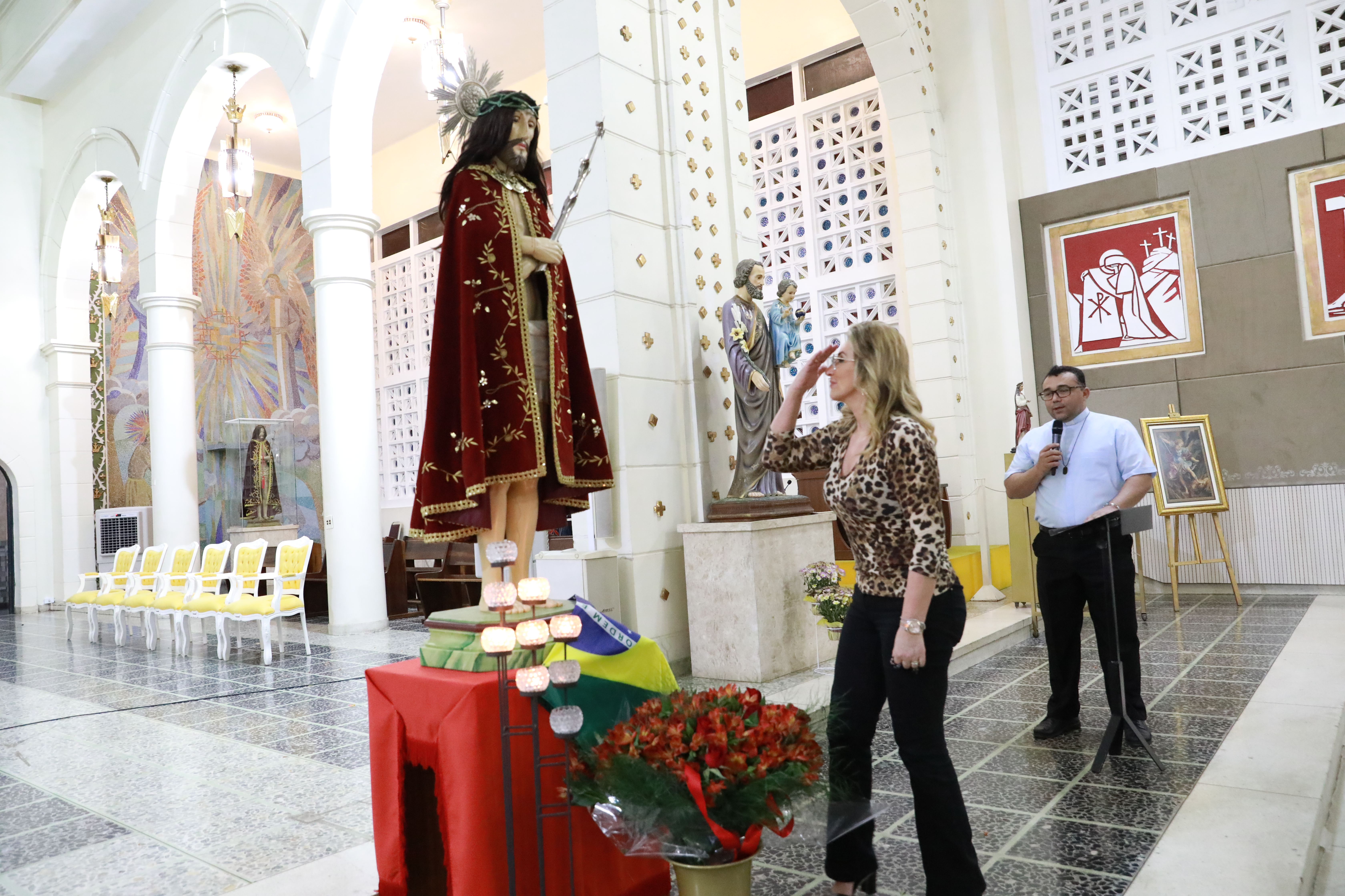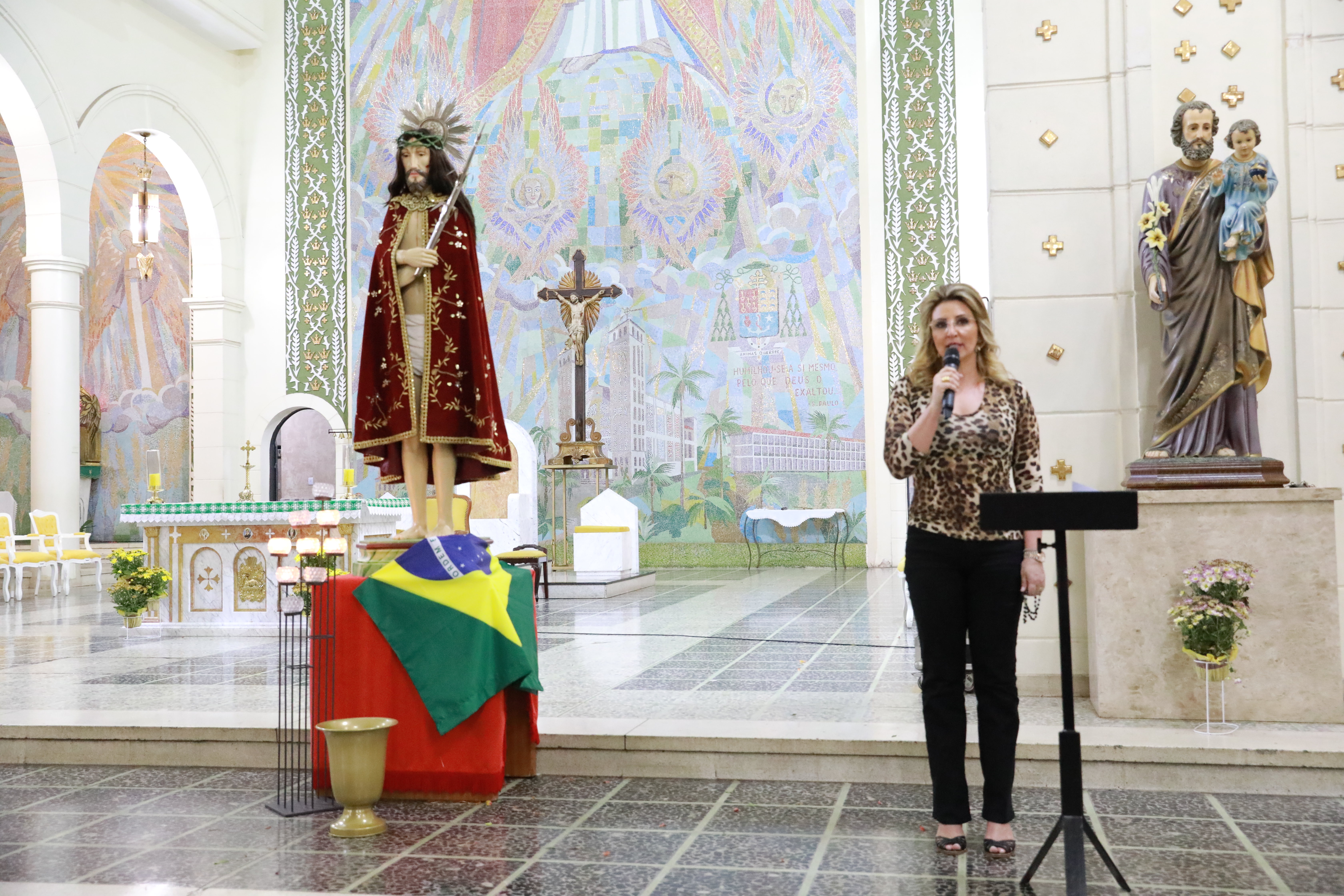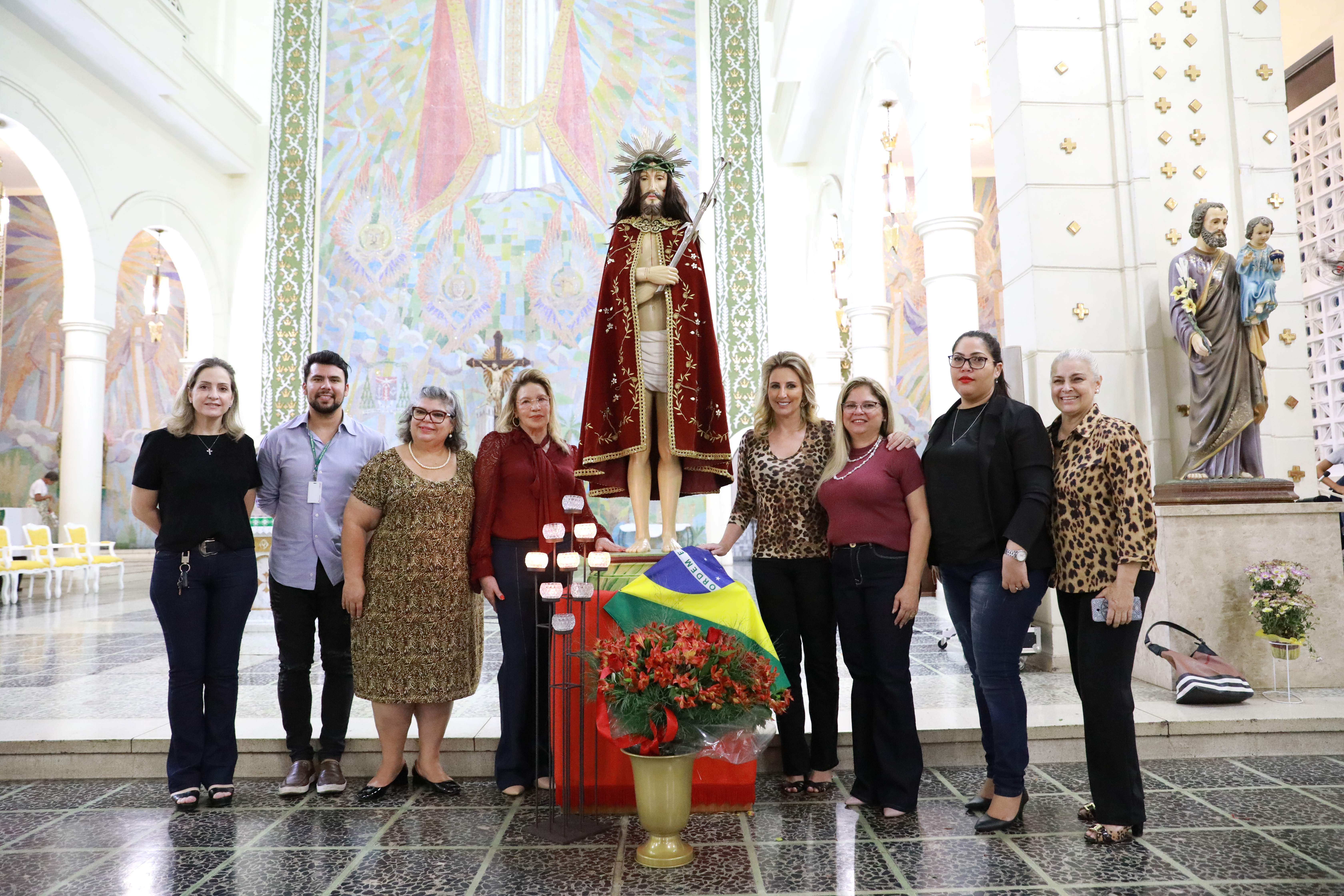 A primeira-dama Márcia Pinheiro participou do oitavo dia da Novena do Senhor Bom Jesus de Cuiabá, realizada nesta quarta-feira (25), na Catedral Metropolitana. A festividade que busca o resgate cultural e religioso da origem da própria Capital em alusão a imagem do Senhor Bom Jesus de Cuiabá tem o apoio da Prefeitura de Cuiabá.