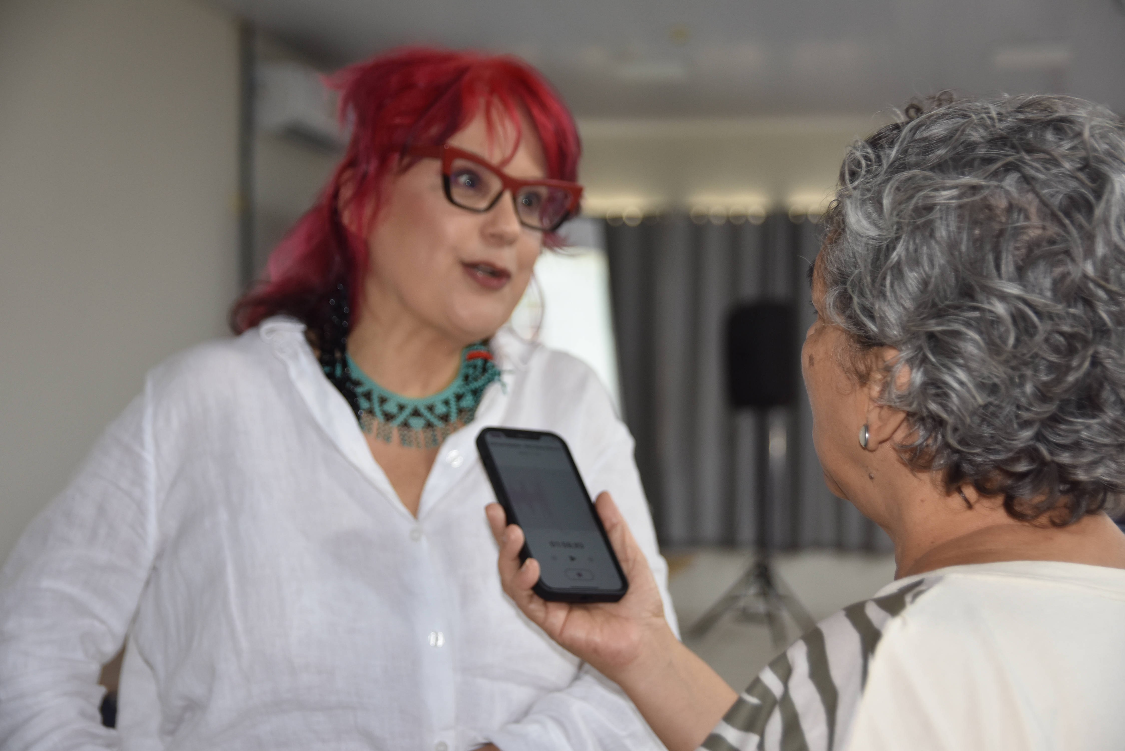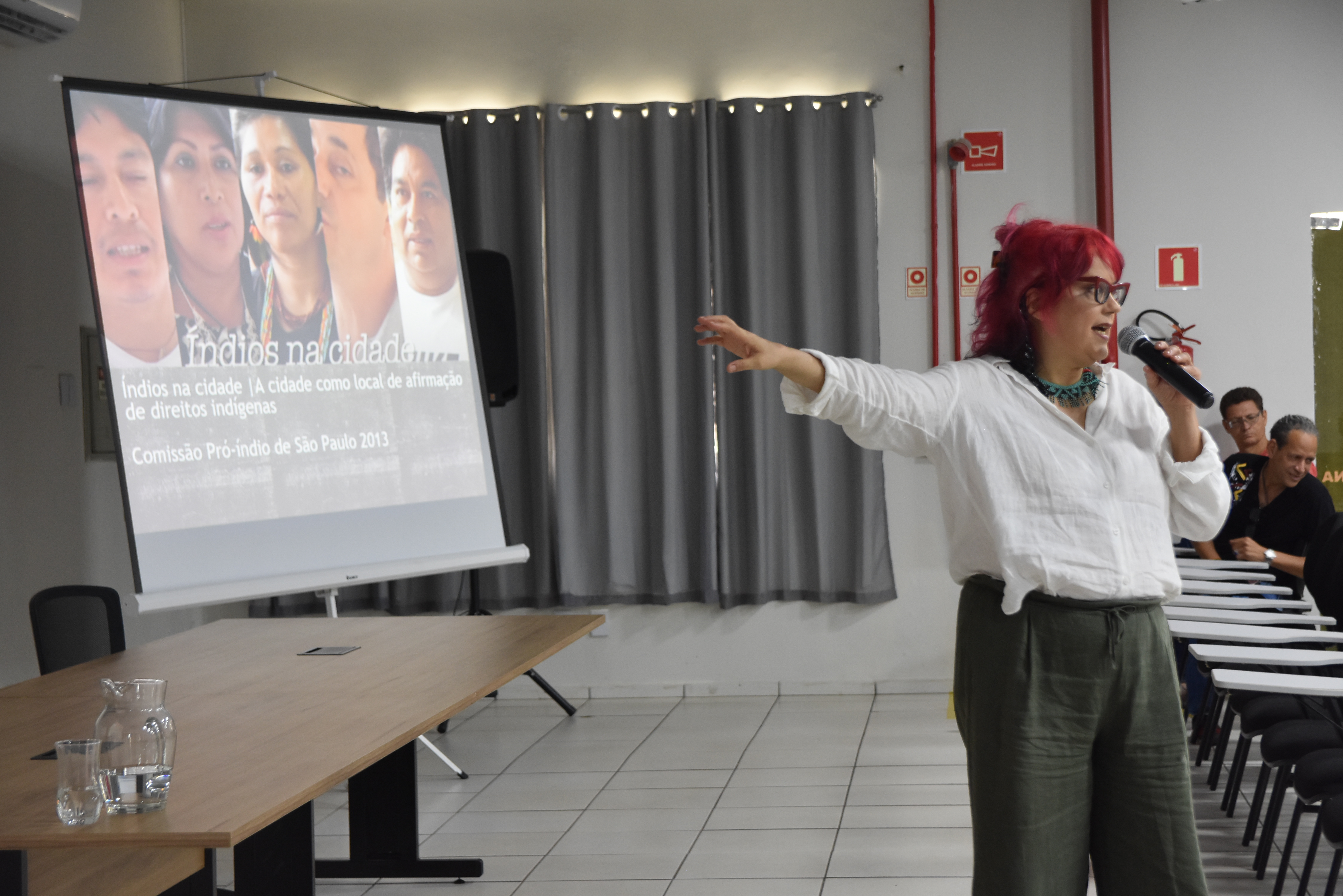 "Há uma grande dificuldade em incluir esses repertório e conteúdo na sala de aula. Não é só acolher a criança indígena, mas trabalhar artisticamente, historicamente, contextualmente esses vários universos. São 305 povos, mais de 250 línguas em todo o país, imagina essa diversidade. Infelizmente na nossa formação não tivemos isso então, acho importante como professores e educadores, que possamos buscar esse conhecimento. Espero que essa oficina seja um estimulo para os profissionais”, disse Magda Pucci.