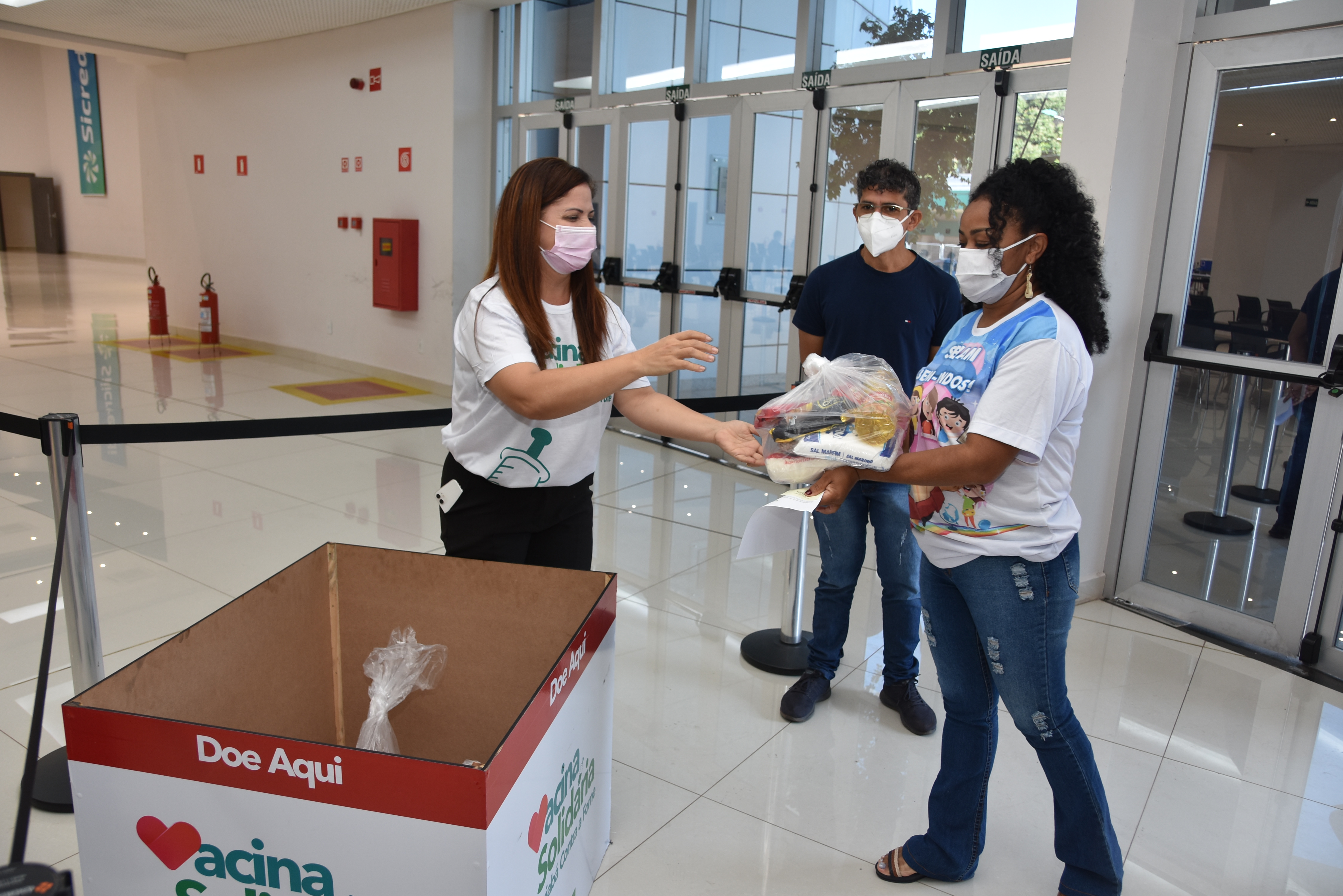 Na manhã desta sexta-feira (4), durante o lançamento da imunização dos profissionais da Educação, no Senai localizado no bairro do Porto, os Técnicos de Desenvolvimento Infantil (TDI), que abriram de forma simbólica mais essa etapa de vacinação, depositaram produtos para a Campanha Vacina Solidária.