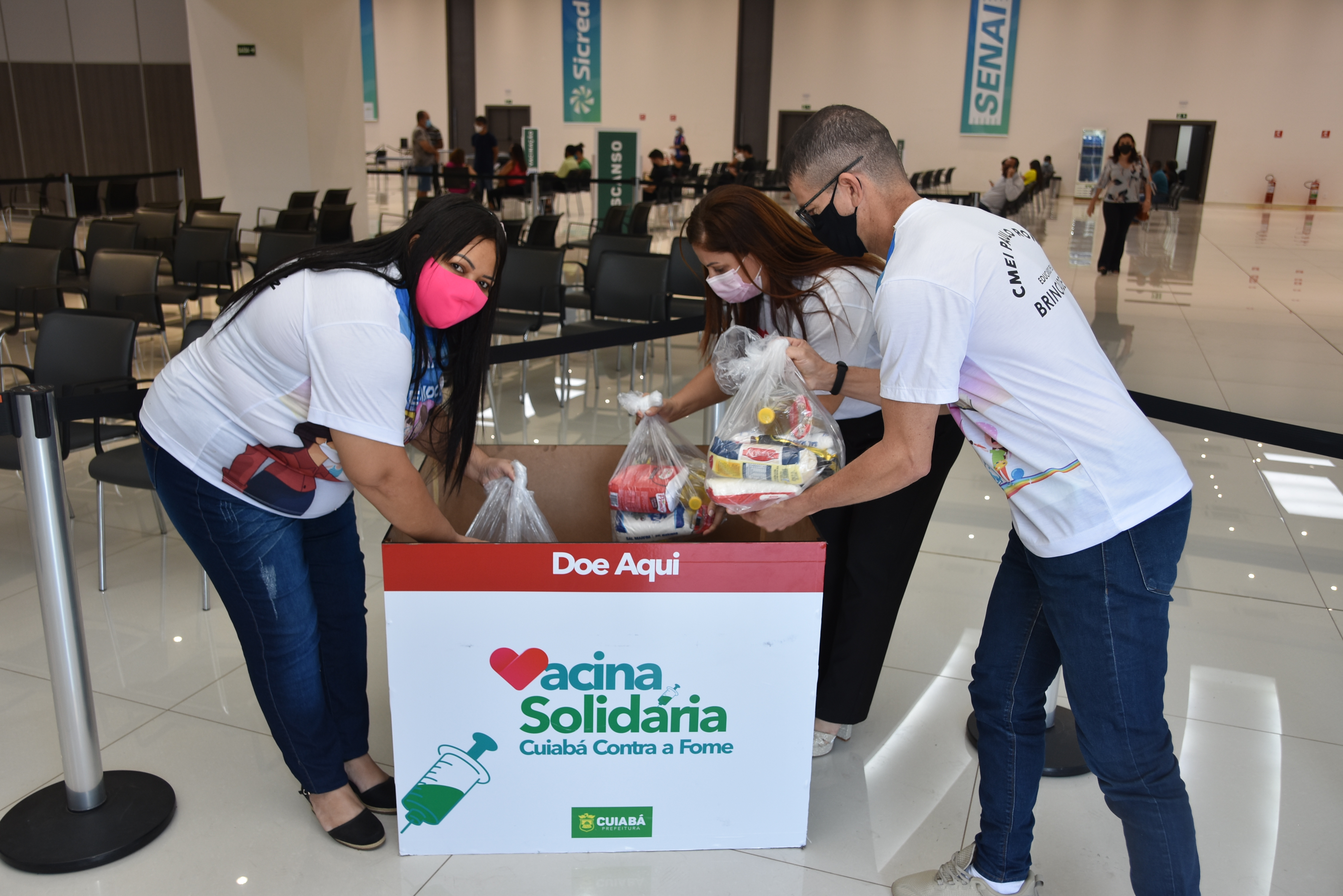 A secretária adjunta de Educação, Debora Marque Vilar falou sobre a campanha. "Estamos convidando todos os profissionais da Educação para se unirem a nós nesse projeto tão bonito que é o Vacina Solidária. Ao irem se vacinar aqueles que puderem, levem um alimento não perecível para que possamos contribuir com as familias que estão passando necessidade neste momento, principalmente por conta da pandemia. É um convite para que juntos possamos possamosalém da imunização, também ajudar as familias de Cuiabá", disse a secretária adjunt, Debora Marques Vilar.