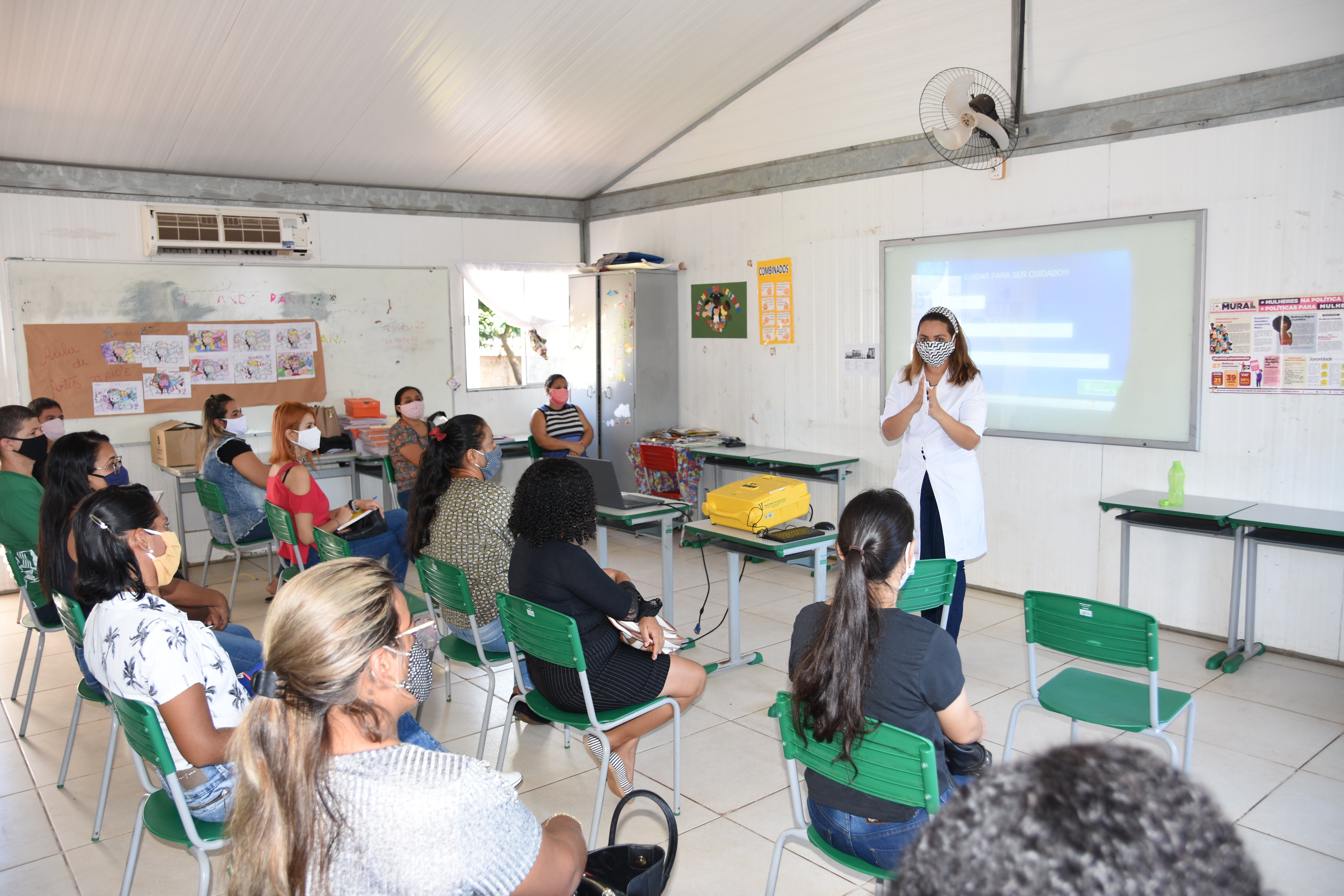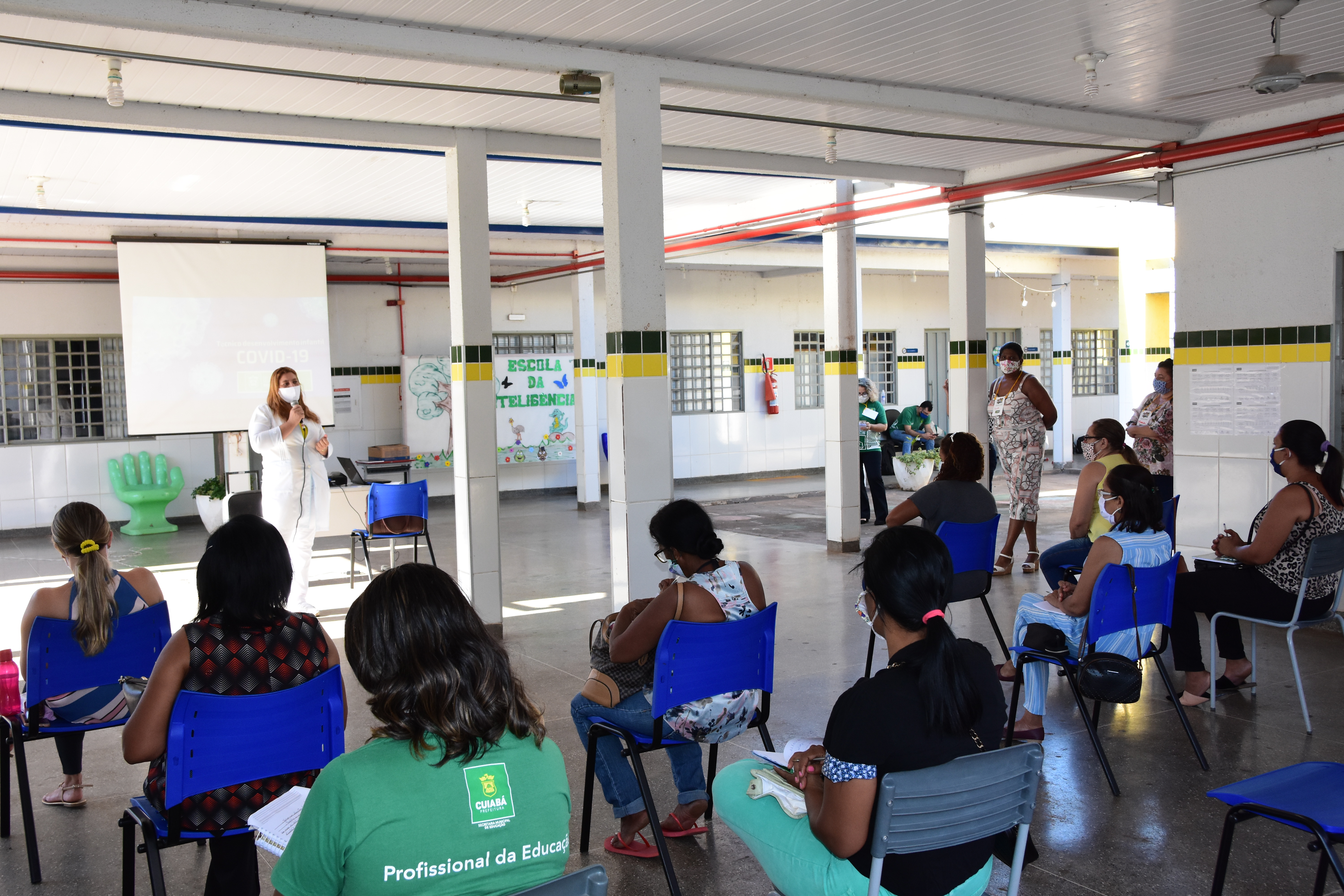 Tanto nas reuniões realizadas com os gestores escolares como na formação, foram adotados todos os cuidados recomendados pelas autoridades médicas e sanitárias para evitar o contágio pelo coronavírus, como a manutenção do distanciamento entre as pessoas e o uso de máscaras, além do álcool em gel.