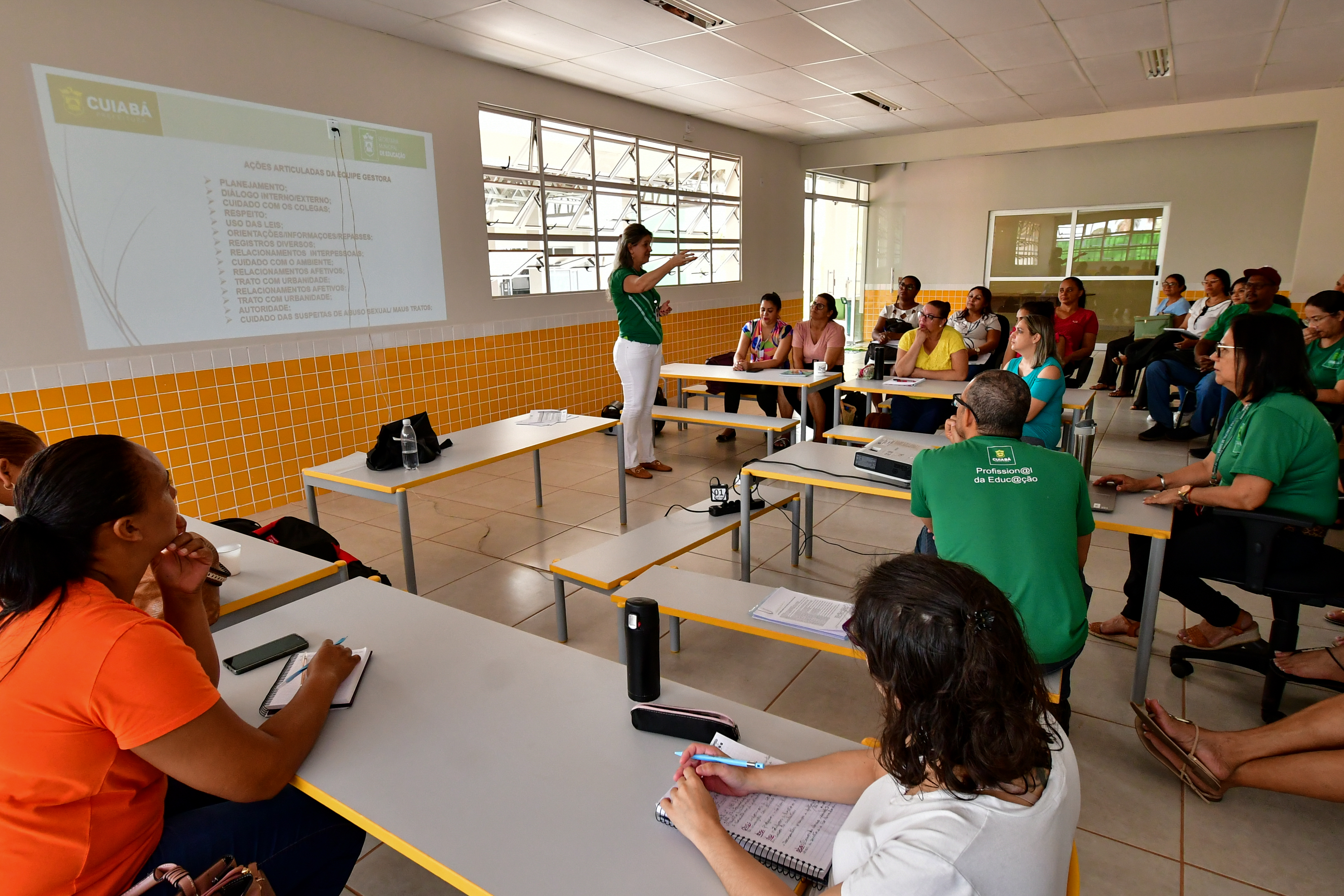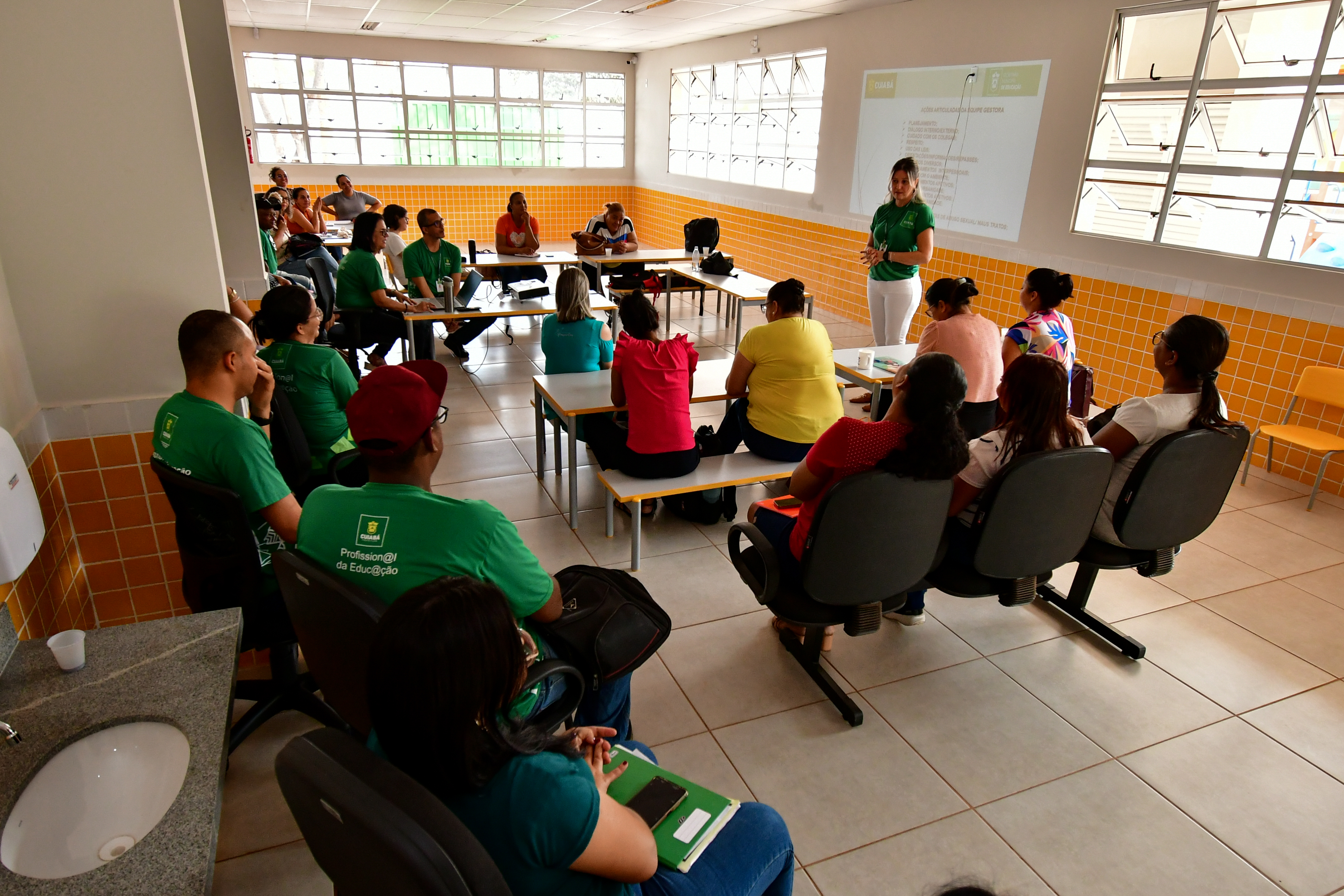 Profissionais da educação que irão atuar no novo Centro Educacional Infantil Cuiabano (CEIC) Clóvis Dias Ferreira, localizado no Loteamento Voluntários da Pátria, na região do bairro Pedra 90, participam até o próximo dia 23, de um ciclo de formação visando o início das atividades educacionais, na semana que vem. As obras da unidade foram entregues pela gestão Emanuel Pinheiro no último mês de maio. O maior Centro Educacional Infantil Cuiabano, modelo criado pela atual administração, da rede pública municipal de educação, vai atender 176 crianças do Maternal, Jardim I e II, na faixa etária de 1 ano e 1 mês a 3 anos e 11 meses de idade.
