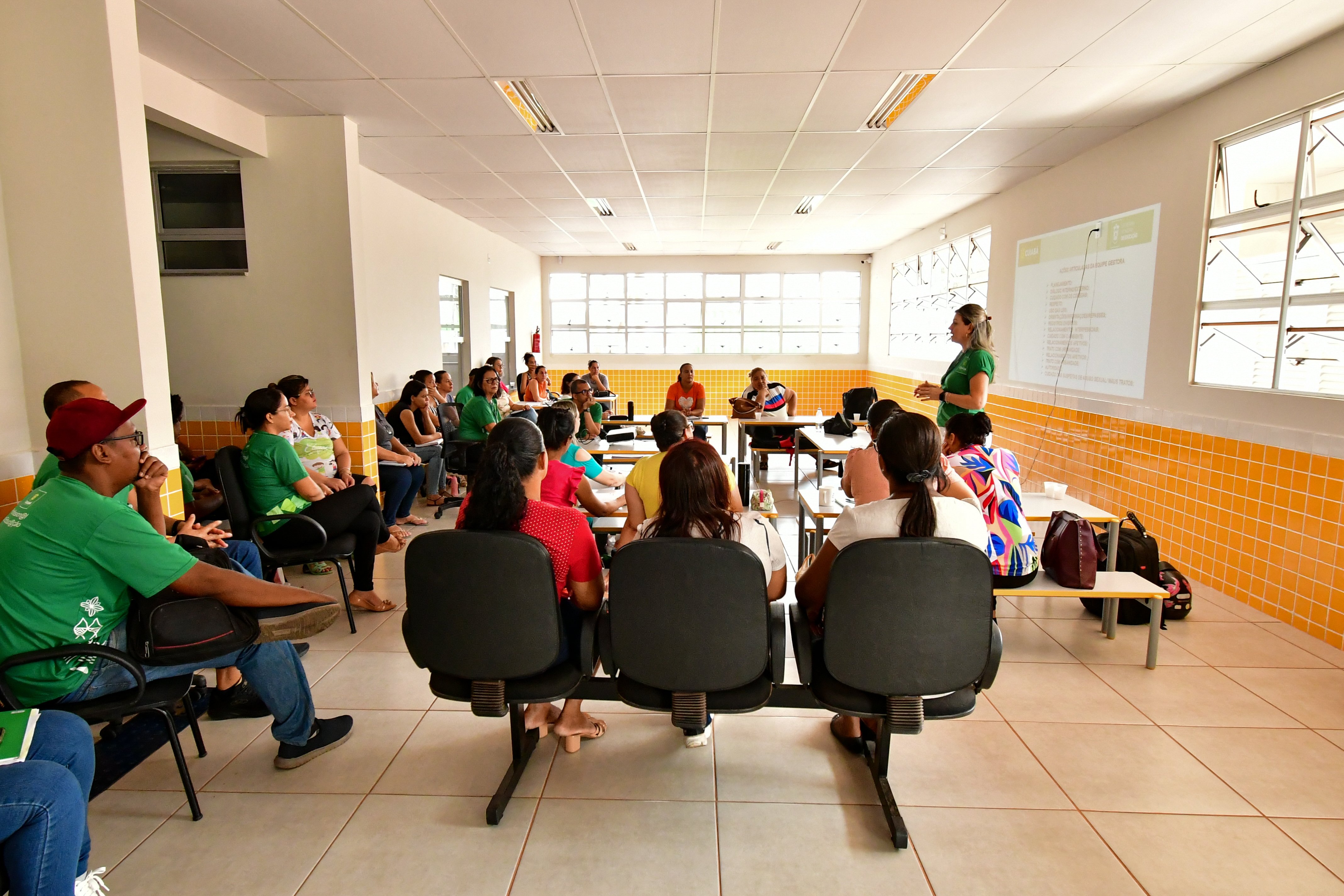 Na próxima segunda-feira (28), começam as atividades escolares no novo Centro Educacional. No ciclo de formação são abordados temas como Direitos e Deveres dos Profissionais da Educação, Código de Ética dos Agentes Públicos, Estatuto da Criança e do Adolescente, Práticas de Inclusão e Flexibilização Curricular na Educação Infantil, Alimentação Escolar, Uso de Equipamentos de Proteção Individual (EPI), Rotina Universalizada e programas e projetos desenvolvidos pelas unidades como o Programa Quem Falta, Faz Falta voltado a frequência e permanência da criança na Educação Infantil, Rede de Prevenção às Situações de abuso e violência contra a criança, entre outros.