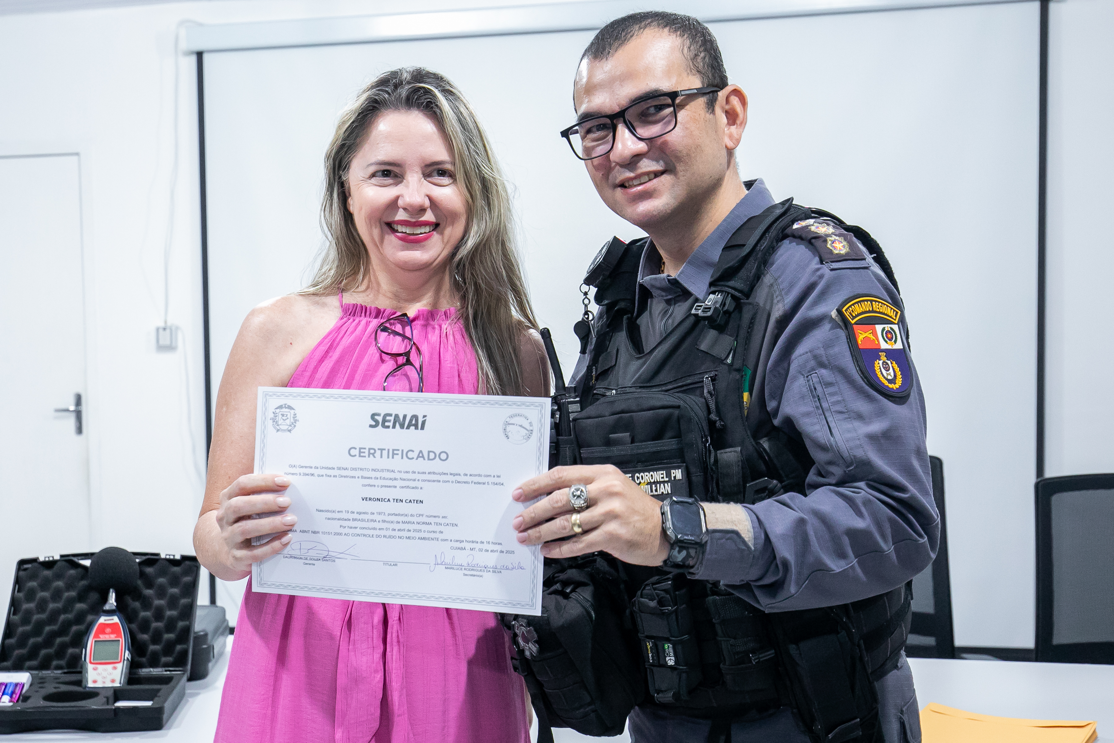 A Prefeitura de Cuiabá, por meio da Secretaria Municipal de Ordem Pública (Sorp), entregou 30 Certificados de Técnico em Aferição de Ruídos e Poluição Sonora a profissionais que participaram da capacitação técnica para operar o aparelho sonômetro e também para elaboração de relatórios ambientais.