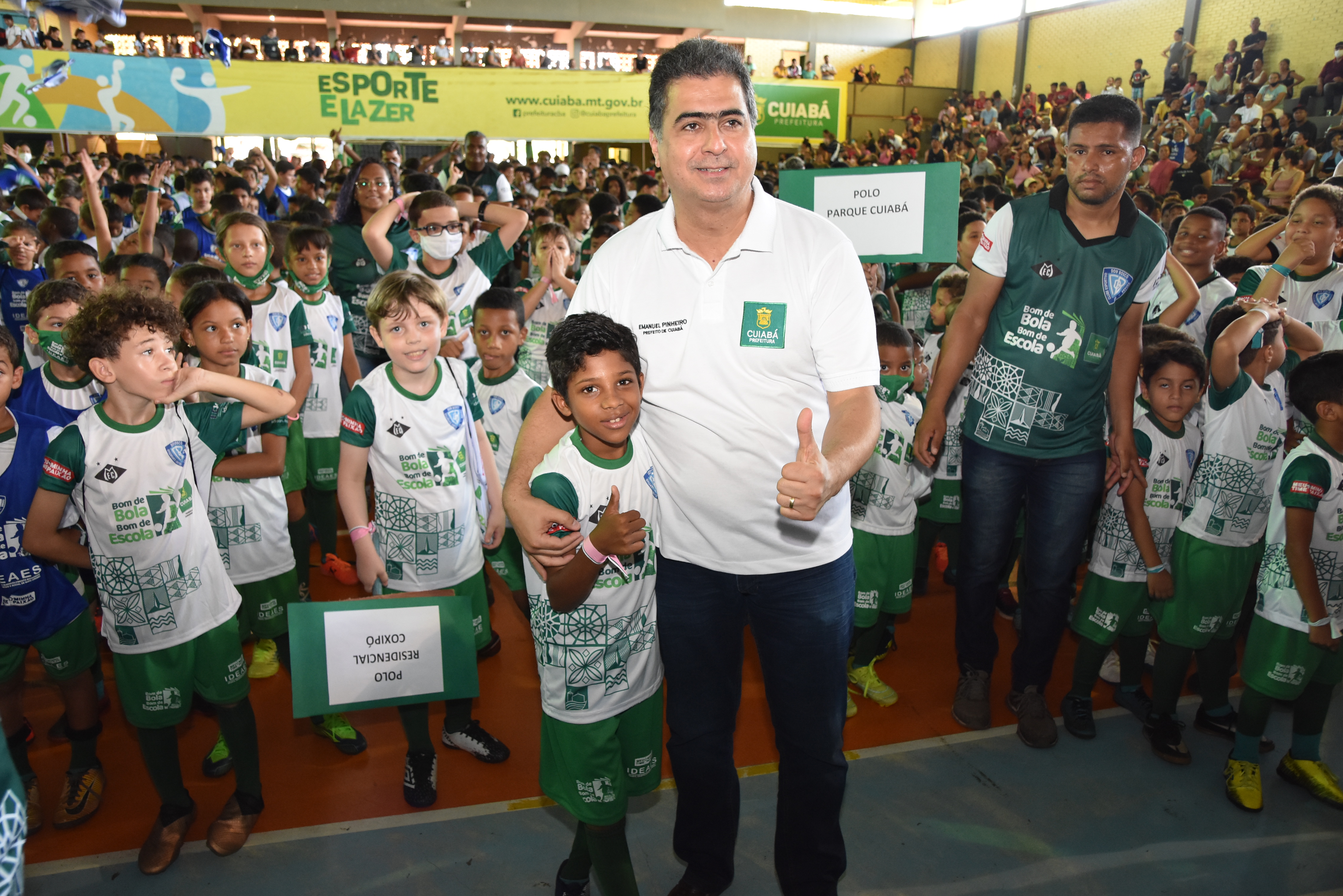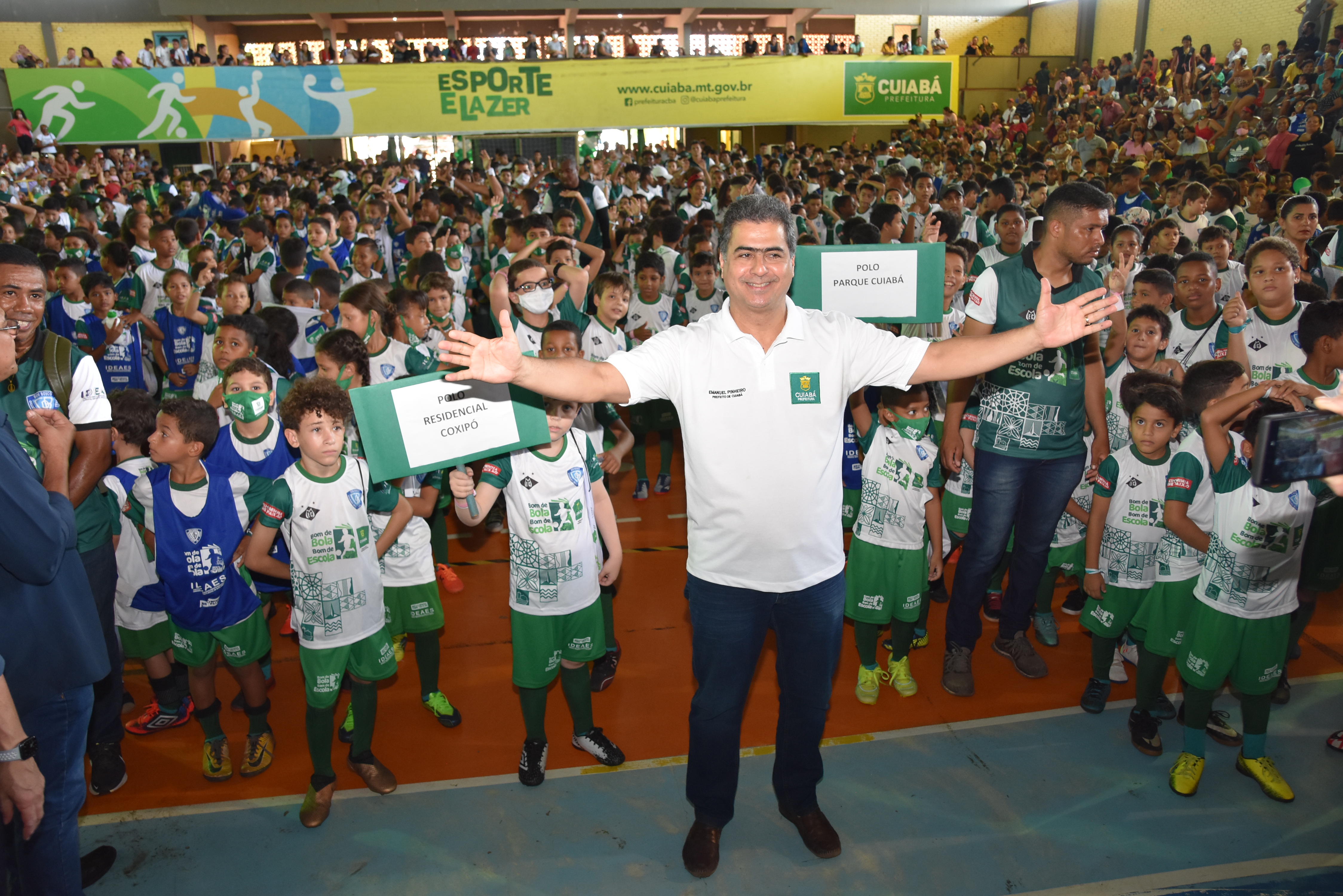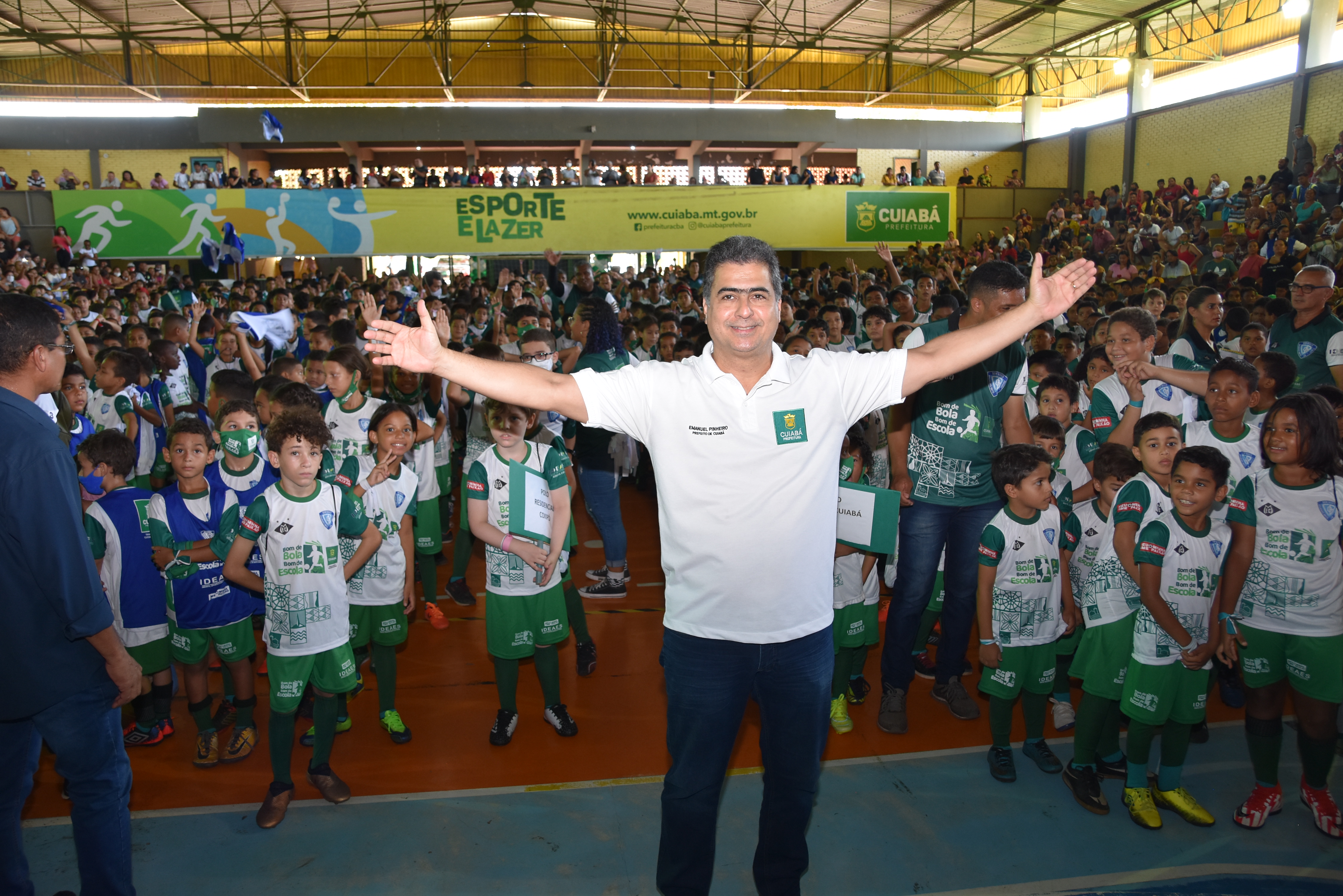 Com cerca de 2.400 estudantes inscritos, o Programa Bom de Bola Bom de Escola iniciou suas atividades em 2022, no último dia 24. Considerado uma das maiores ferramentas de inclusão social da gestão municipal, com apoio à educação, integração familiar e lazer, além de proporcionar mudanças de hábitos saudáveis, o programa foi oficialmente lançado pelo prefeito Emanuel Pinheiro no dia 8 de abril, durante as comemorações dos 303 anos de Cuiabá. Uma grande festa no Ginásio do Complexo Dom Aquino reuniu estudantes, familiares e convidados. Cerca de 1500 crianças compareceram ao evento.