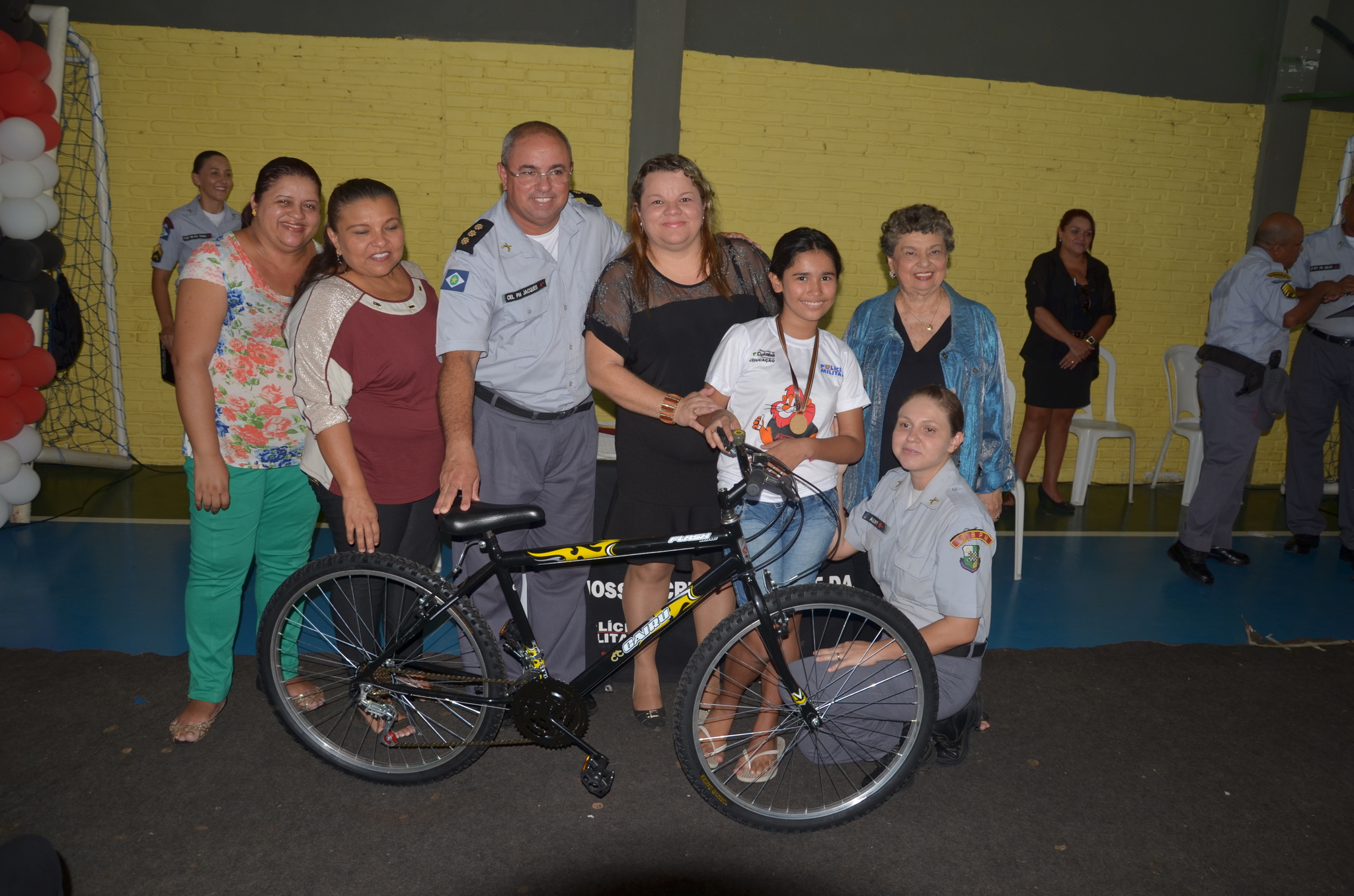 Os alunos também participaram de um concurso de redação, no qual relataram o que aprenderam com o Proerd. Os alunos que tiveram os três melhores textos foram premiados com medalha e uma bicicleta cada.