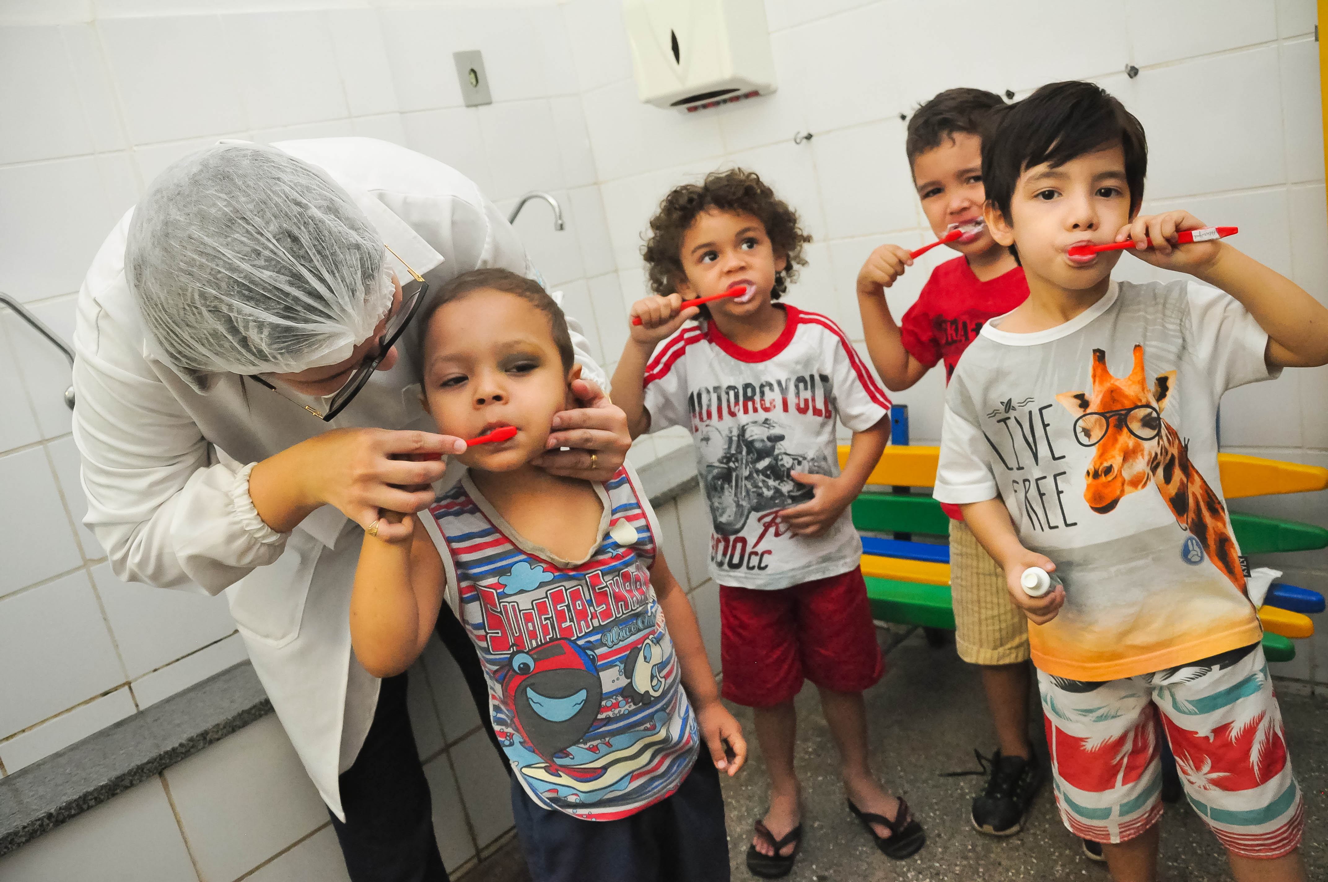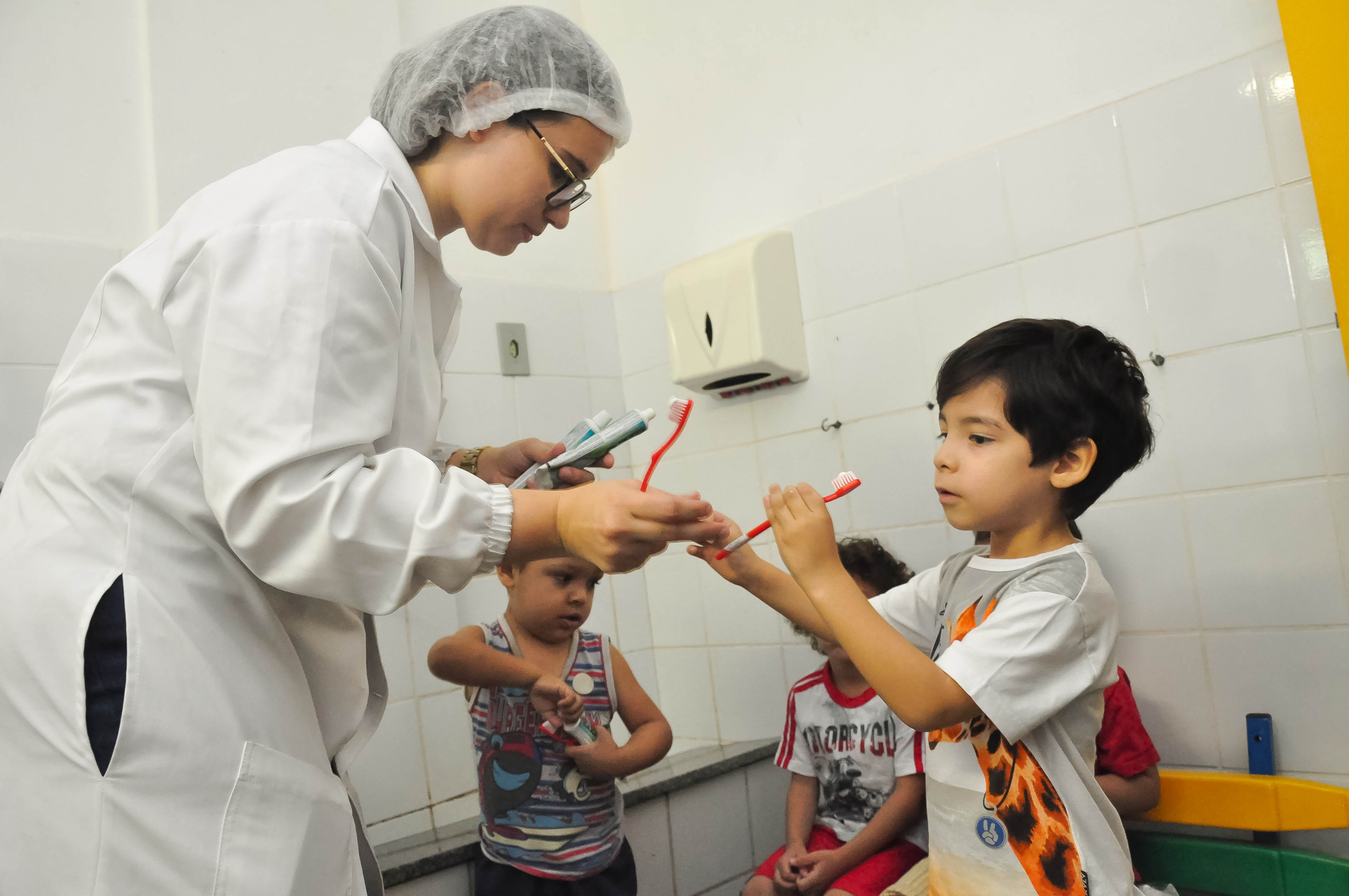 O Programa Odontológico 'Crescer Sorrindo’ realizou nesta segunda-feira (28) uma ‘escovação assistida’ para orientar os educadores e os 240 alunos do Centro Municipal de Educação Infantil (CMEI) Coronel José Meirelles, do bairro Areão, sobre a correta higienização da boca, visando à promoção de hábitos saudáveis, atenção à saúde e a prevenção de doenças e agravos bucais.