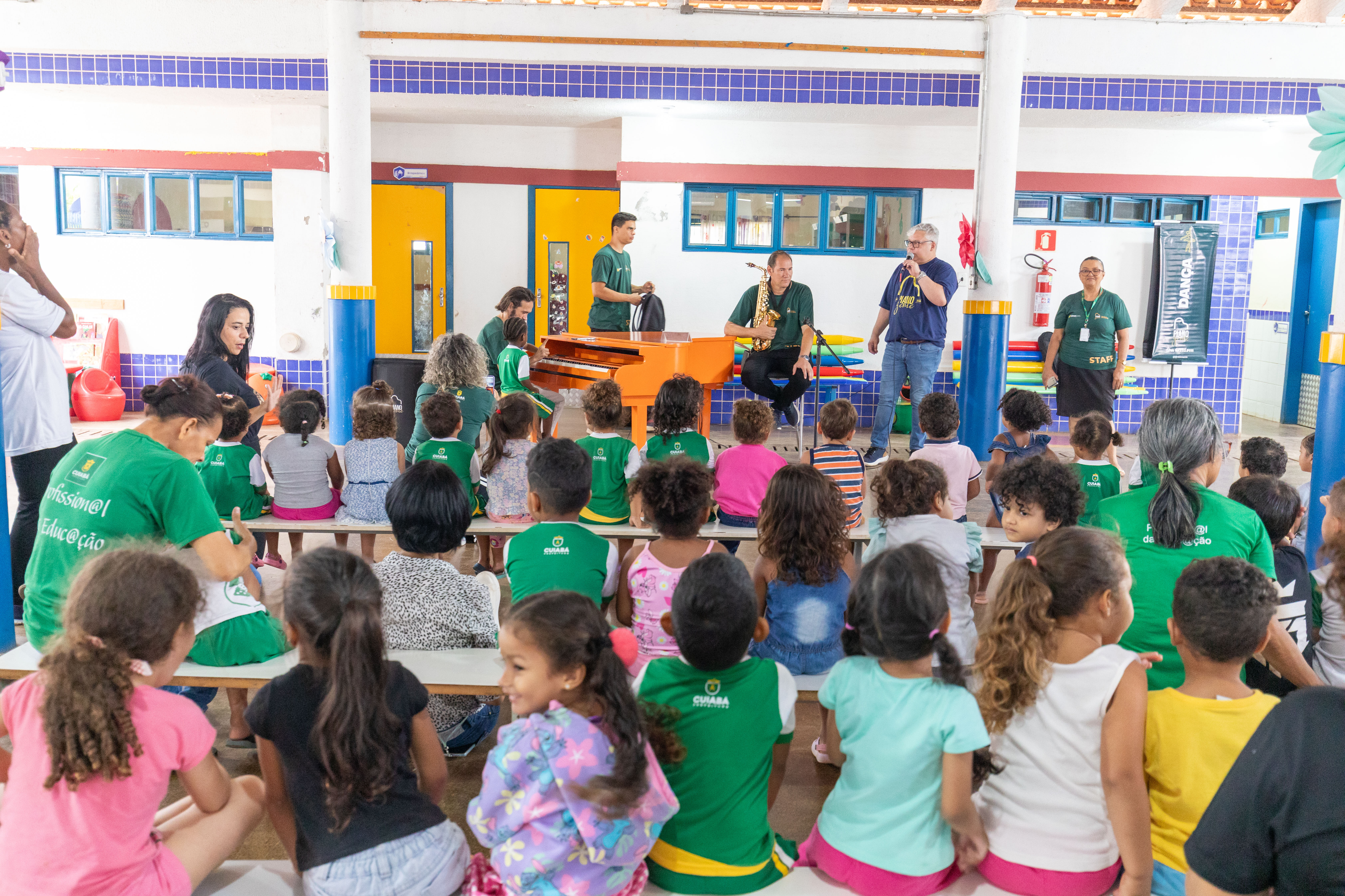 Programa Piano Gente encanta crianças em escola de Cuiabá