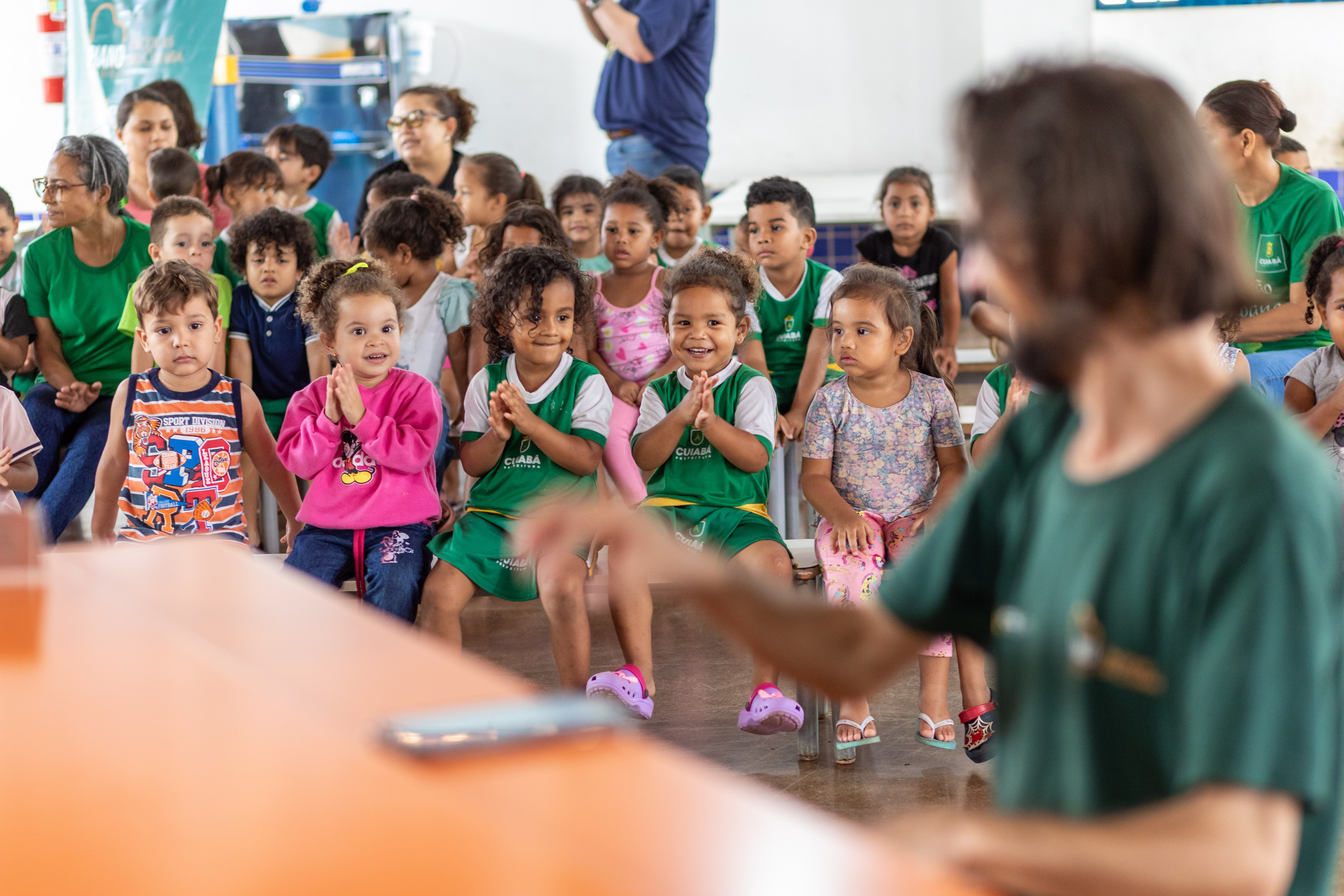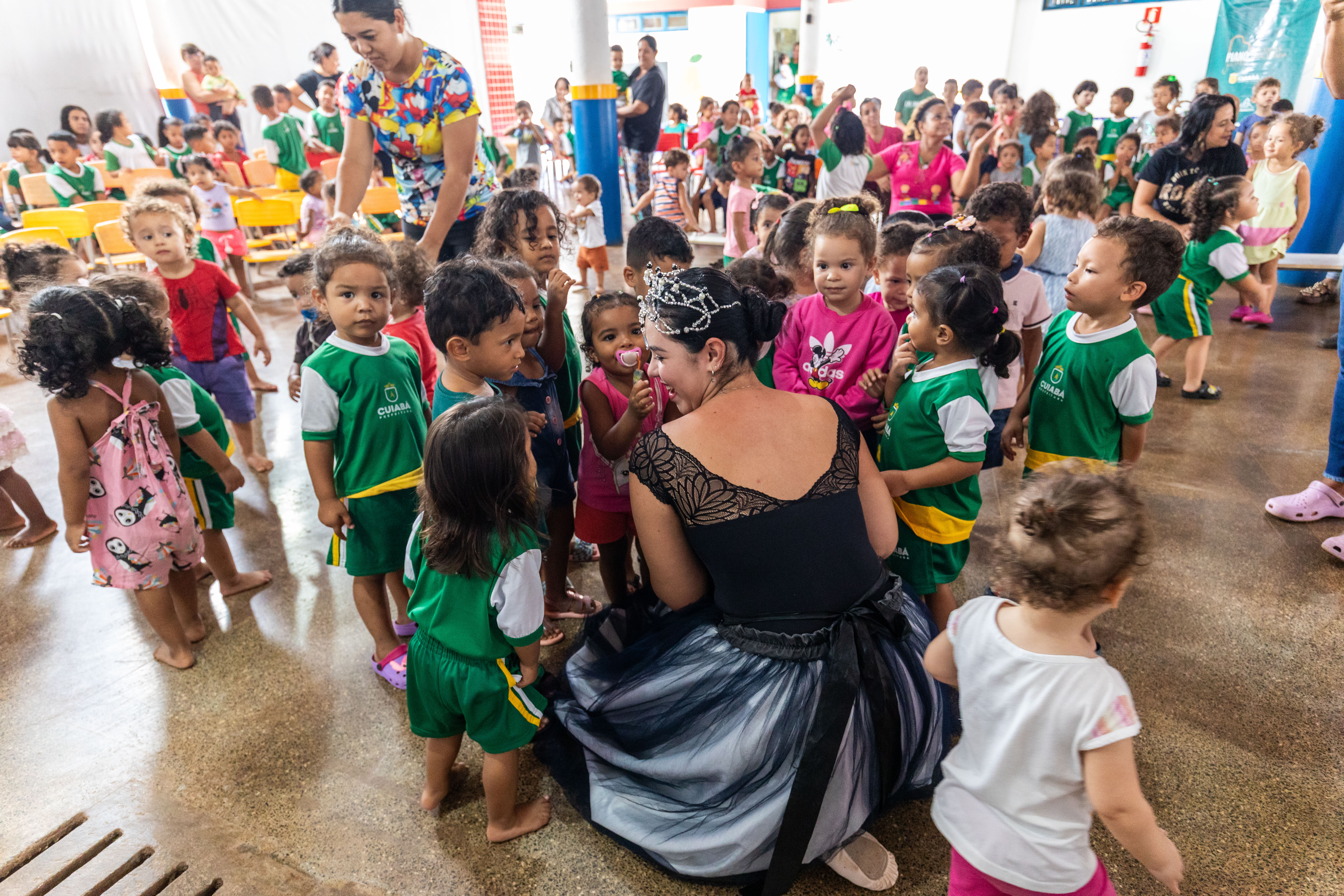 Nesta terça-feira (4), mais de 100 crianças com idades de 0 a 5 anos matriculadas no CMEI (Centro Municipal de Educação Infantil) Paulo Ronan Ferraz, localizada no bairro Ilza Terezinha Piccoli, assistiram ao espetáculo.