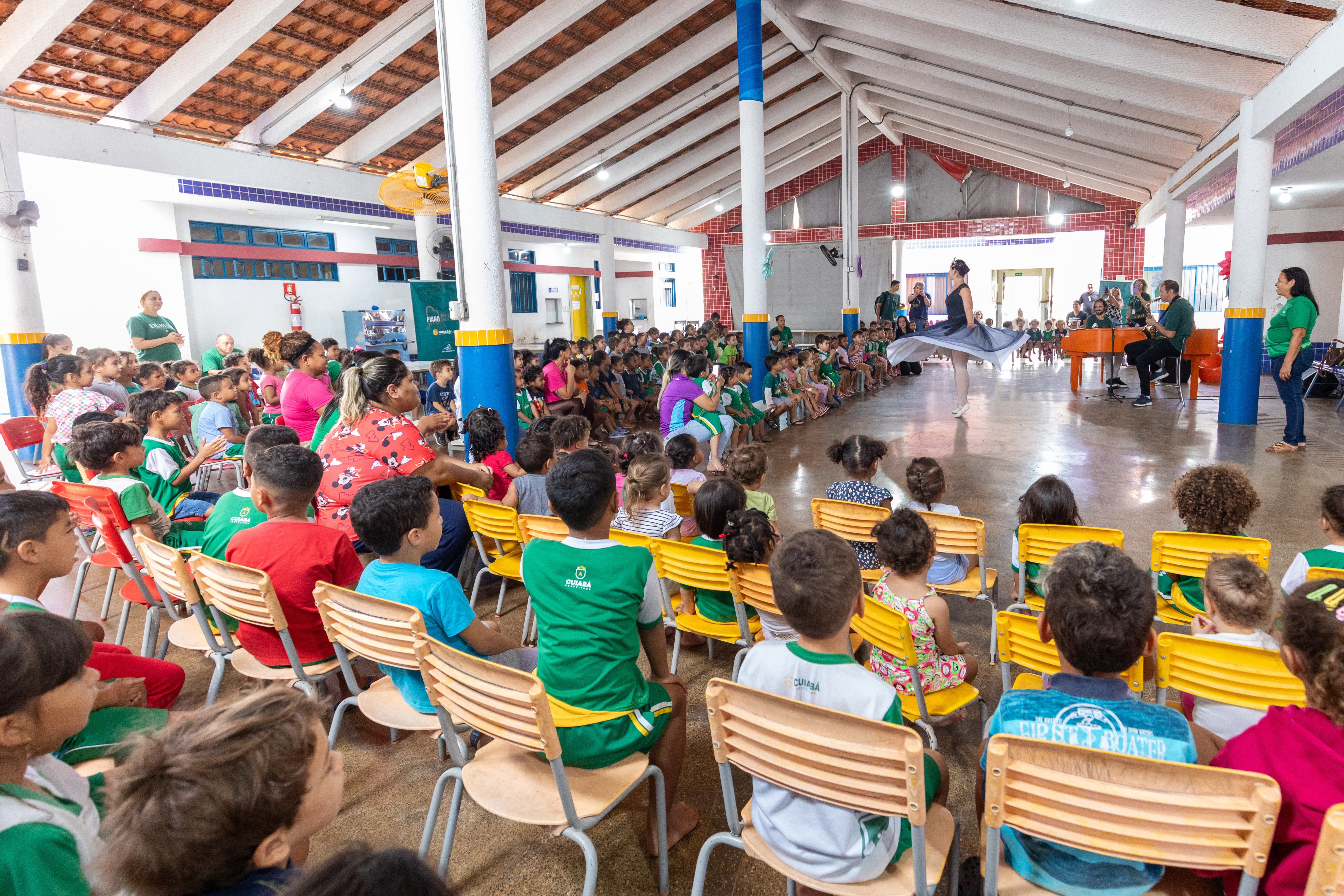 Em determinado momento do espetáculo, os estudantes interagiram com a bailarina, abraçando-a em meio à emoção durante a apresentação. “Fico encantada a cada ida nas escolas. As crianças ficam emocionadas e é um momento muito especial”, comenta a bailarina Julia Fernandes.