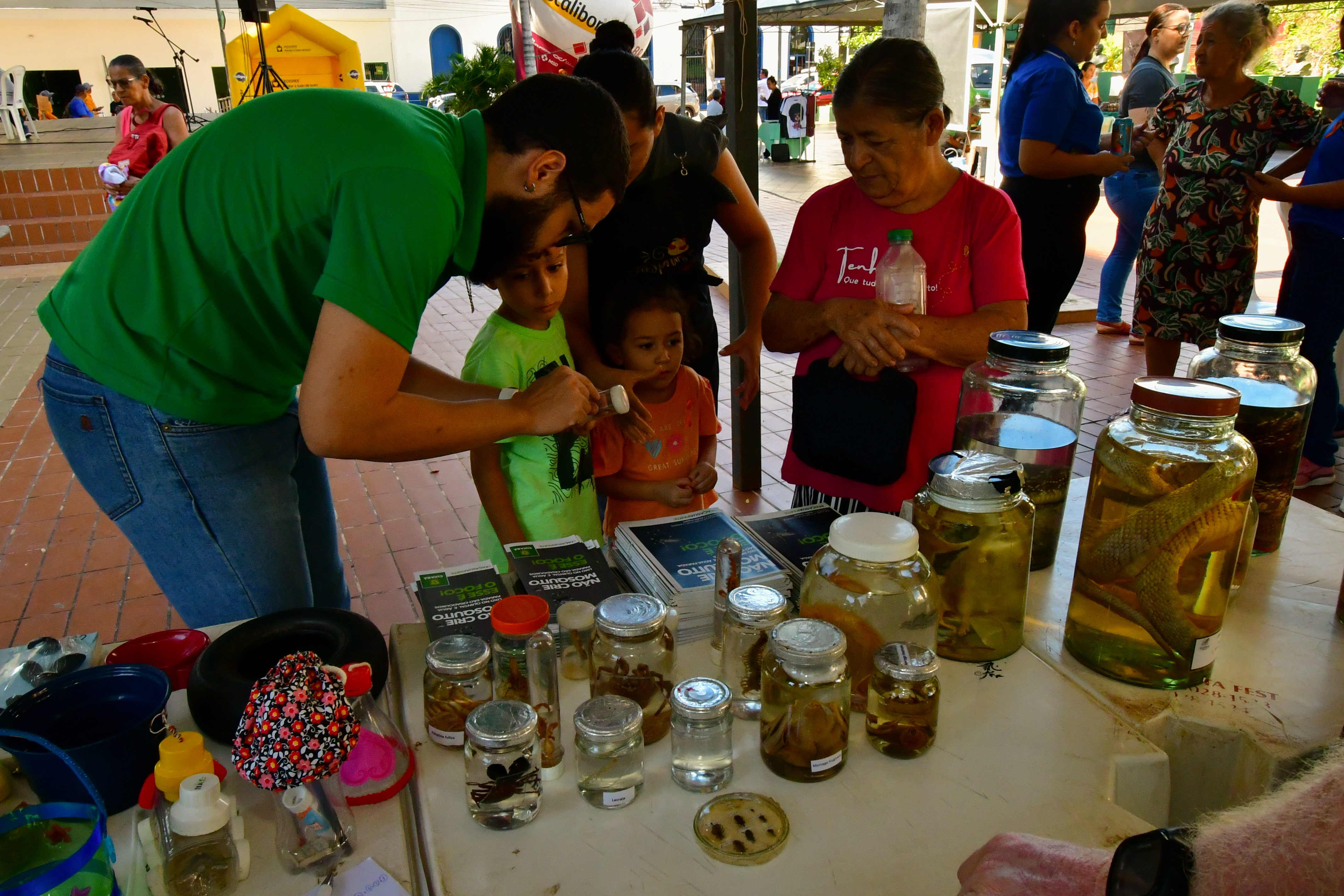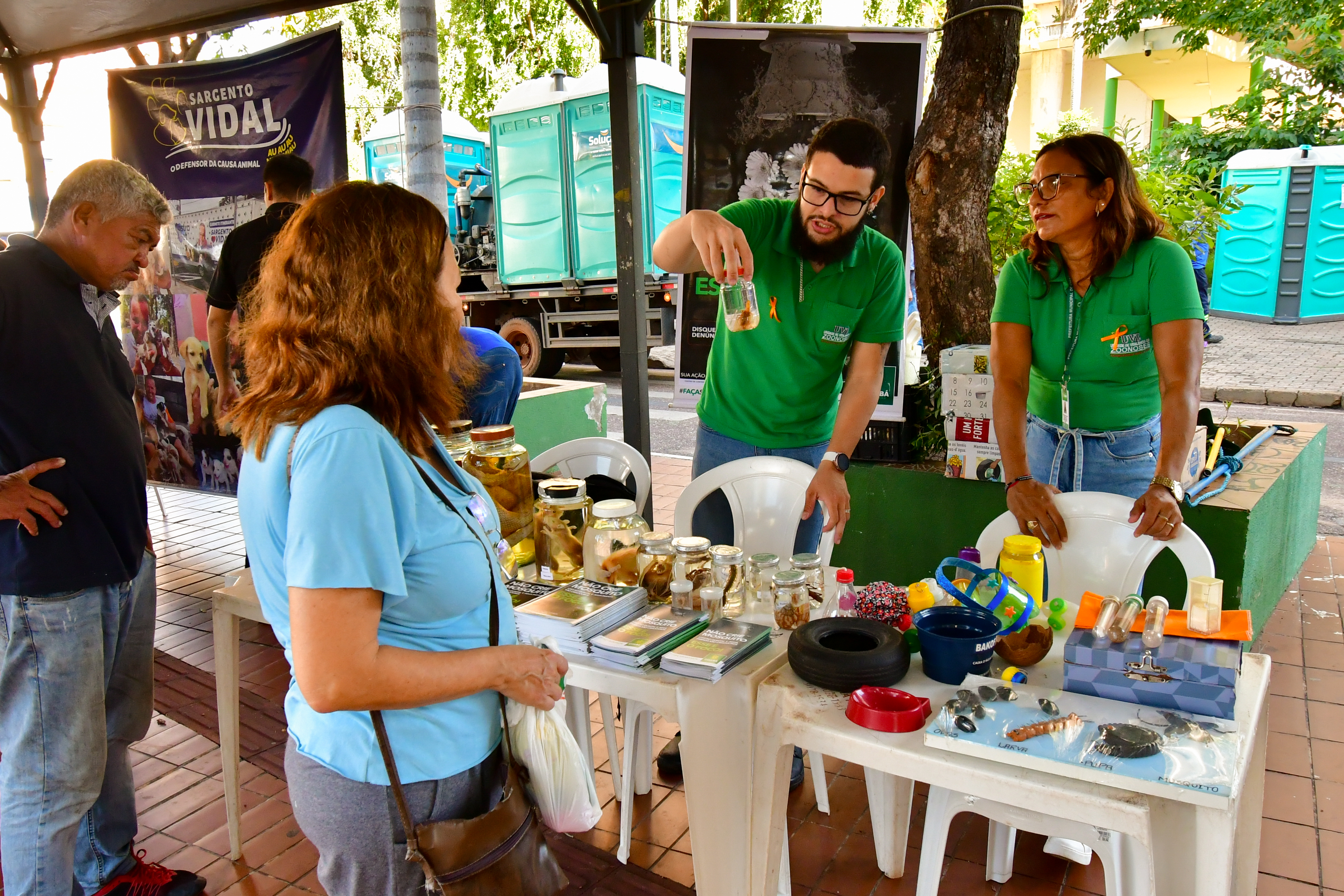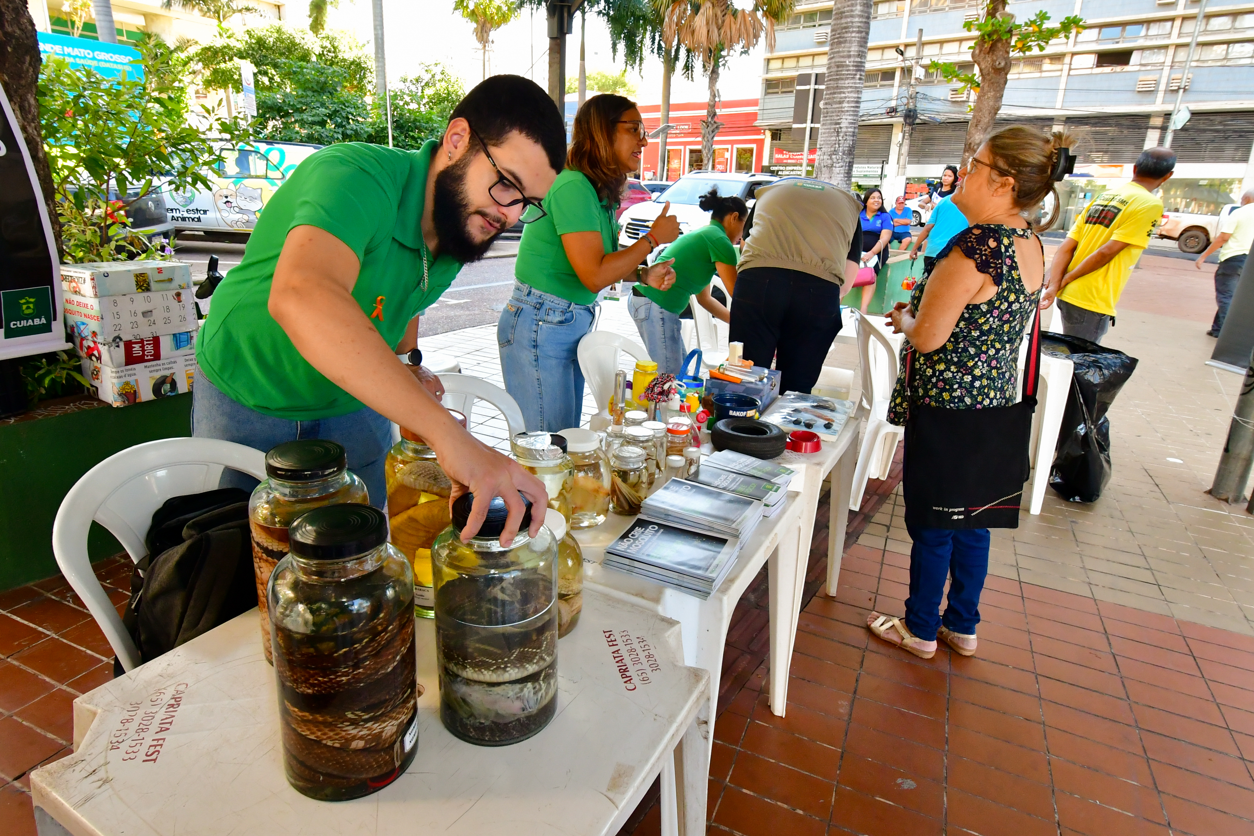 A Zoonoses também compareceu com a equipe de endemias com exposição do ciclo evolutivo do mosquito da Dengue e animais sinantrópicos, que são animais que coabitam com o ser humano como: cobras, escorpiões, caramujo, morcego, aranha e tantos outros. Com amostras de vários deles para contextualizar a informação.