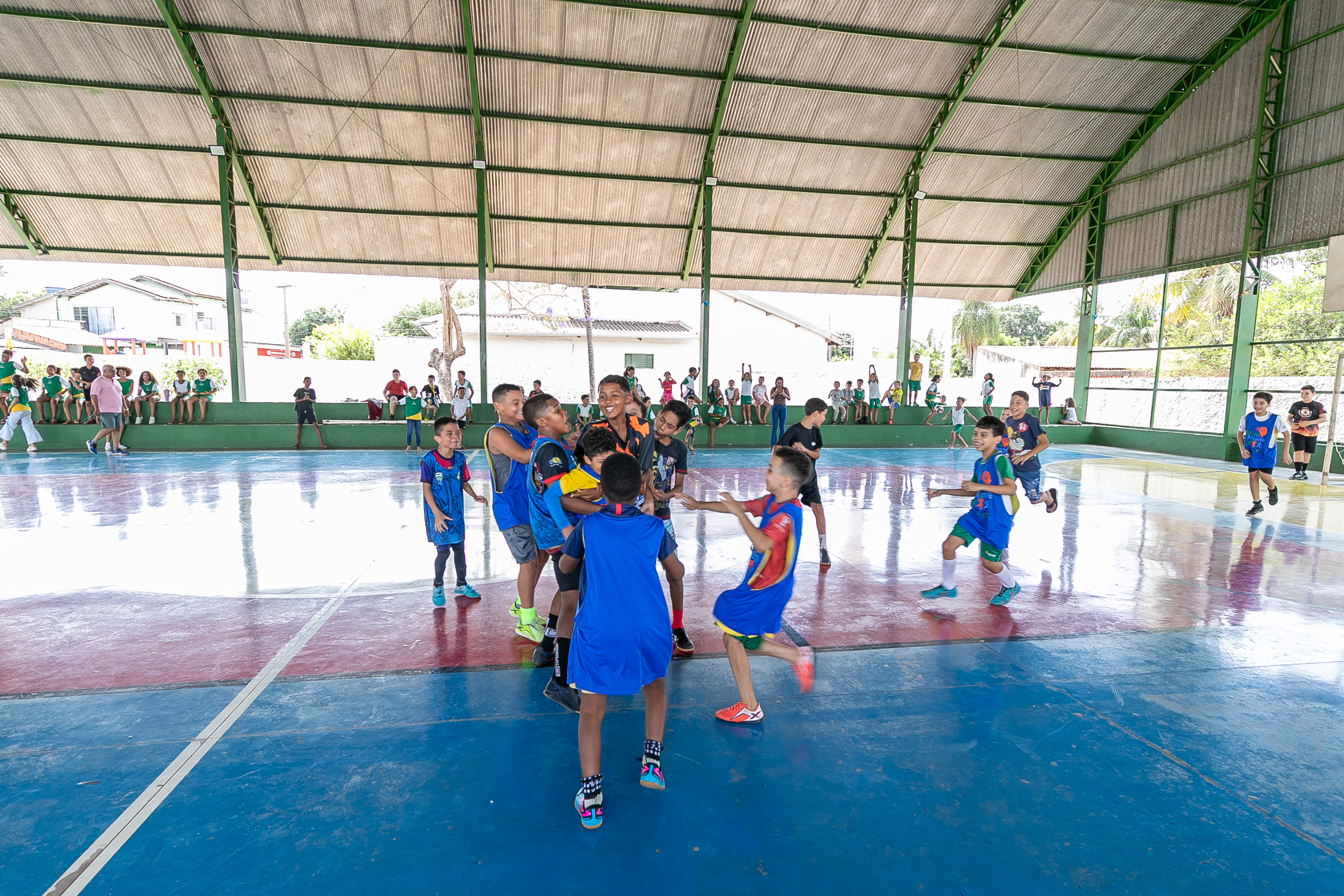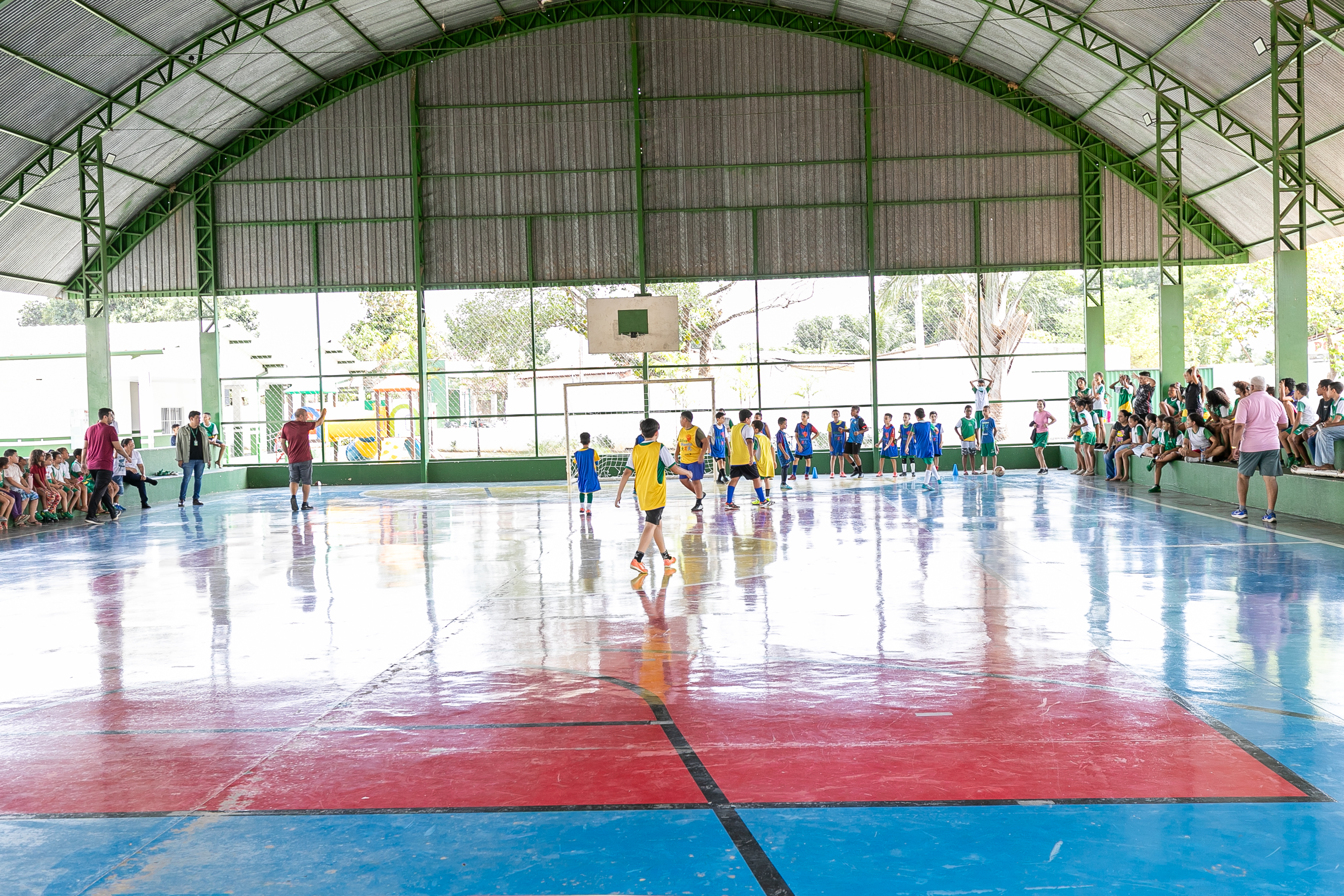 Na manhã de quarta-feira (24), estudantes do 3º ao 5º ano da Escola Nossa Senhora Aparecida, localizada no bairro Novo Colorado, se deslocaram até a sede da Escola São Sebastião para disputar duas partidas de futsal. A primeira ocorreu às 9h e a segunda às 16h, contemplando estudantes dos dois turnos.