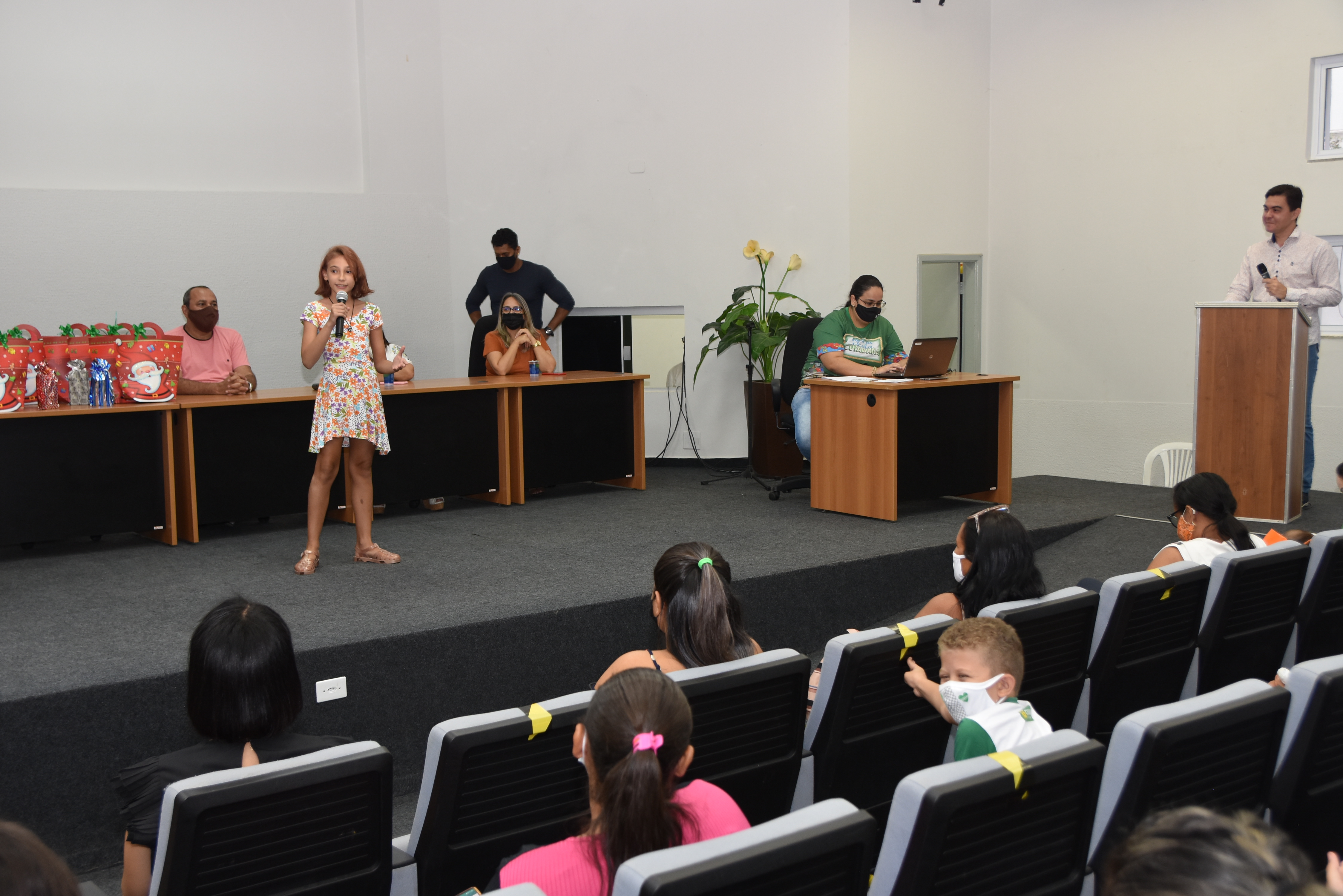 Estudantes da rede pública municipal de Educação receberam nesta terça-feira (16), os prêmios da segunda edição do Projeto ALUN@EMREDE. A cerimônia, presencial, foi realizada no Auditório ‘Maestro China’, da Secretaria Municipal de Educação e reuniu professores, diretores, pais, assessores e coordenadores pedagógicos. Todas as medidas de biossegurança, distanciamento físico e uso de máscaras foram obedecidas.