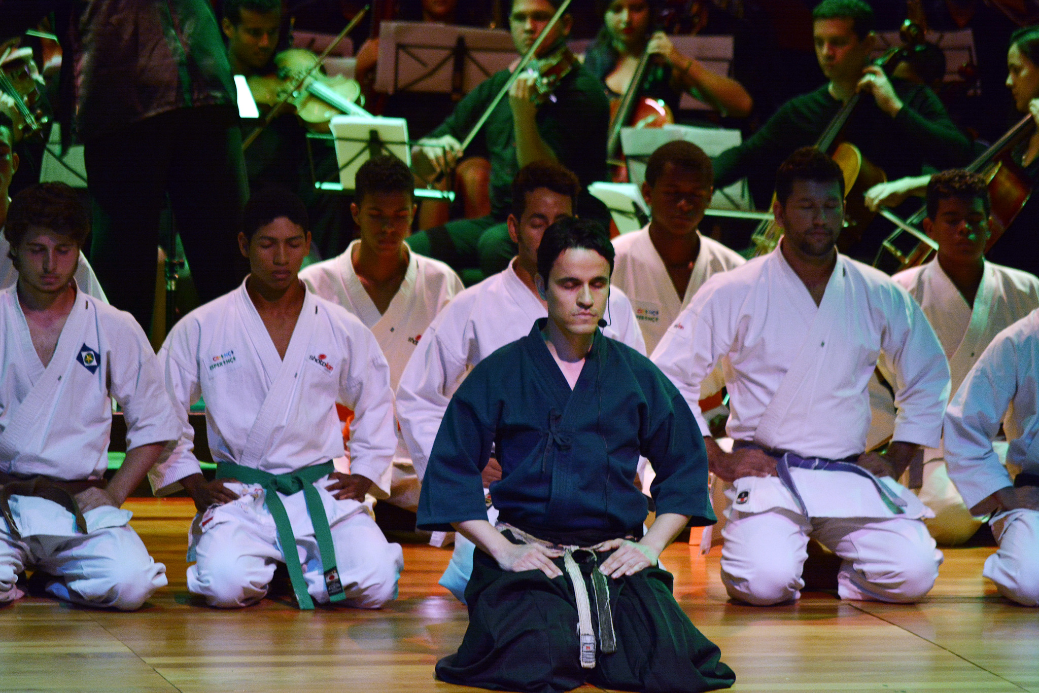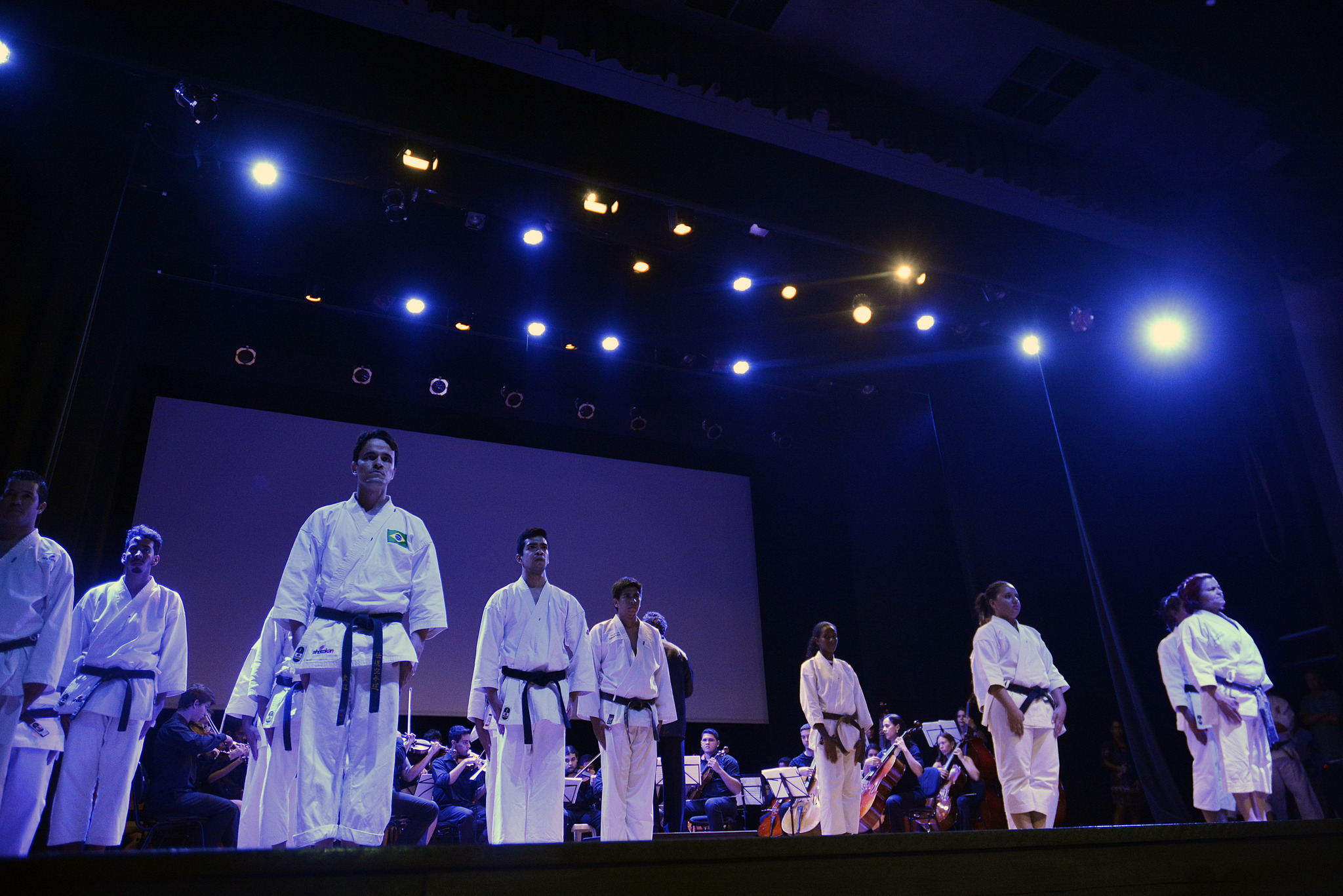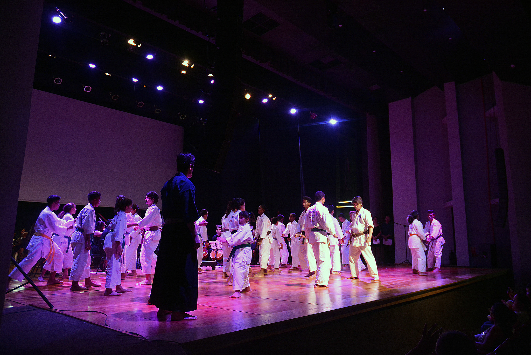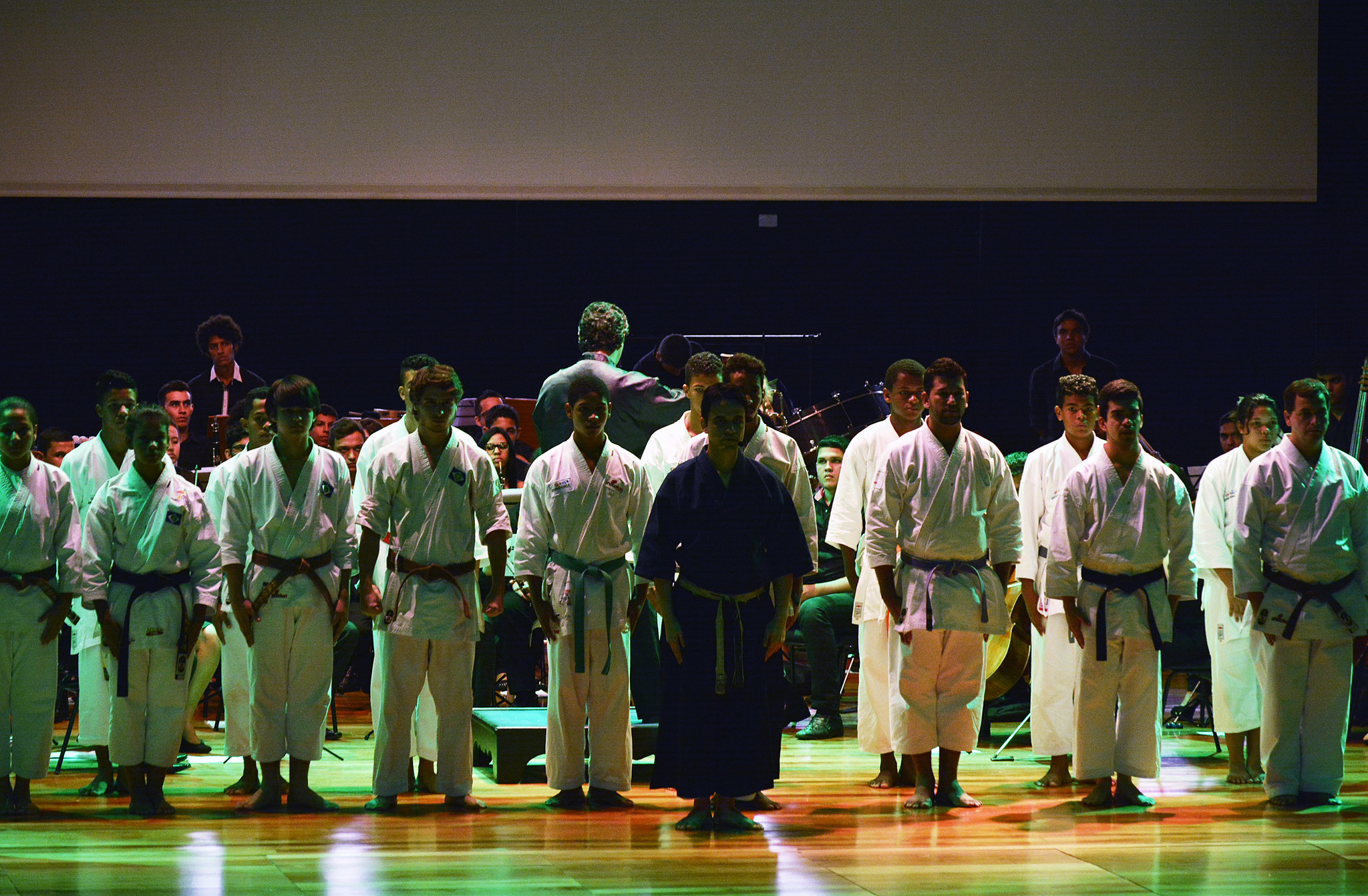 O projeto “Karatê-Dô Tradicional Esporte e Cidadania”, apoiado pela Prefeitura de Cuiabá, fez neste domingo (12), no Teatro da UFMT, a primeira apresentação do espetáculo “Arte, música e caratê”, que uniu a música clássica da Orquestra do Instituto Ciranda com a arte do caratê. A apresentação faz parte das comemorações do Aniversário de Cuiabá.