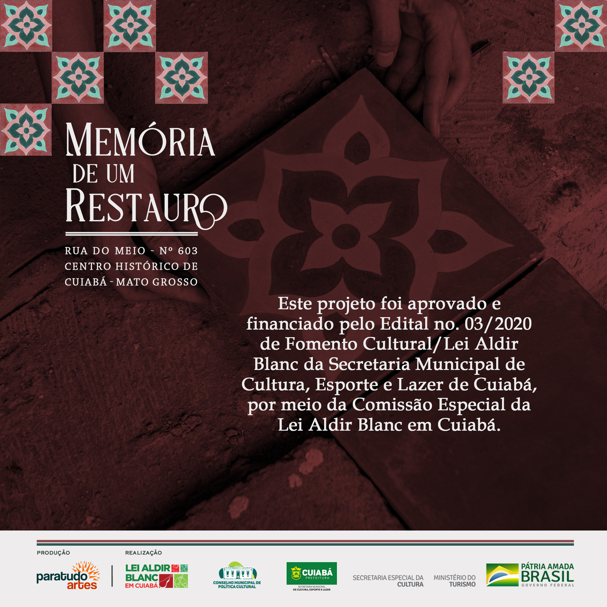 Uma sala, um quarto, uma cozinha, um banheiro e um ateliê. Que histórias esses espaços podem nos contar? Memórias tem endereço: Casa 603, Rua do Meio, Centro Histórico de Cuiabá. Nesta sexta-feira (16), a partir das 16h, será o momento de ouvi-las. O projeto “Memórias de um Restauro” apresenta o processo de recuperação desse espaço que sobreviveu ao tempo, como forma de contribuir para a educação patrimonial e preservação do patrimônio histórico cultural na capital de Mato Grosso. Em razão do cumprimento das medidas sanitárias durante a pandemia da COVID-19, o encontro será virtual, por meio do perfil do projeto no youtube e facebook. A ação foi aprovada em edital da Lei Federal Aldir Blanc em Cuiabá, executada pela Secretaria de Cultura, Esporte e Lazer, com apoio do Conselho Municipal de Política Cultural.