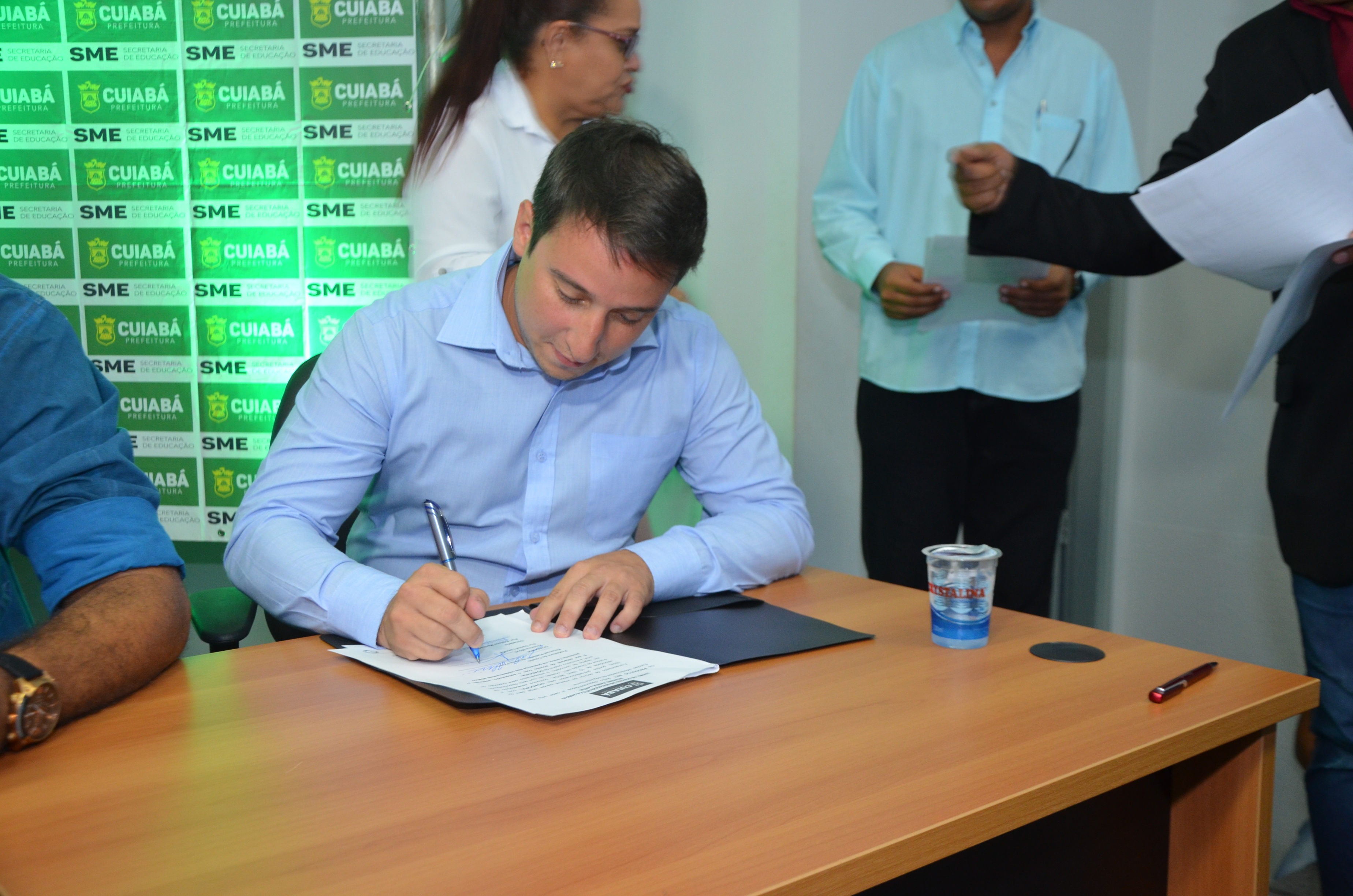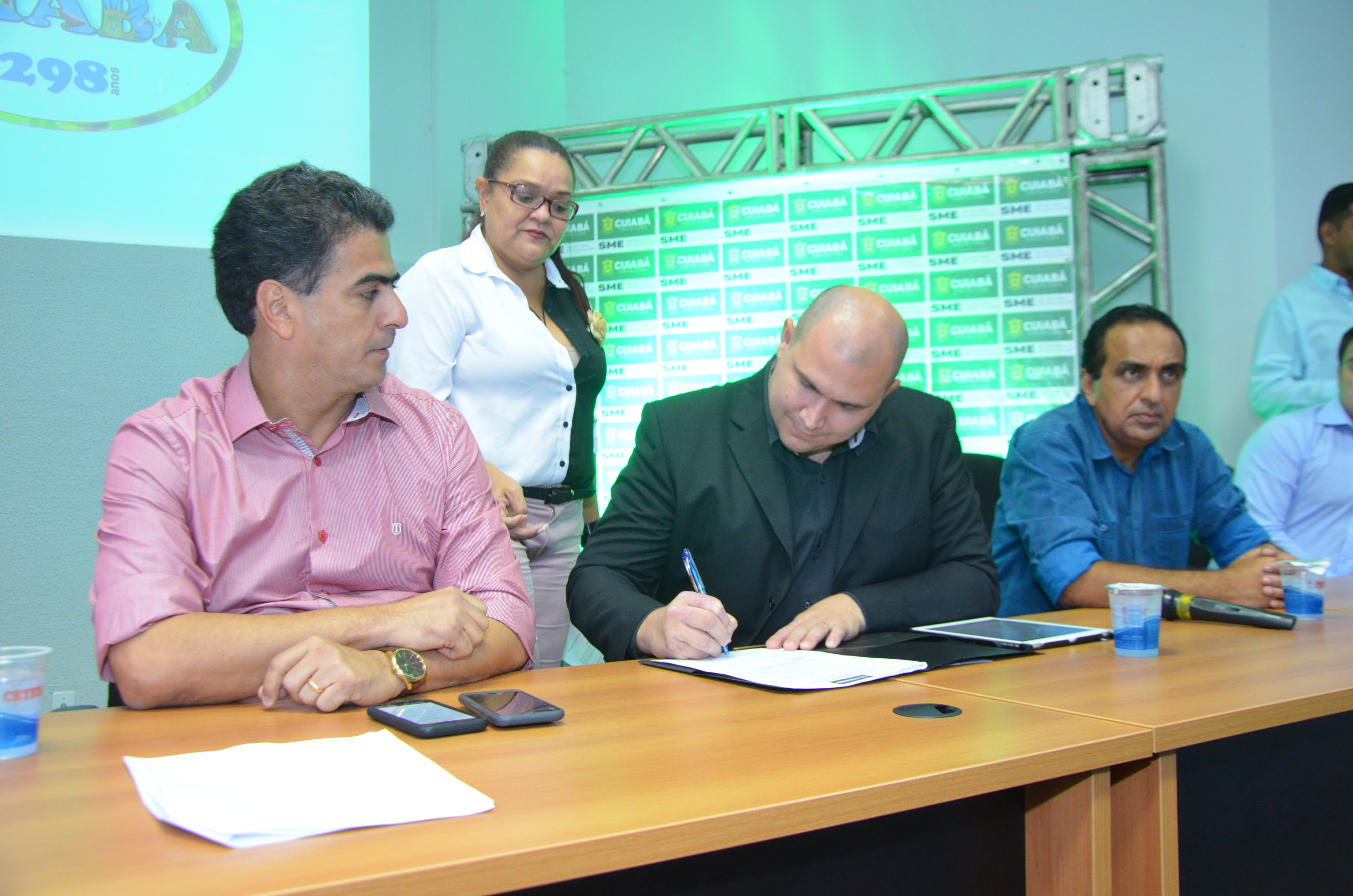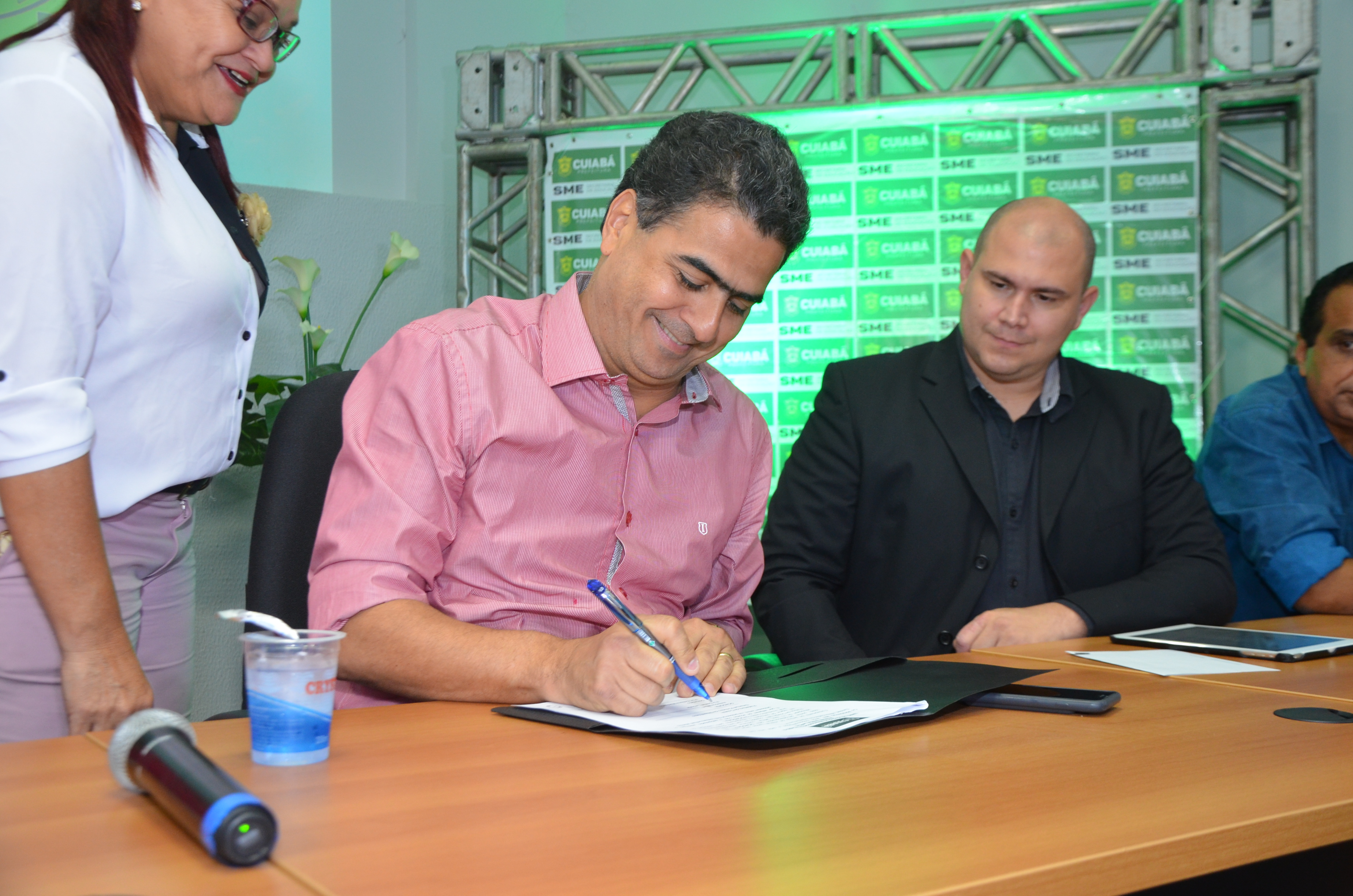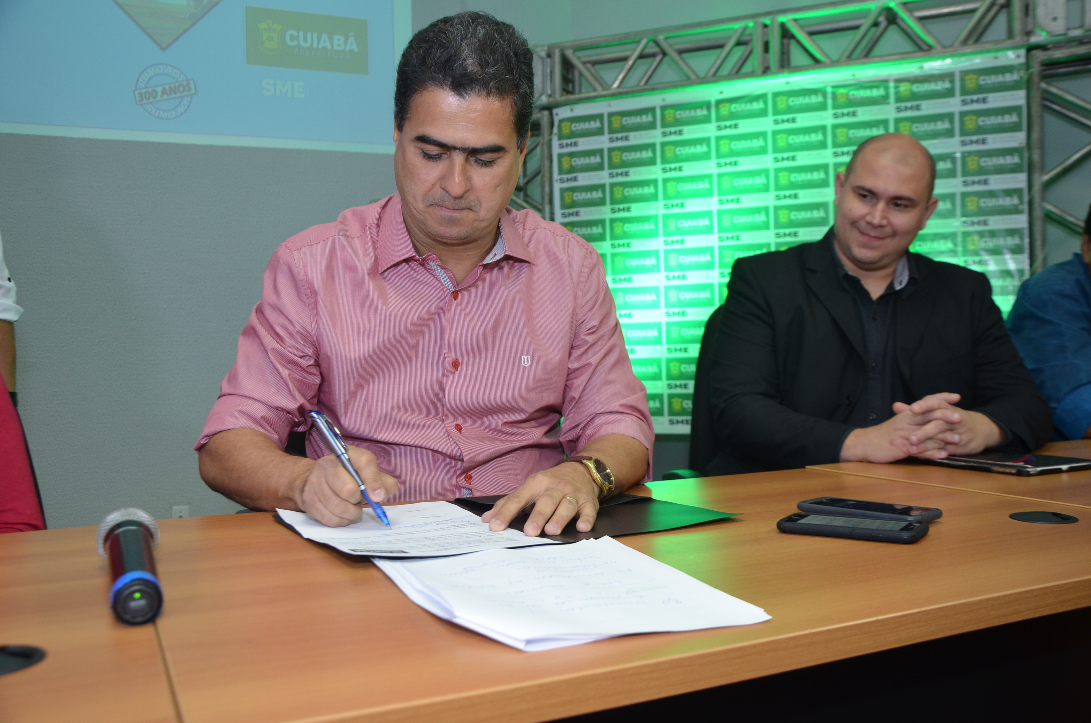 O projeto foi lançado, nesta terça-feira (11), no auditório da Secretaria Municipal de Educação (SME), pelo prefeito de Cuiabá Emanuel Pinheiro ao assinar o Termo de Cooperação com o grupo América Móvil, composto pelas empresas NET, Claro e Embratel.