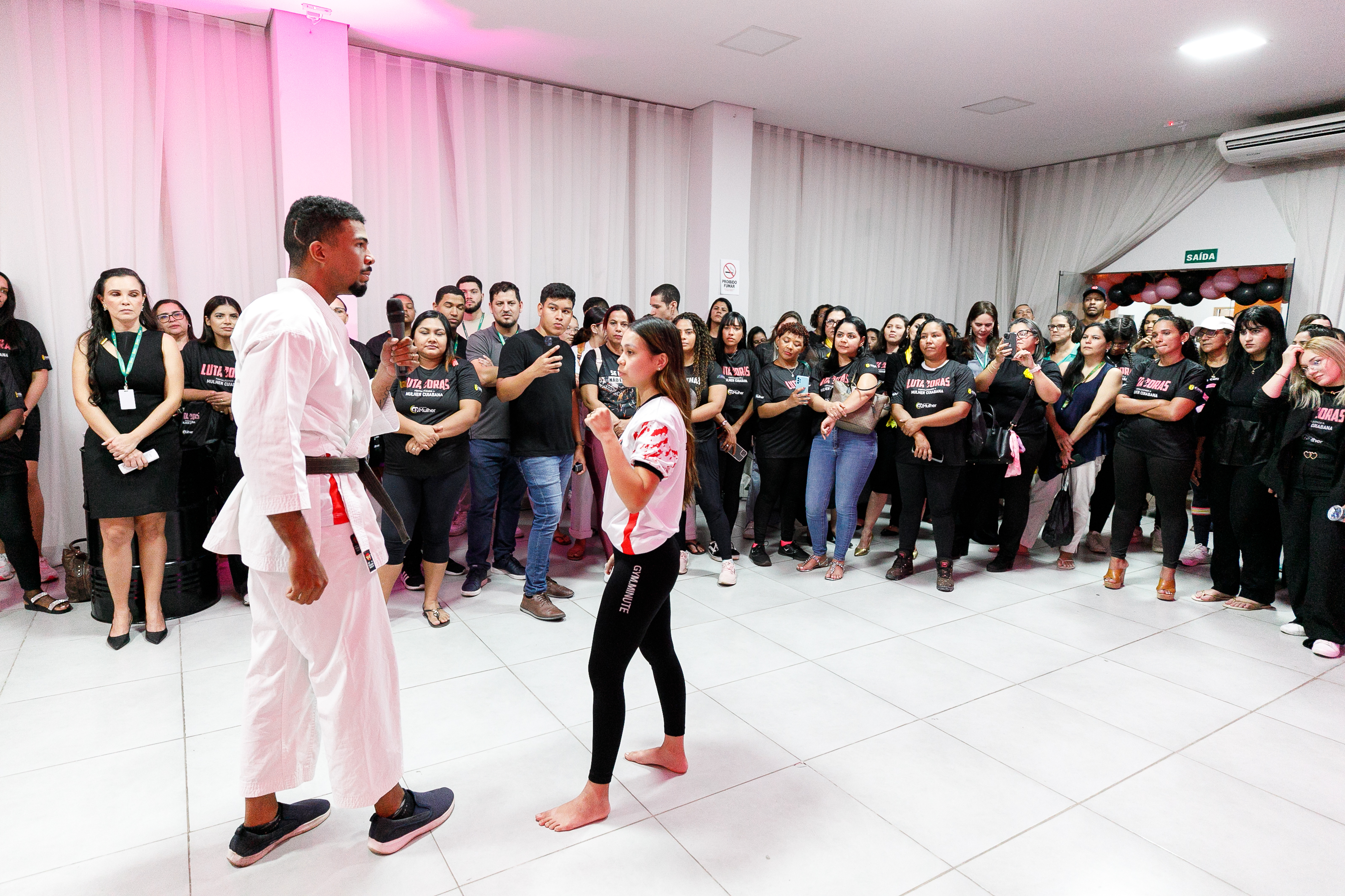 Hadassah também agradeceu às mulheres inscritas no curso e aos participantes do evento, entre eles representantes da Patrulha Maria da Penha, do Espaço Caliandra do Ministério Público Estadual, a campeã mundial de Muay Thai, Inaleia Ferreira, integrantes da Polícia Militar, além da Câmara Municipal, também representada pelo vereador Demilson Nogueira e pela vereadora Michelly Alencar.