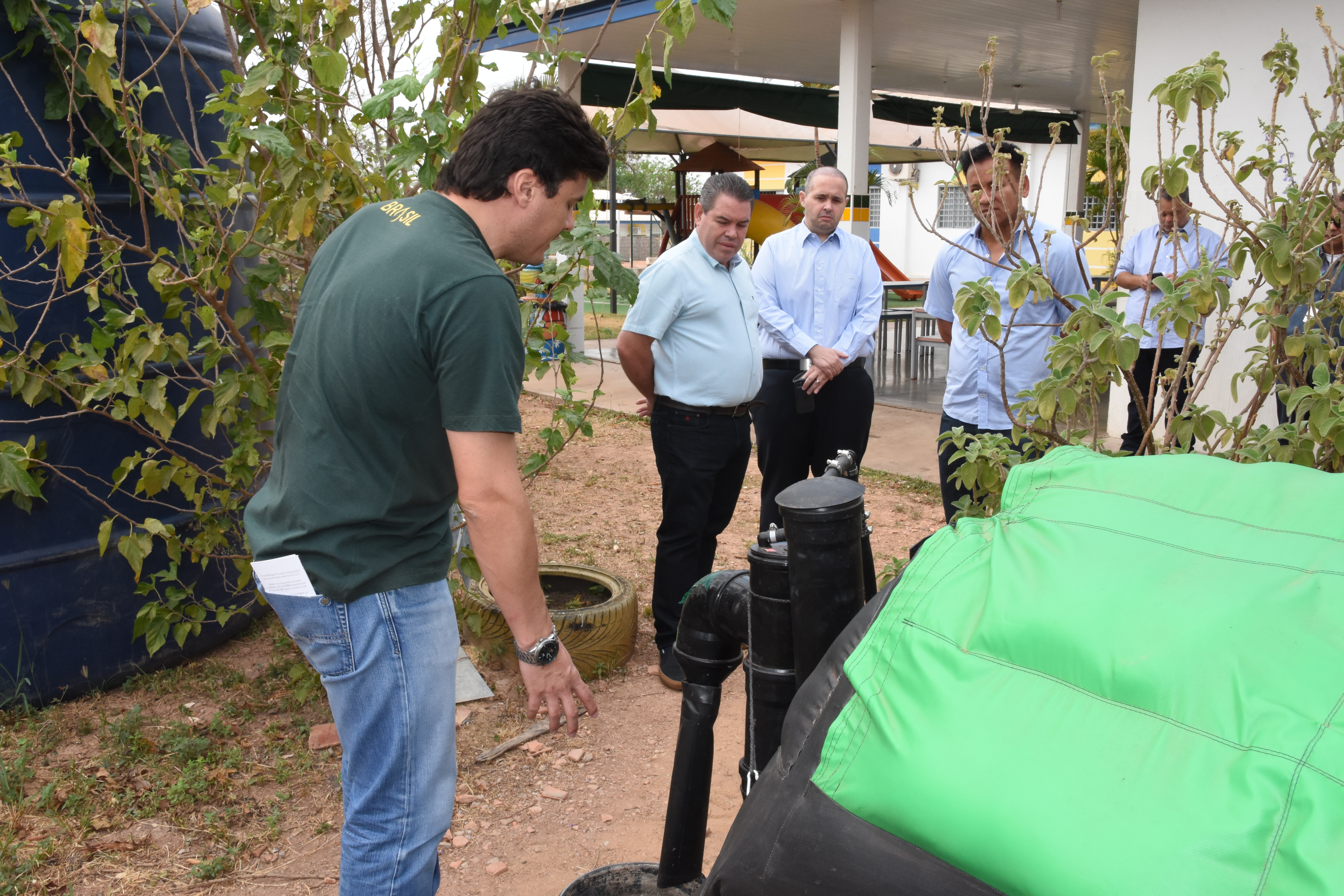 O secretário Municipal de Educação de Cuiabá, Alex Vieira Passos, acompanhou o vice-prefeito de Várzea Grande, José Aderson Hazama e o secretário de Educação, Silvio Fidelis, na visita a Escola Municipal de Educação Básica (EMEB) Madre Marta Cerutti, no bairro Bela Vista, onde um biodigestor está instalado há três meses. A unidade foi a primeira das cinco, a receber a tecnologia israelense.