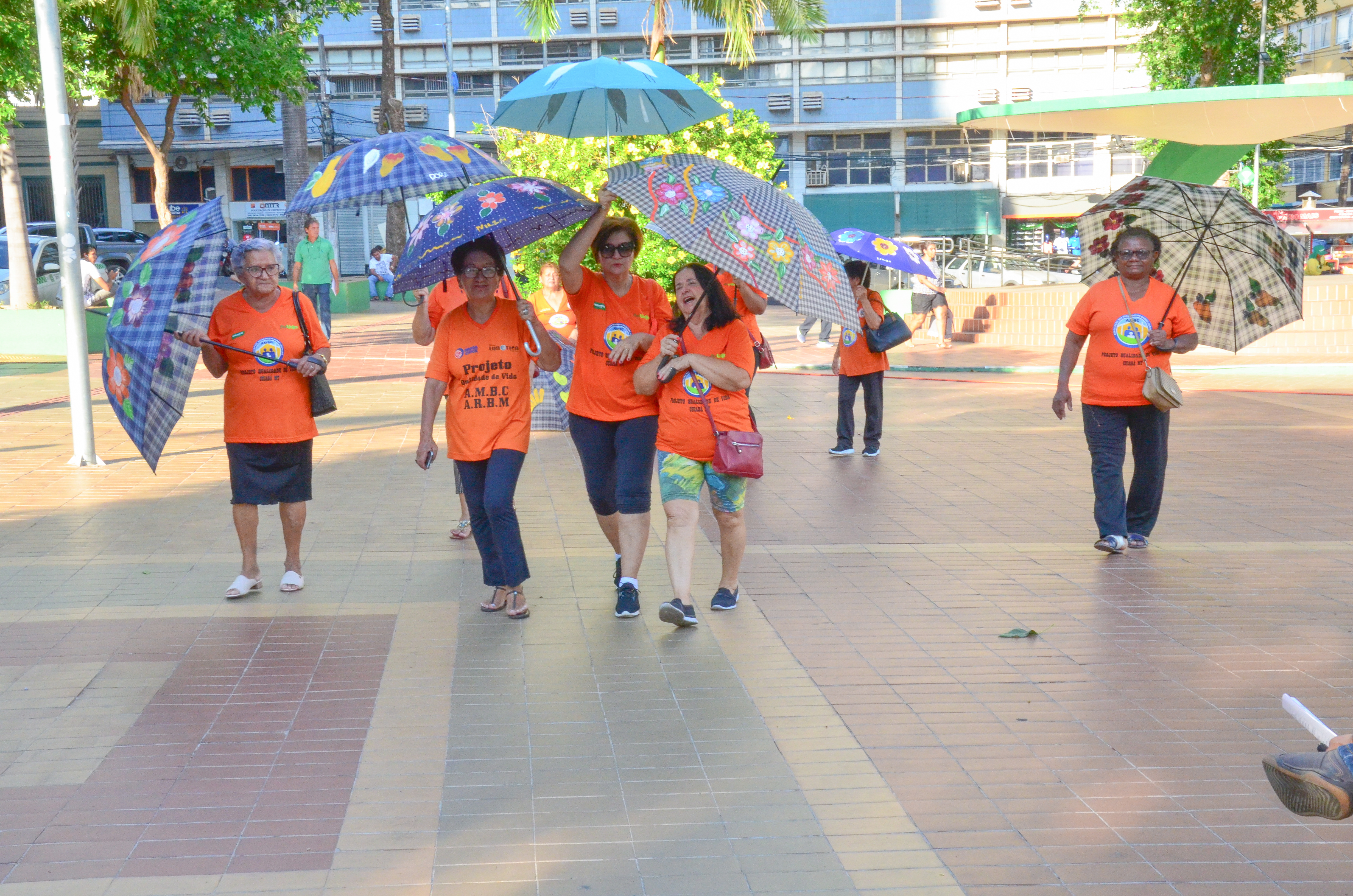 Como o próprio nome retrata, a tarde era de sol e céu azul quando o grupo de 16 jovens da terceira idade desfilaram sorrisos na Praça Alencastro. Amparadas por sombrinhas coloridas, elas exibiam com felicidade o resultado do trabalho artesanal.