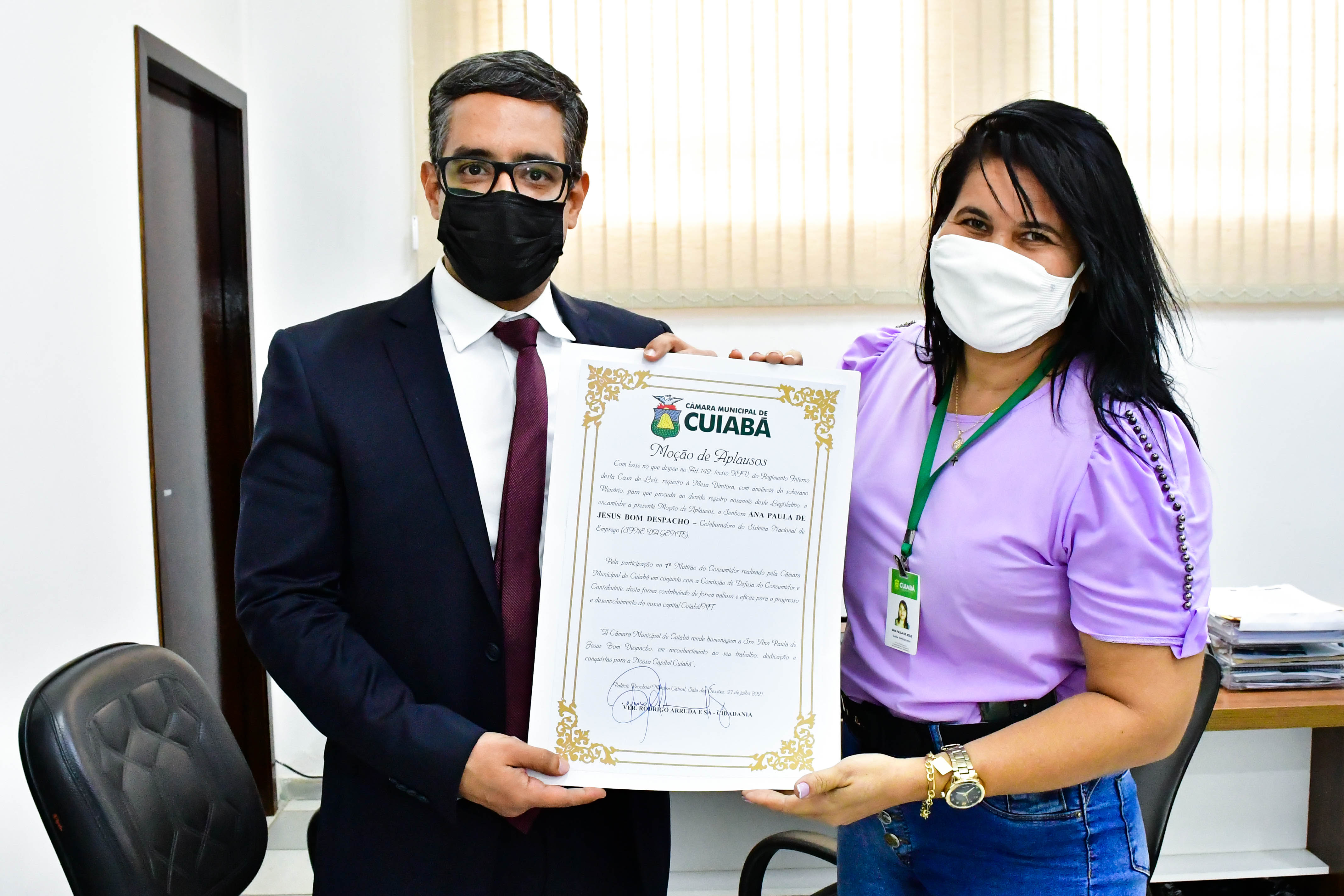 Autor da honraria, o vereador Rodrigo Sá disse que a homenagem representa a admiração do legislativo pelo trabalho desenvolvido pela Secretaria. “O projeto Sine da Gente é parceiro da Câmara Municipal de Cuiabá que está sempre à disposição para participar dos mutirões de atendimento nos bairros da capital. Nada seria possível sem os esforços dessa equipe em oportunizar novas vagas no mercado de trabalho, principalmente, para àqueles que mais precisam do apoio do Poder Público. O nosso muito obrigado”, declarou o vereador.
