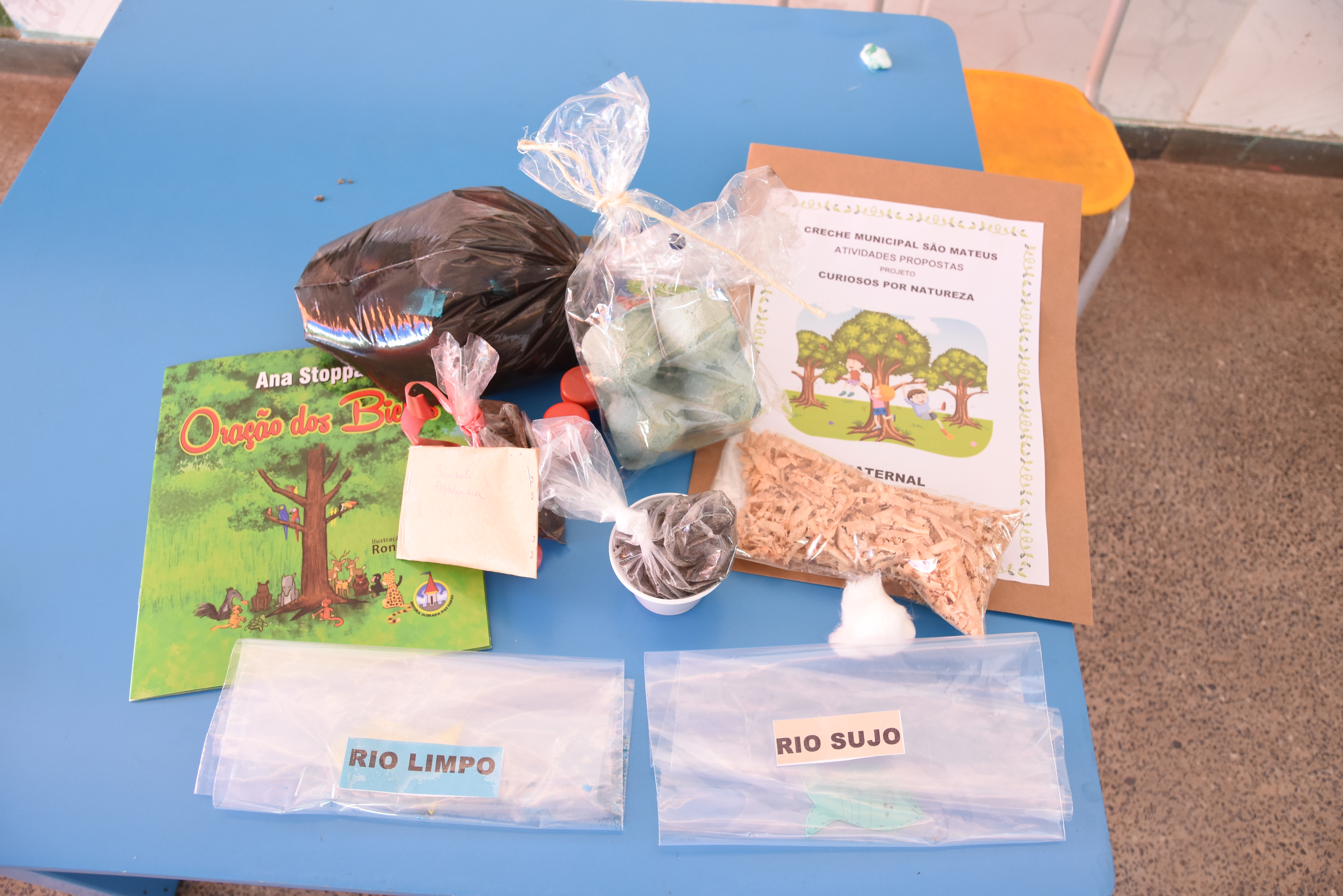 Nos kits montados pelas educadoras as crianças encontram diferentes materiais como folhas, terra, caixas de ovos, rolinho de papel higiênico, barbante, terra preta, semente de plantas, tintas, tampinhas, algodão, giz de cera, pó de serra, isso porque em algumas casas os quintais são cimentados. “As crianças precisam sentir, tocar, experimentar e vivenciar. Então veio a ideia dos kits para quem não tem esses recursos. A ideia é de que as crianças desenvolvam sua autonomia, aprendam a importância da preservação do meio ambiente, e também adquiram um censo critico”, explicou Andrea.